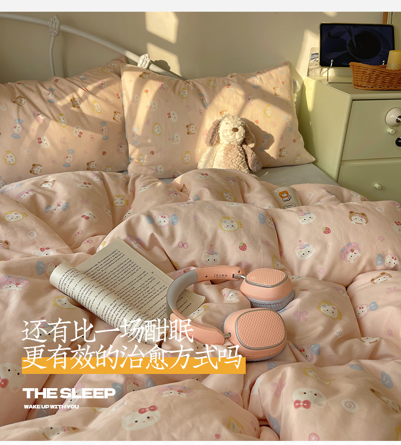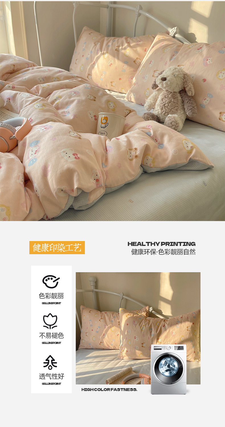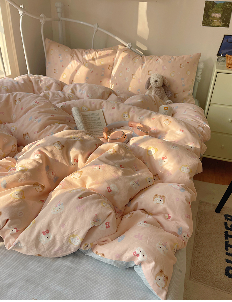 商品名称:桃子家居 2026新款纯棉13070小清新卡通少女可爱全棉系列四件套 棉-可爱糖果猫