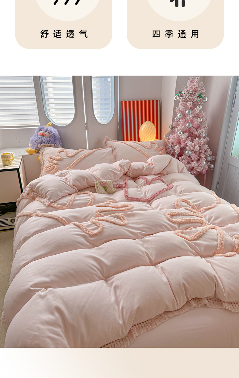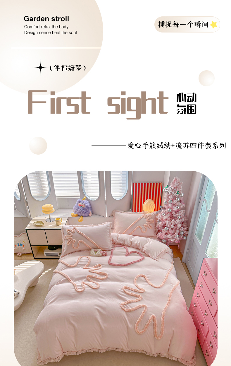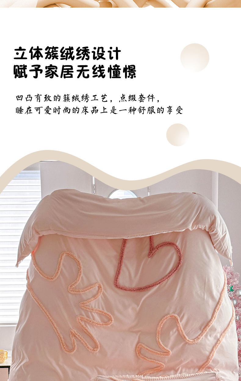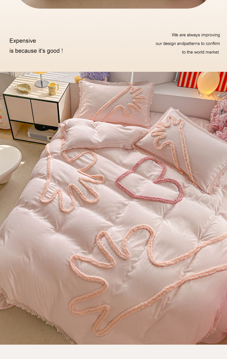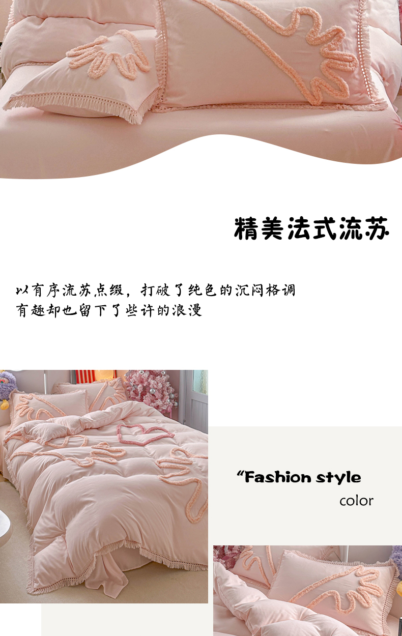 当前位置: 91家纺网 > 商品网购 > 床品套件 > 四件套 > 其它四件套 > 缘生活 2026新款立体簇绒绣流苏四件套 大爱爱心手-粉色