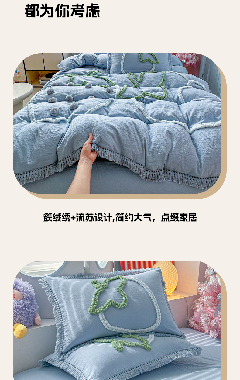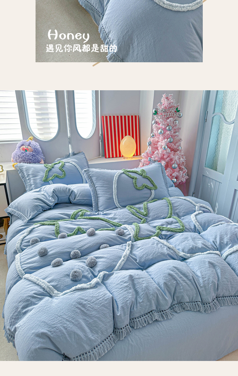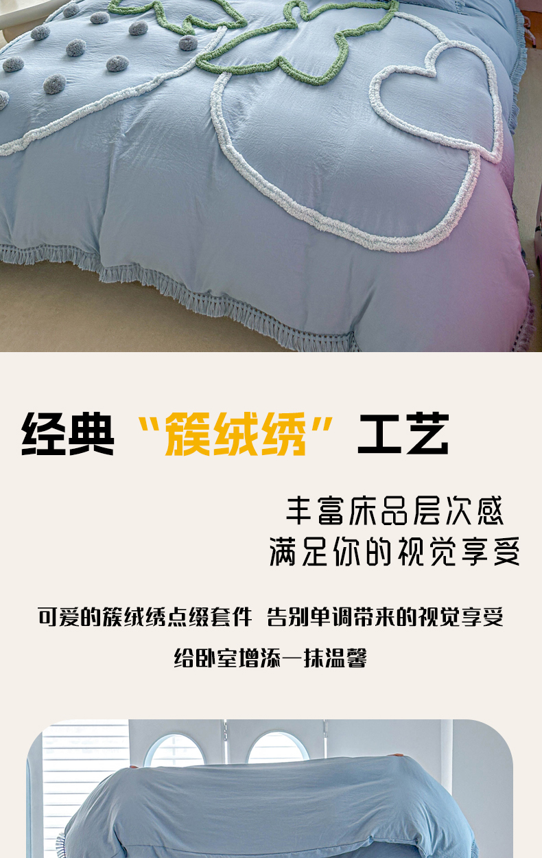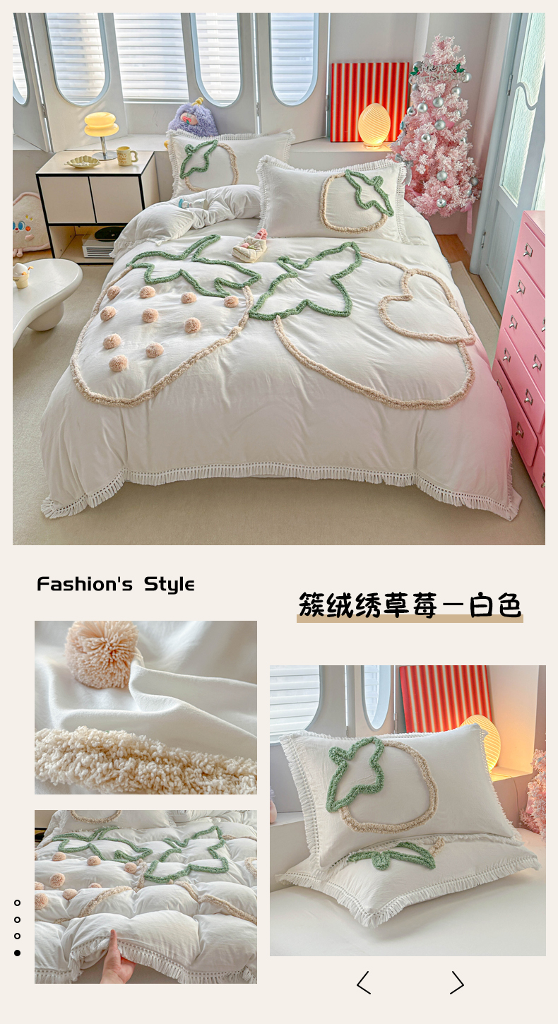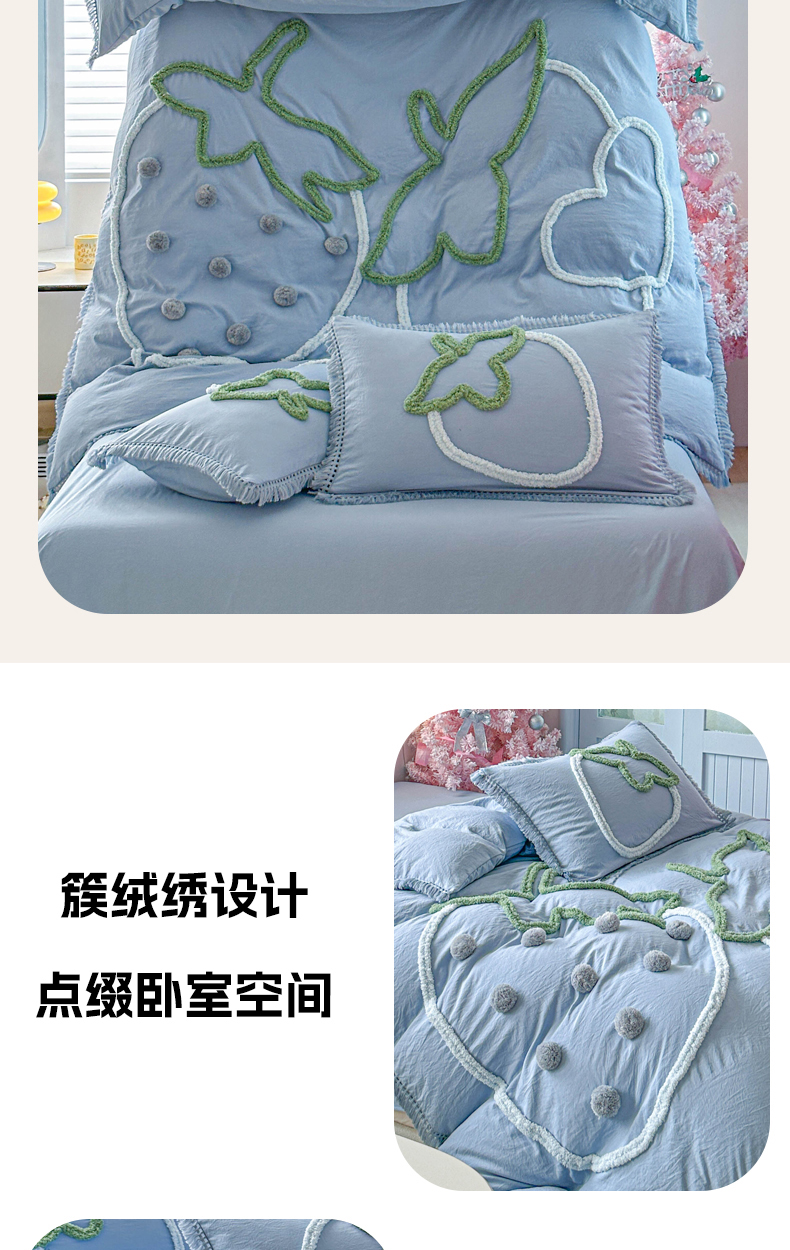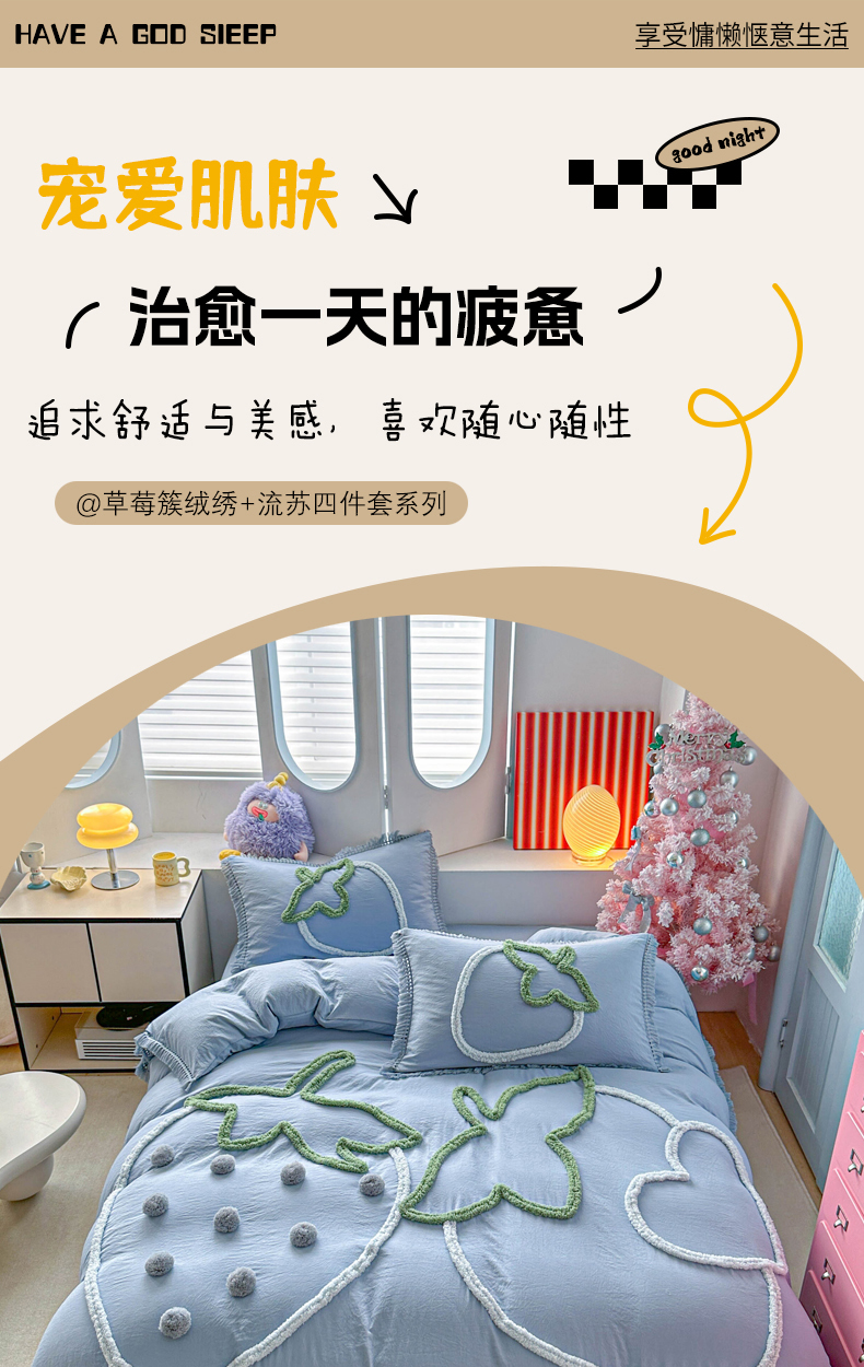 当前位置: 91家纺网 > 商品网购 > 床品套件 > 四件套 > 其它四件套 > 缘生活 2026新款立体簇绒绣流苏四件套 大爱草莓-浅蓝