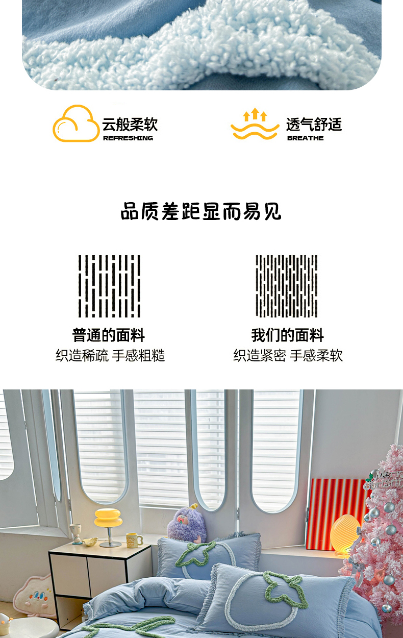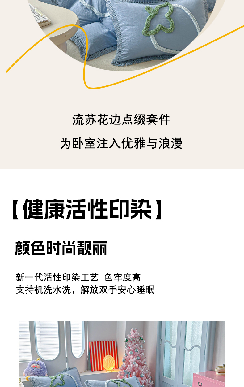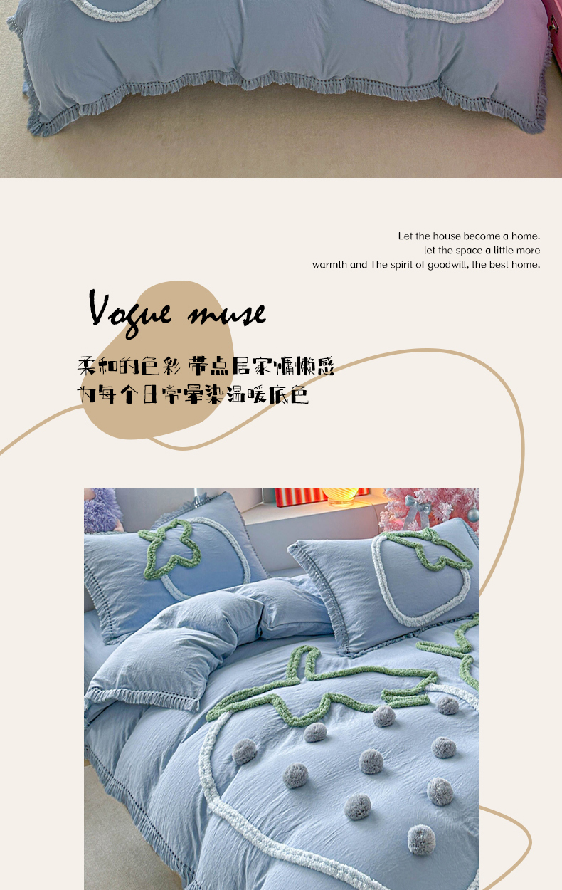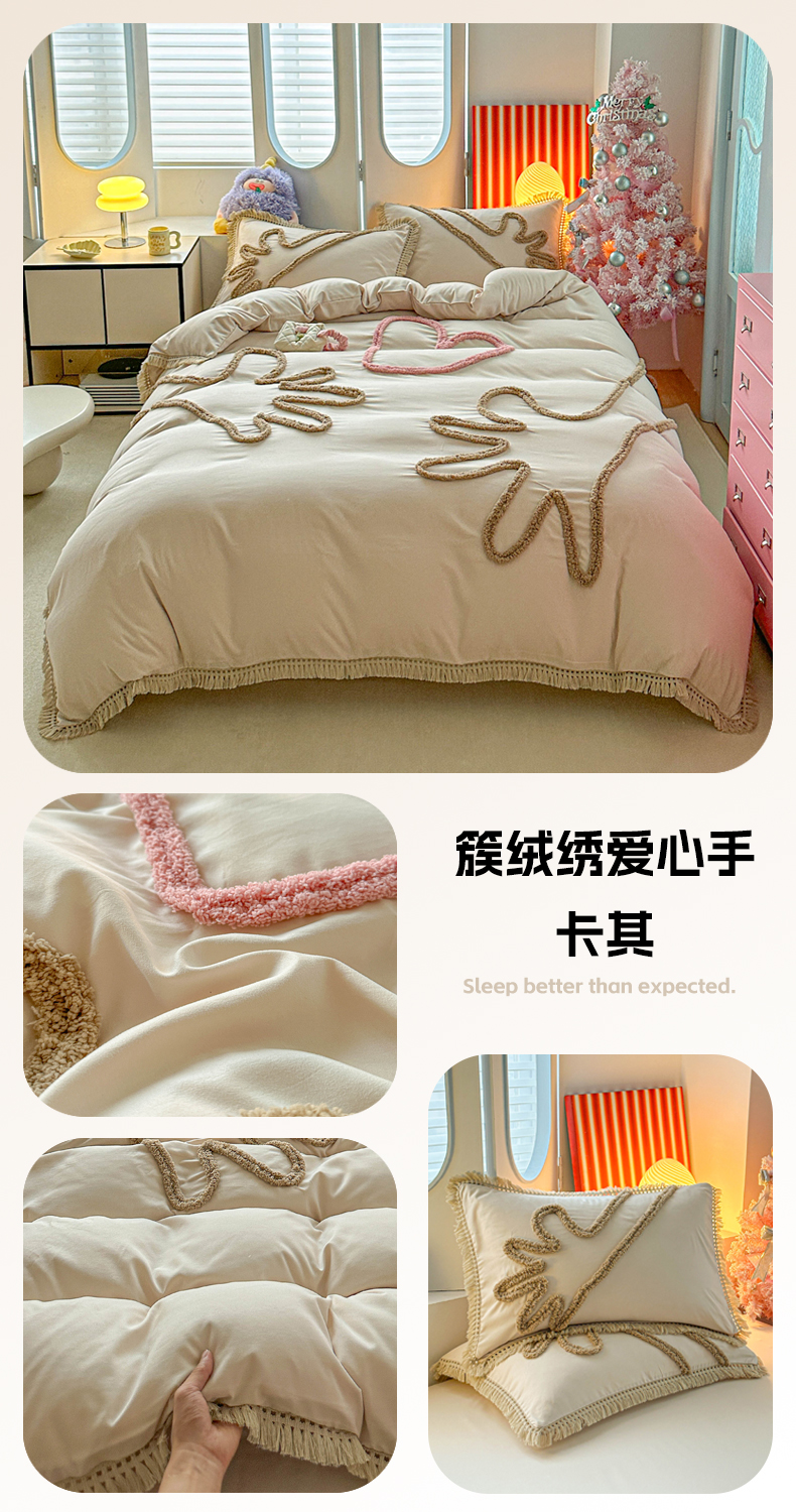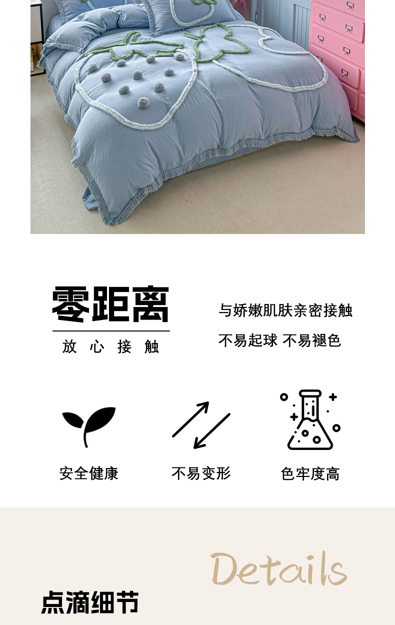 当前位置: 91家纺网 > 商品网购 > 床品套件 > 四件套 > 其它四件套 > 缘生活 2026新款立体簇绒绣流苏四件套 大爱草莓-浅蓝