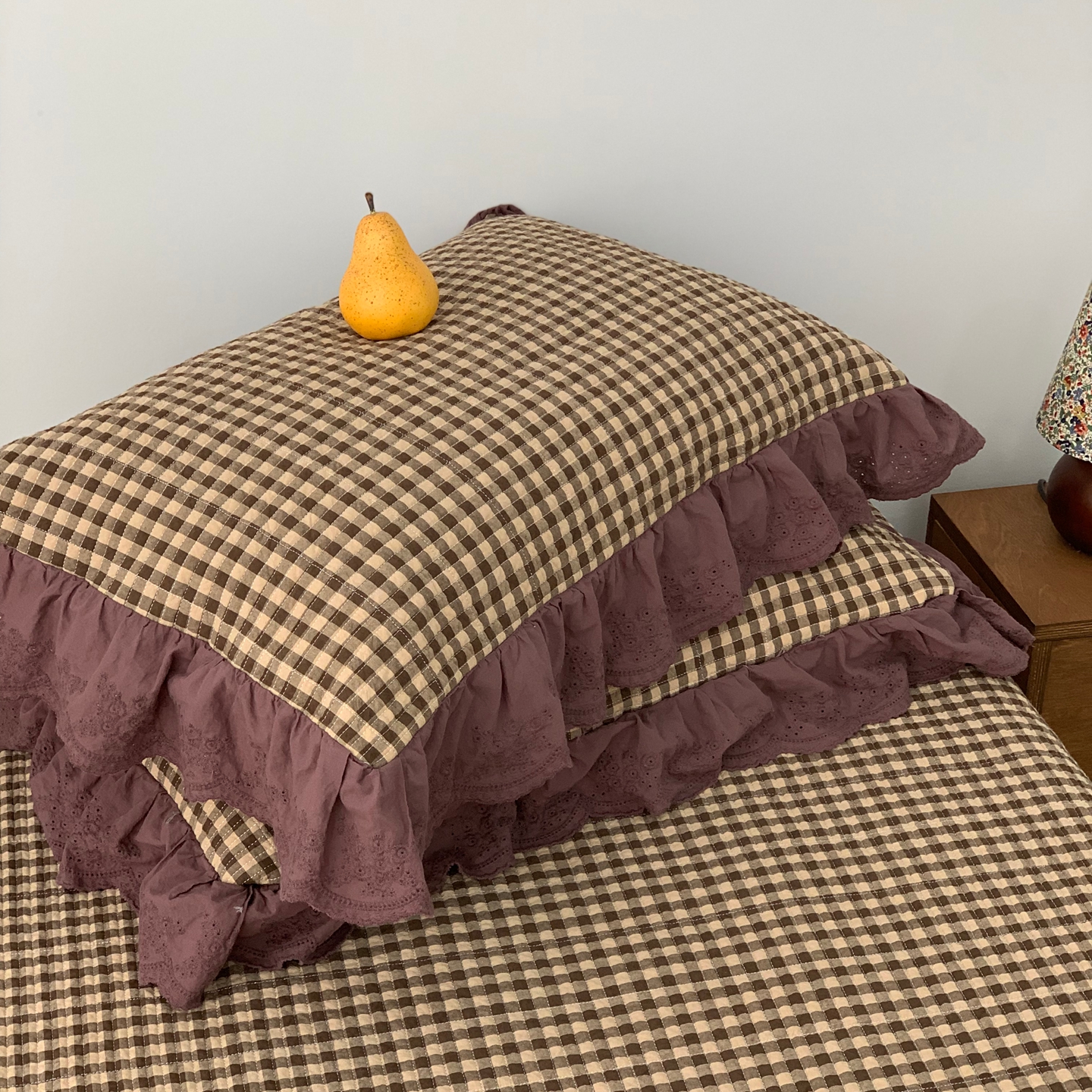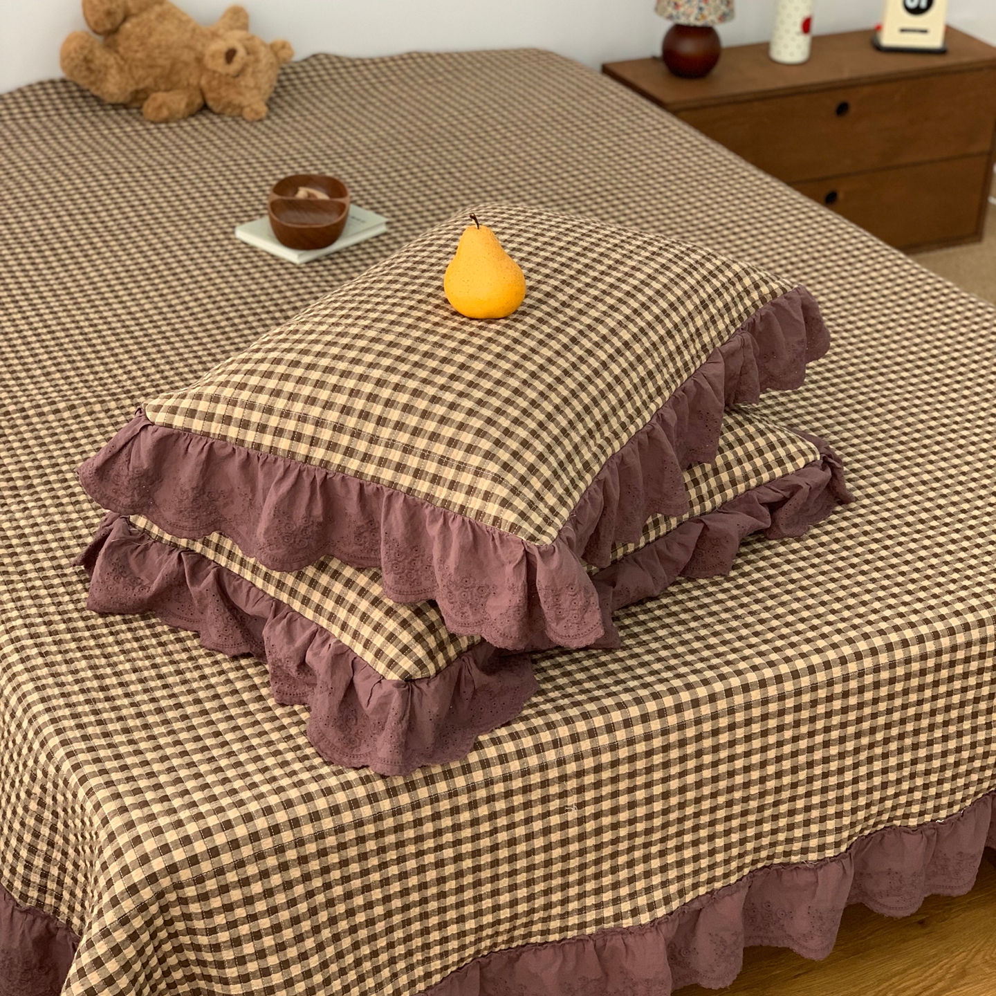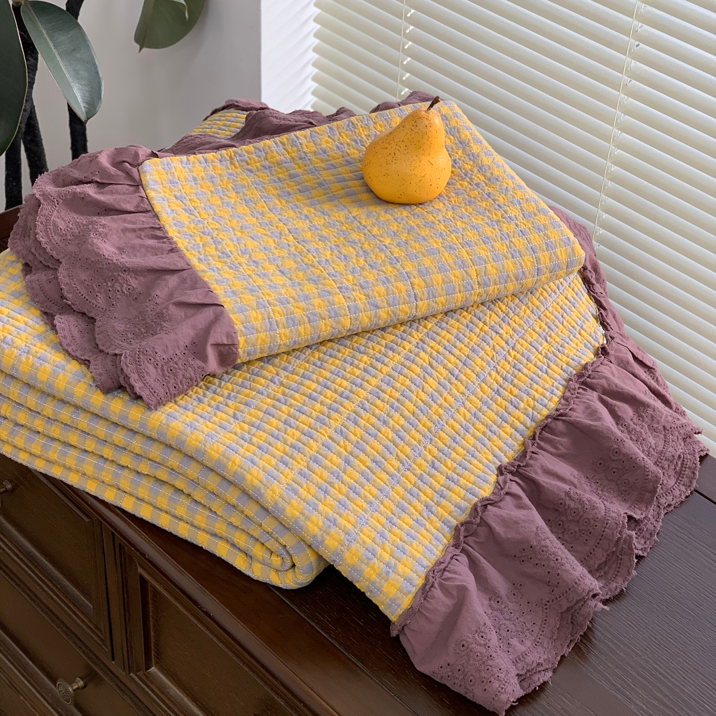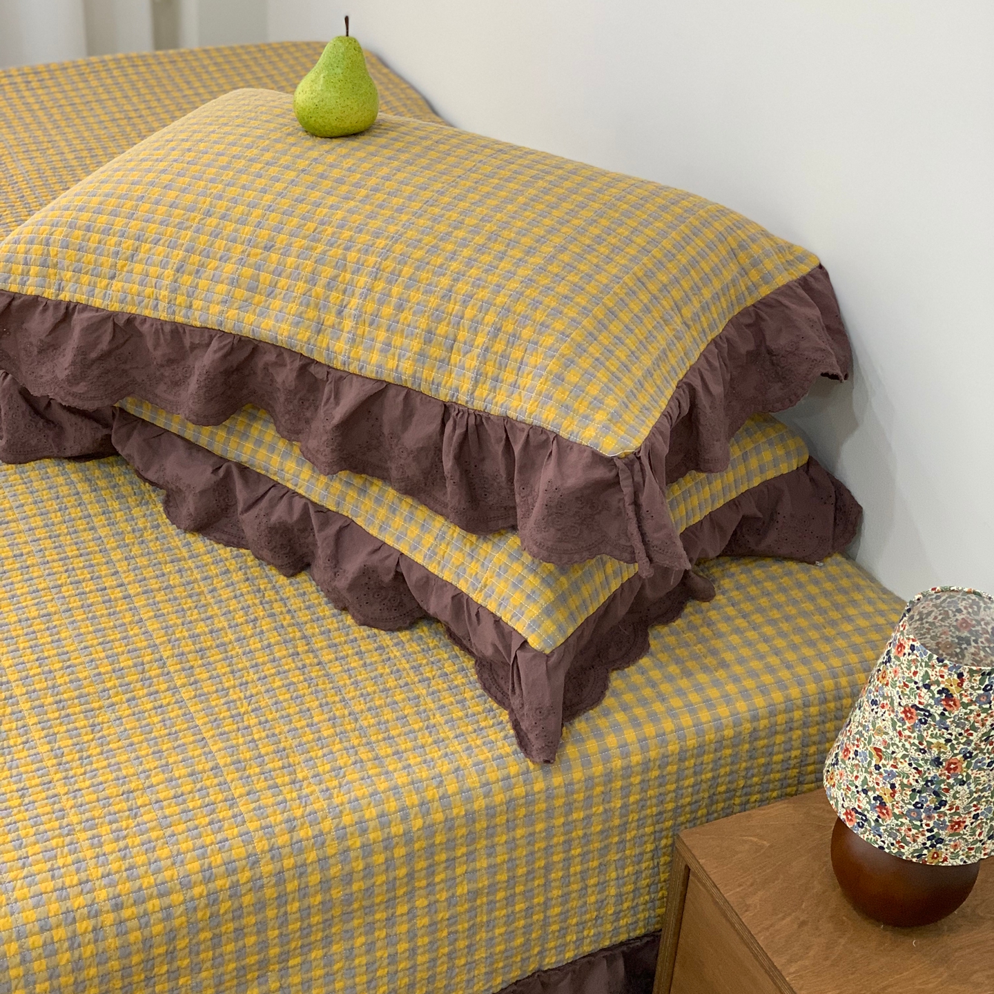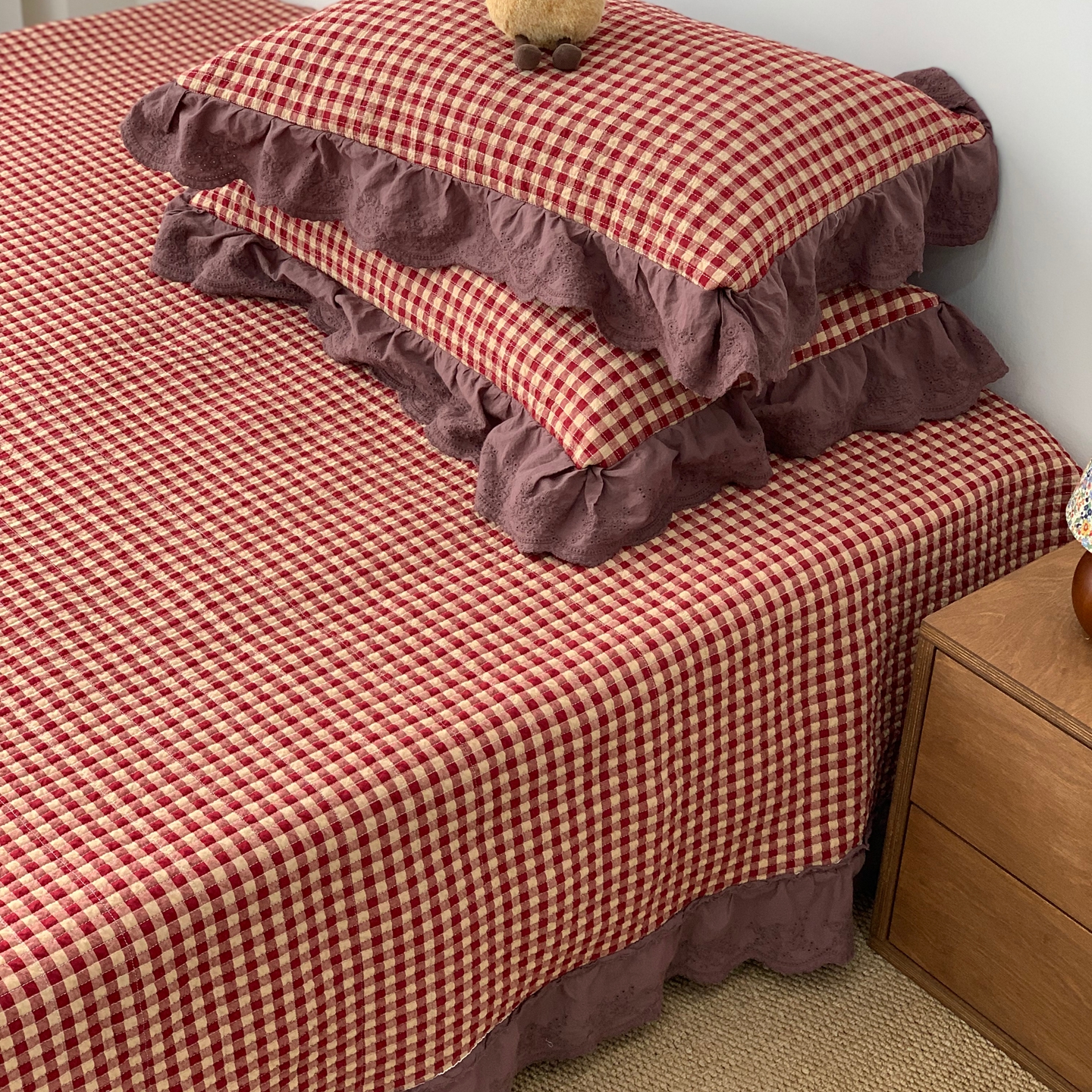 商品名称:床盖工厂店 2025新款双面全棉纯棉填充棉花花边款床盖三件套芸素 芸素 黑格