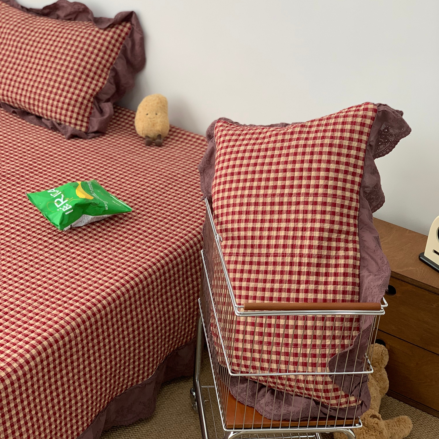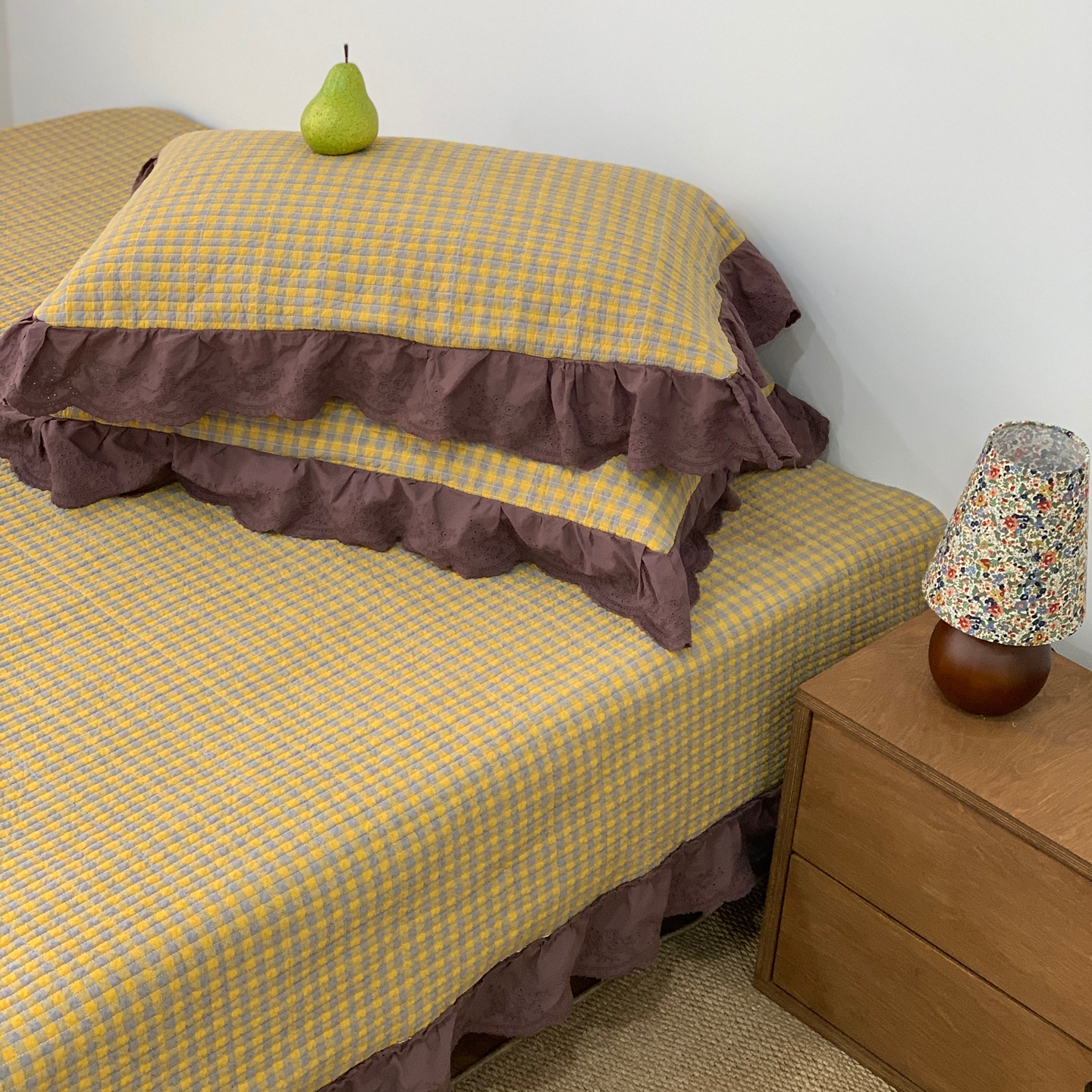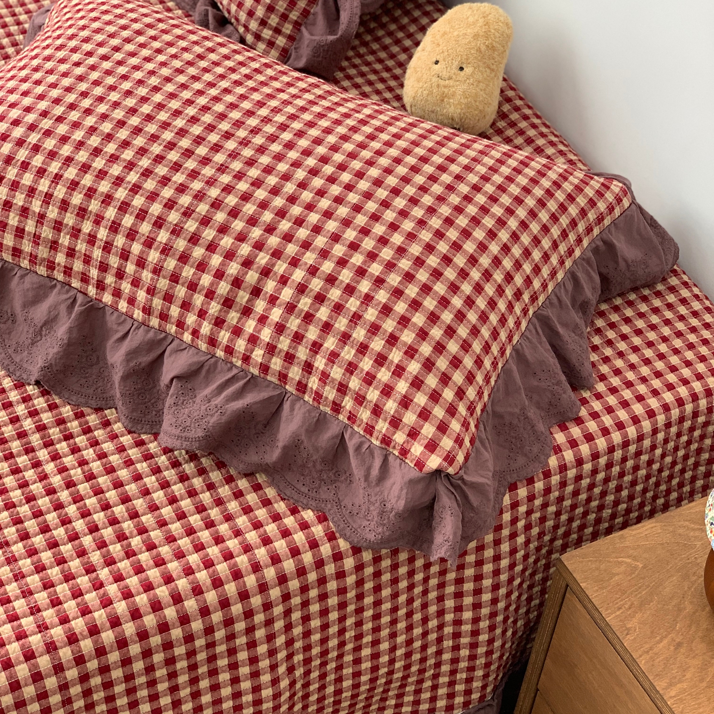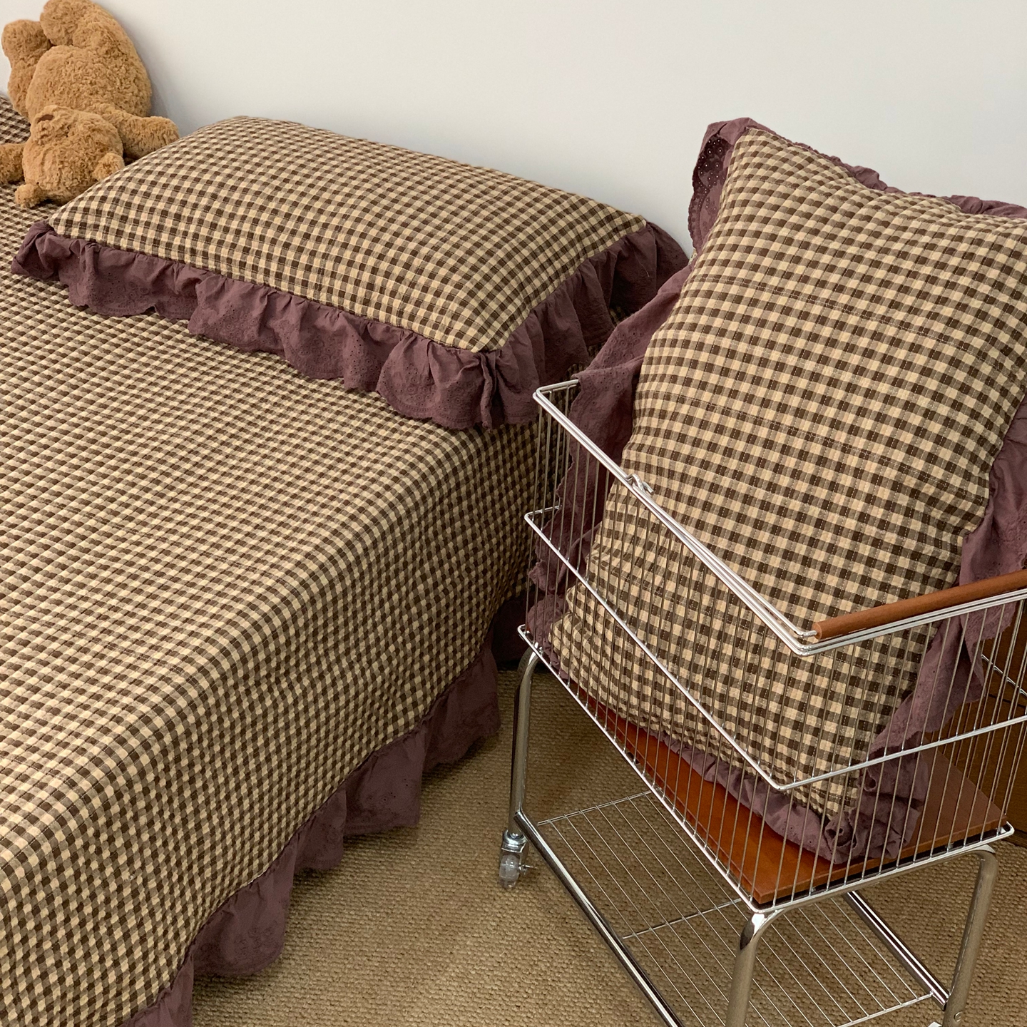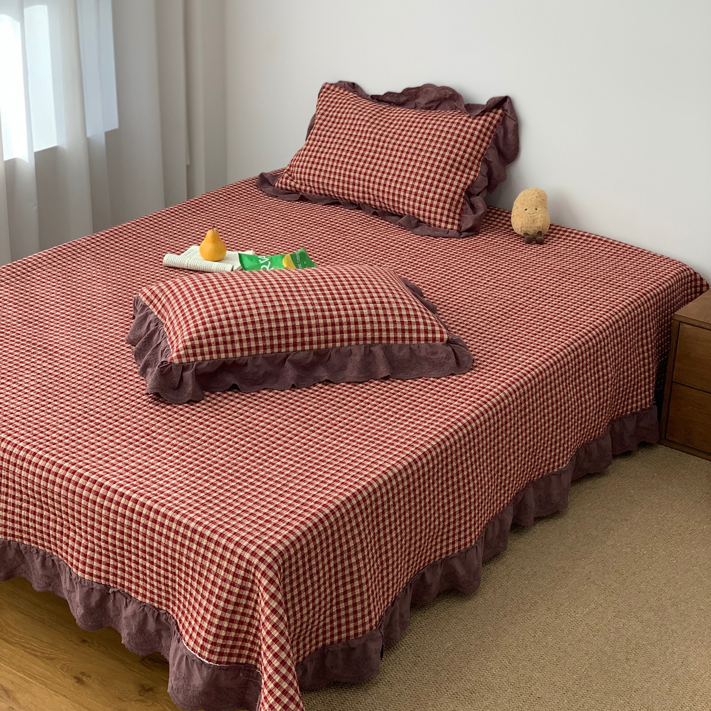 商品名称:床盖工厂店 2025新款双面全棉纯棉填充棉花花边款床盖三件套芸素 芸素 黑格