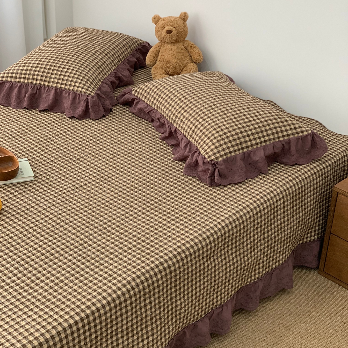 (总)床盖工厂店 2026新款双面全棉水洗棉花糖床盖三件套-米通格系列,米通格-灰色,米通格-咖色,米通格-浅绿,米通格-浅紫,米通格-玉色