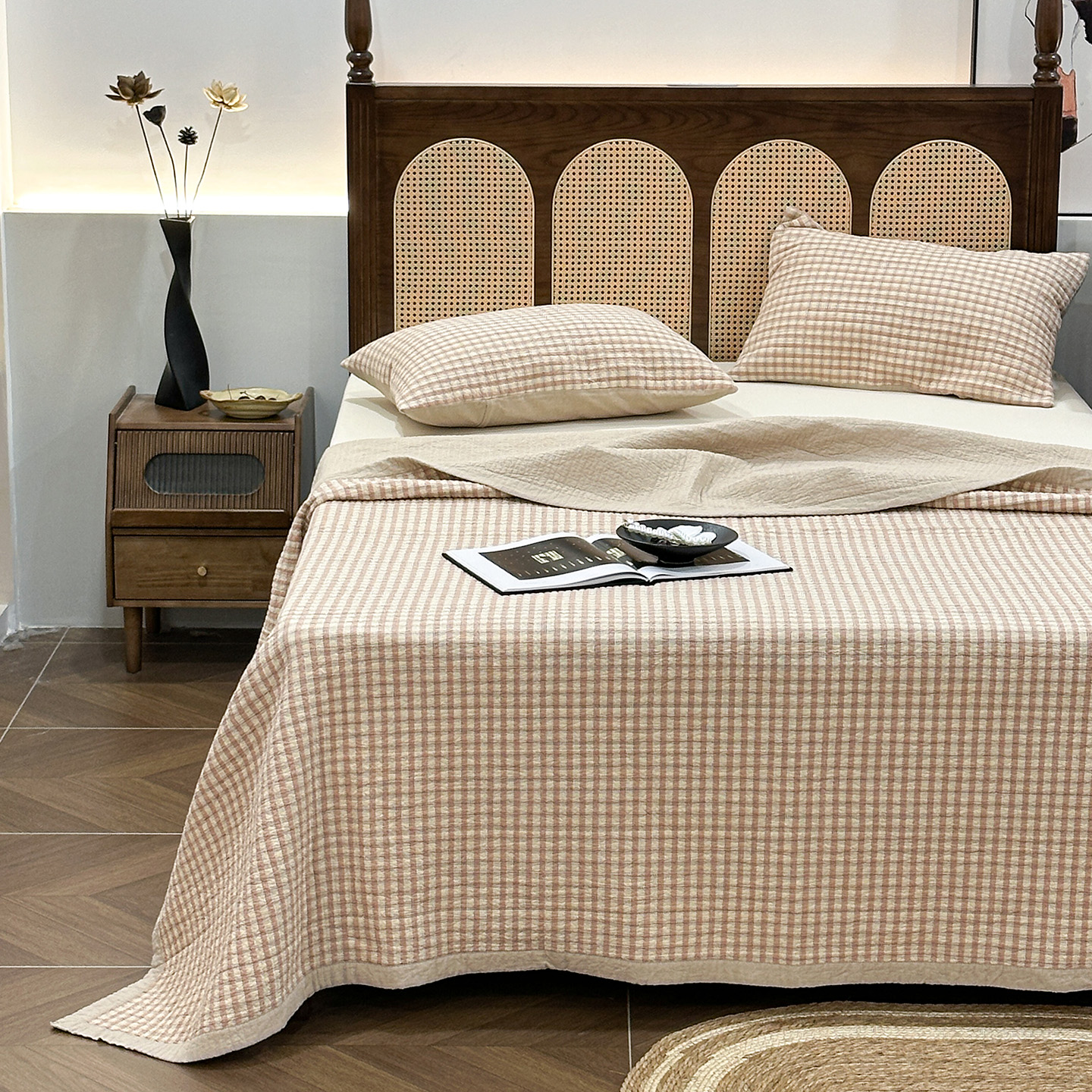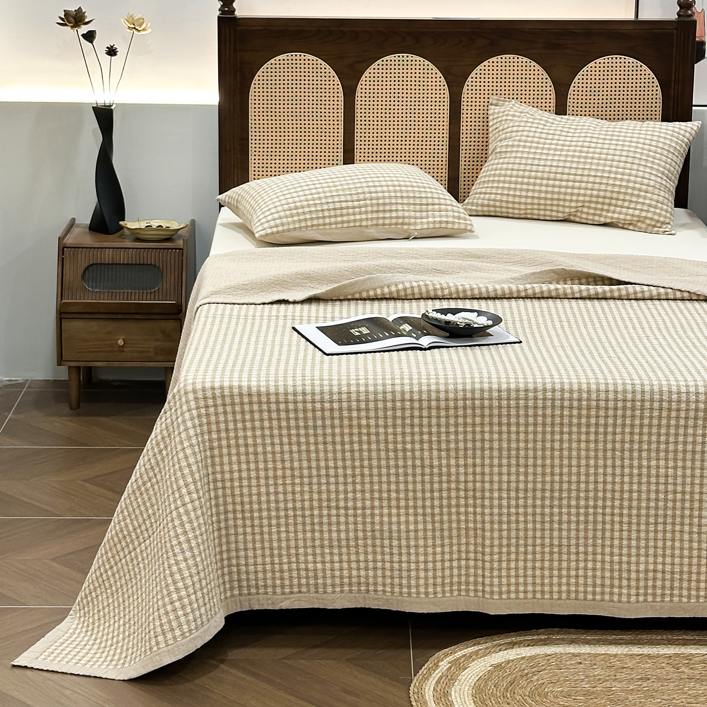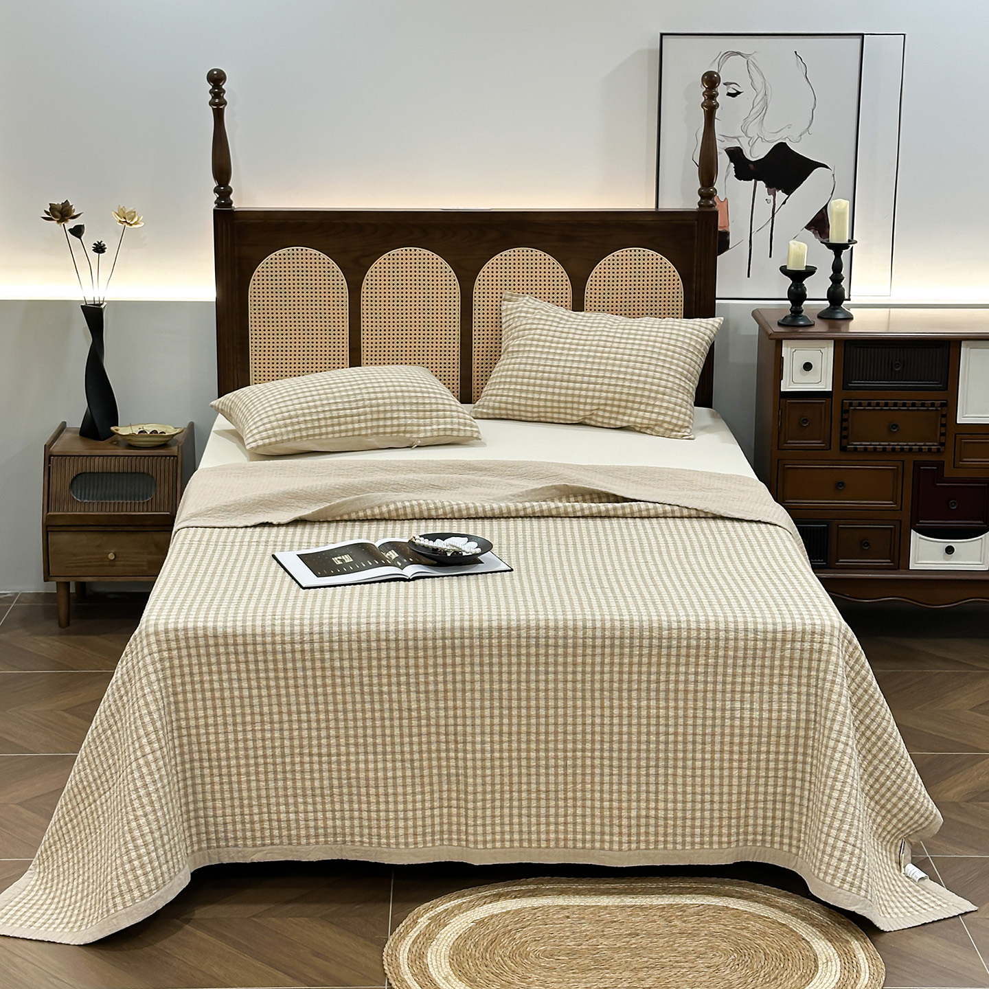 商品名称:床盖工厂店 2026新款双面水洗全棉填充棉花床盖三件套-朵拉系列 朵拉-咖