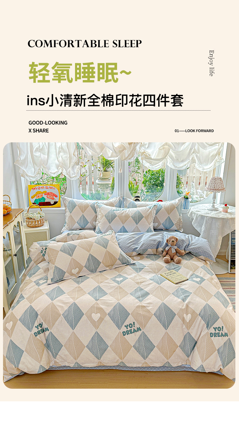 当前位置: 91家纺网 > 商品网购 > 床品套件 > 四件套 > 全棉普通四件套 > 恩泽家纺 2026新款13372ins全棉印花四件套单品系列-四件套 菱形世界