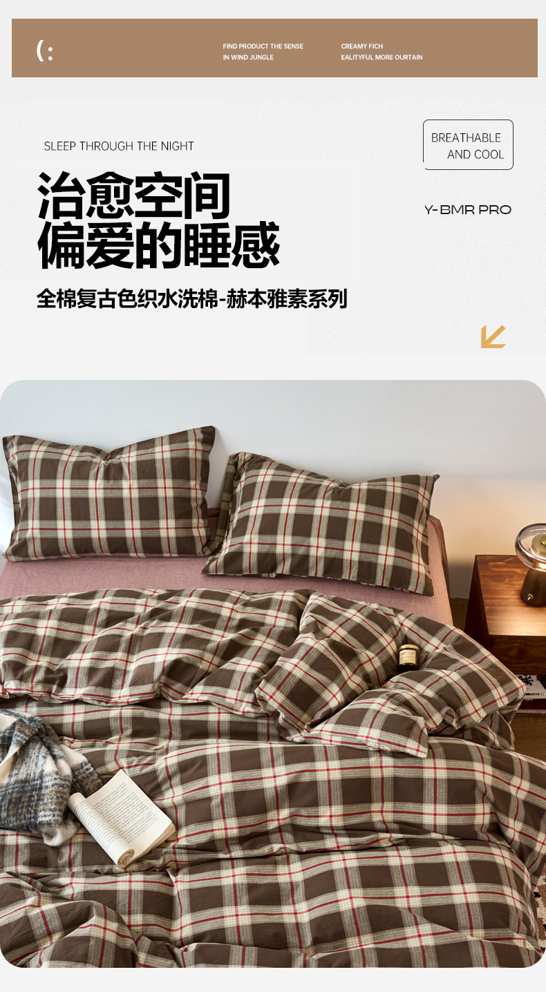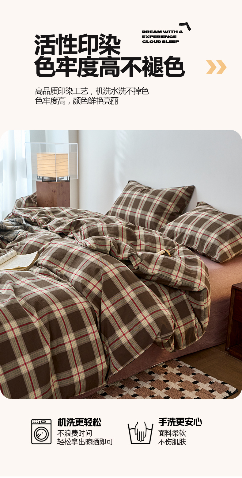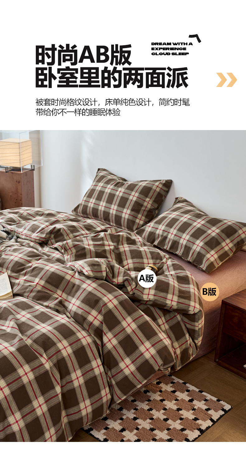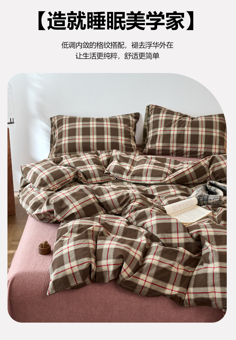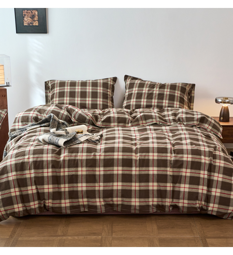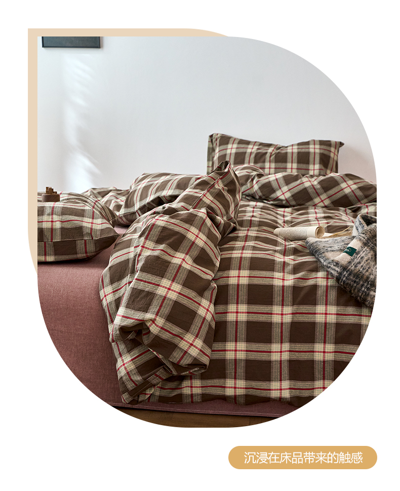当前位置: 91家纺网 > 商品网购 > 床品套件 > 四件套 > 全棉普通四件套 > 兰紫橙家纺 2026新款全棉A类深色复古色织方格子水洗棉-赫本雅素系列(含买家秀和质检报告) 木槿咖