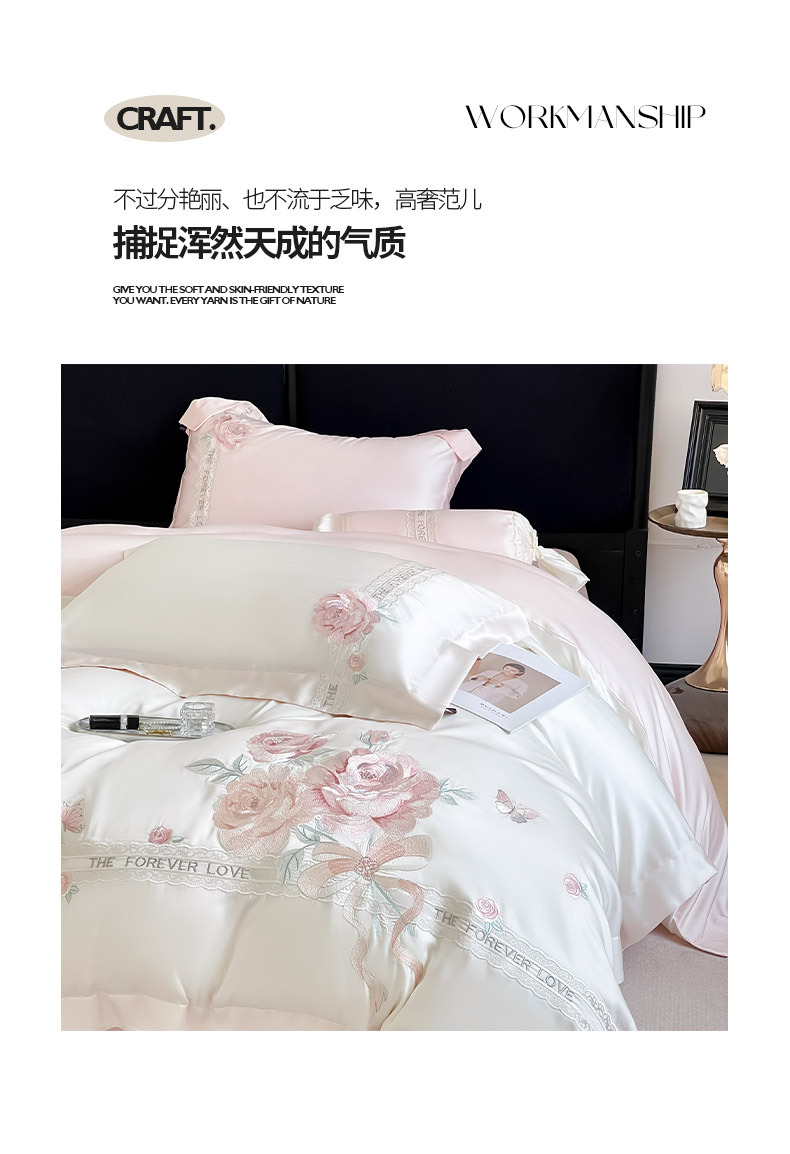 当前位置: 91家纺网 > 商品网购 > 床品套件 > 四件套 > 长绒棉四件套 > 乔利卡沃 2026春夏新款轻奢纯色A类长绒棉纯棉全棉重工刺绣被套床单四件套床上用品云栀 云栀-白粉