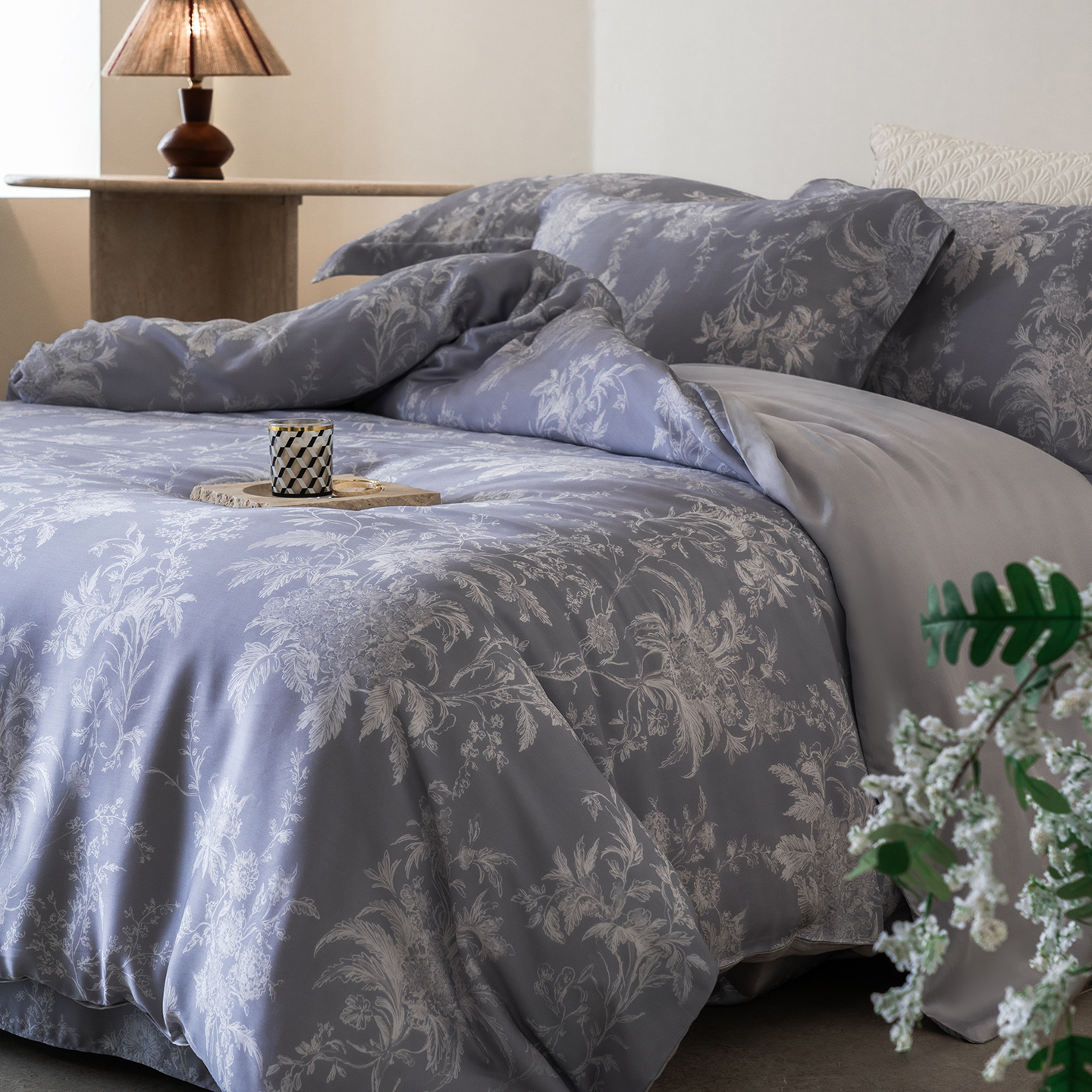 (总)佳汐蓝家纺 2025 春夏新品60支兰精天丝数码印花四件套-小苍兰花语,白,粉,蓝