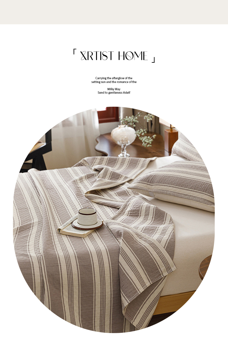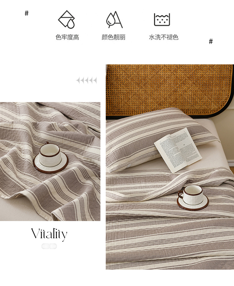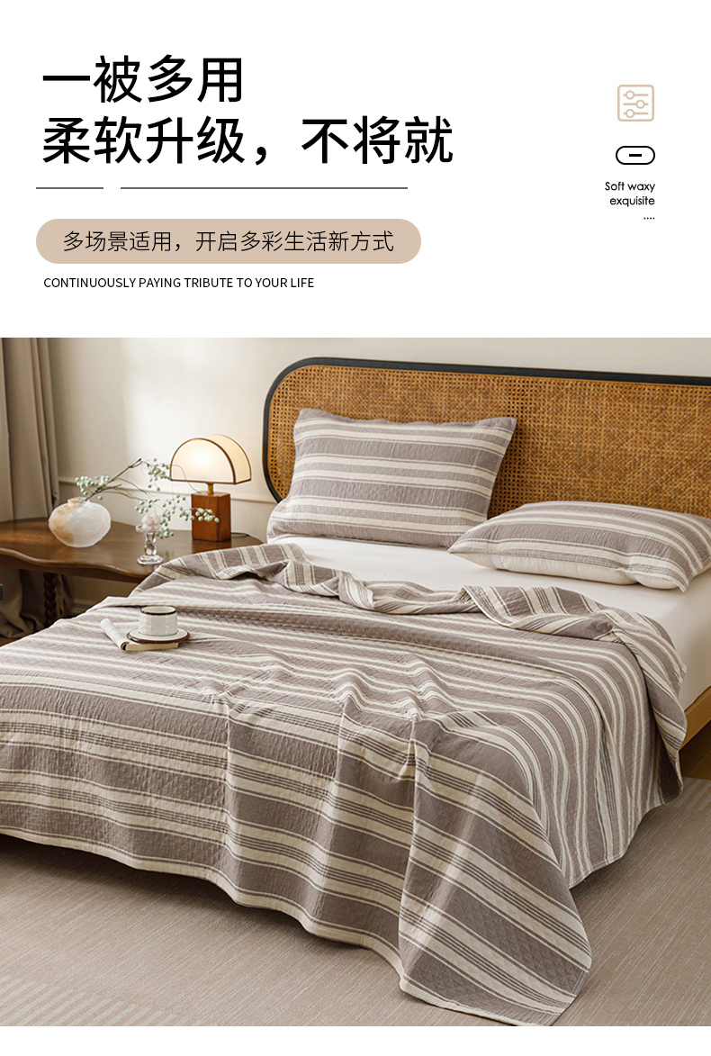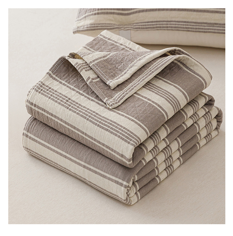 商品名称:悦然毛巾被 2026新款条纹全棉纯棉色织三层纱毛巾被休闲盖毯毯子 闲夏灰