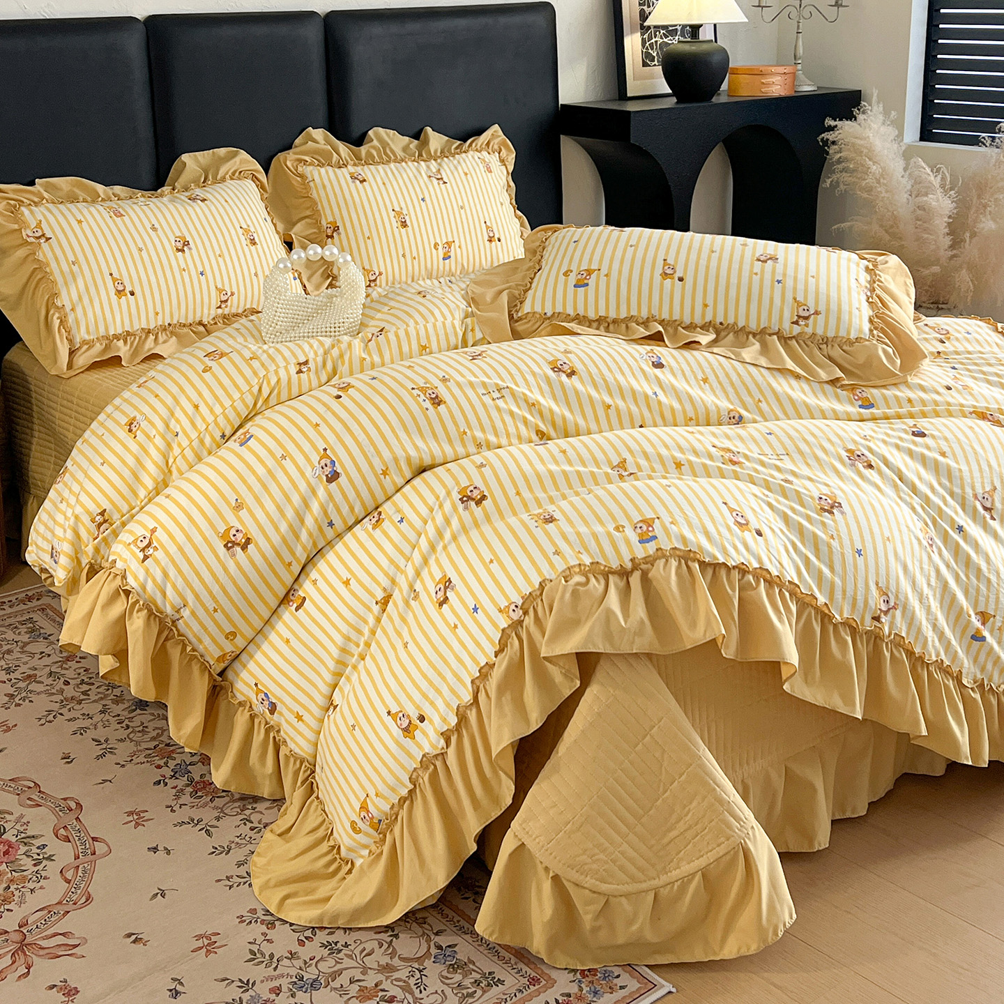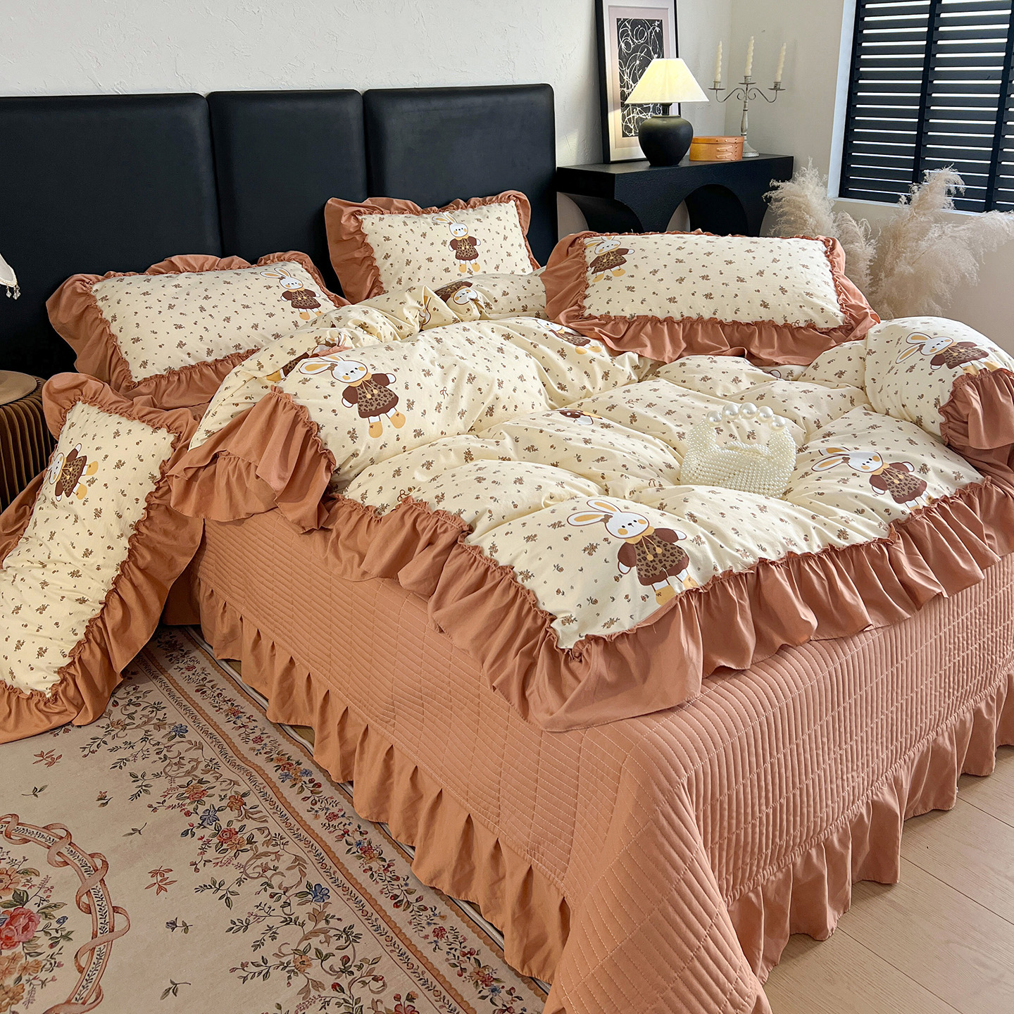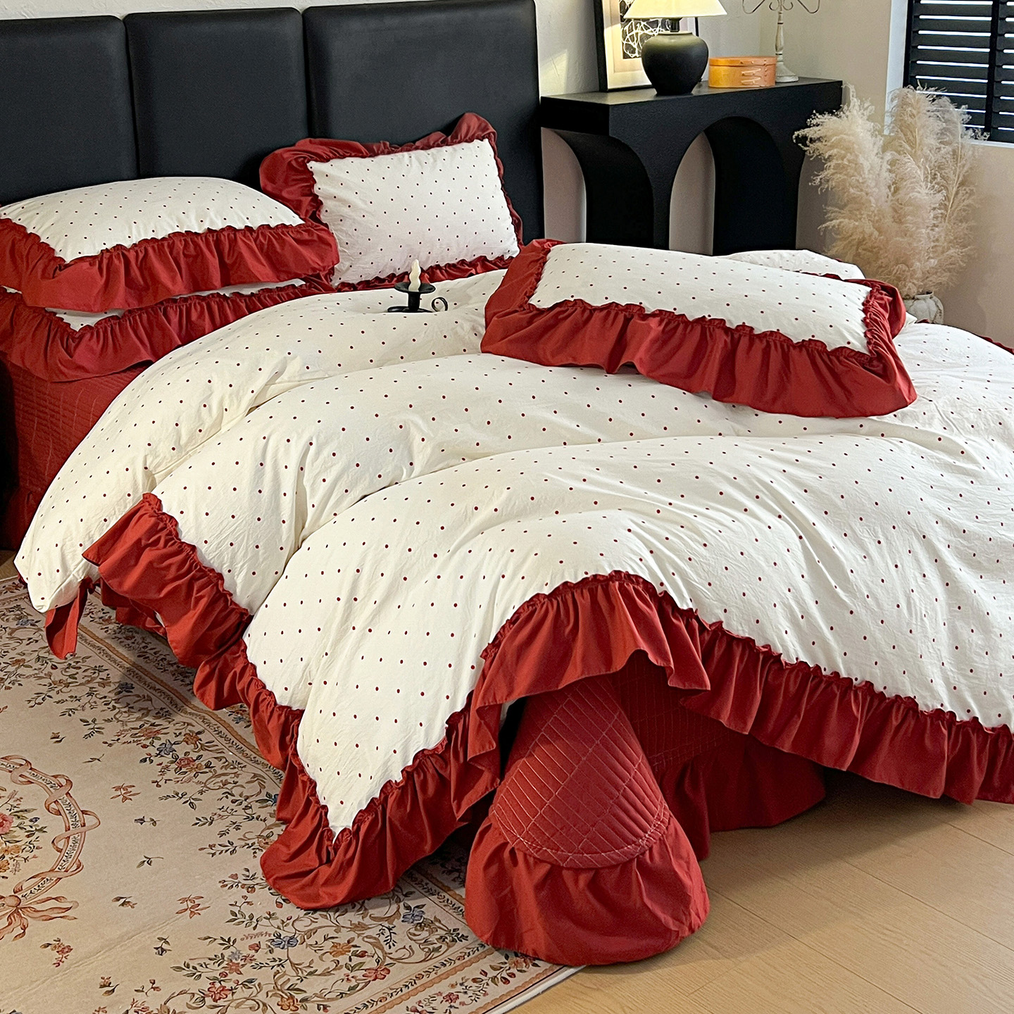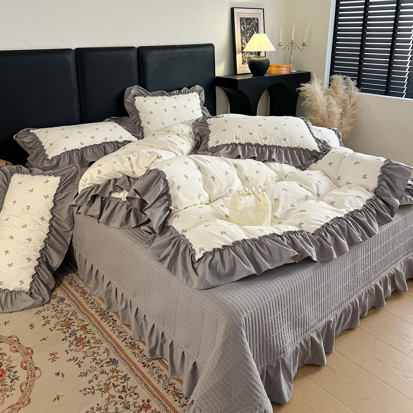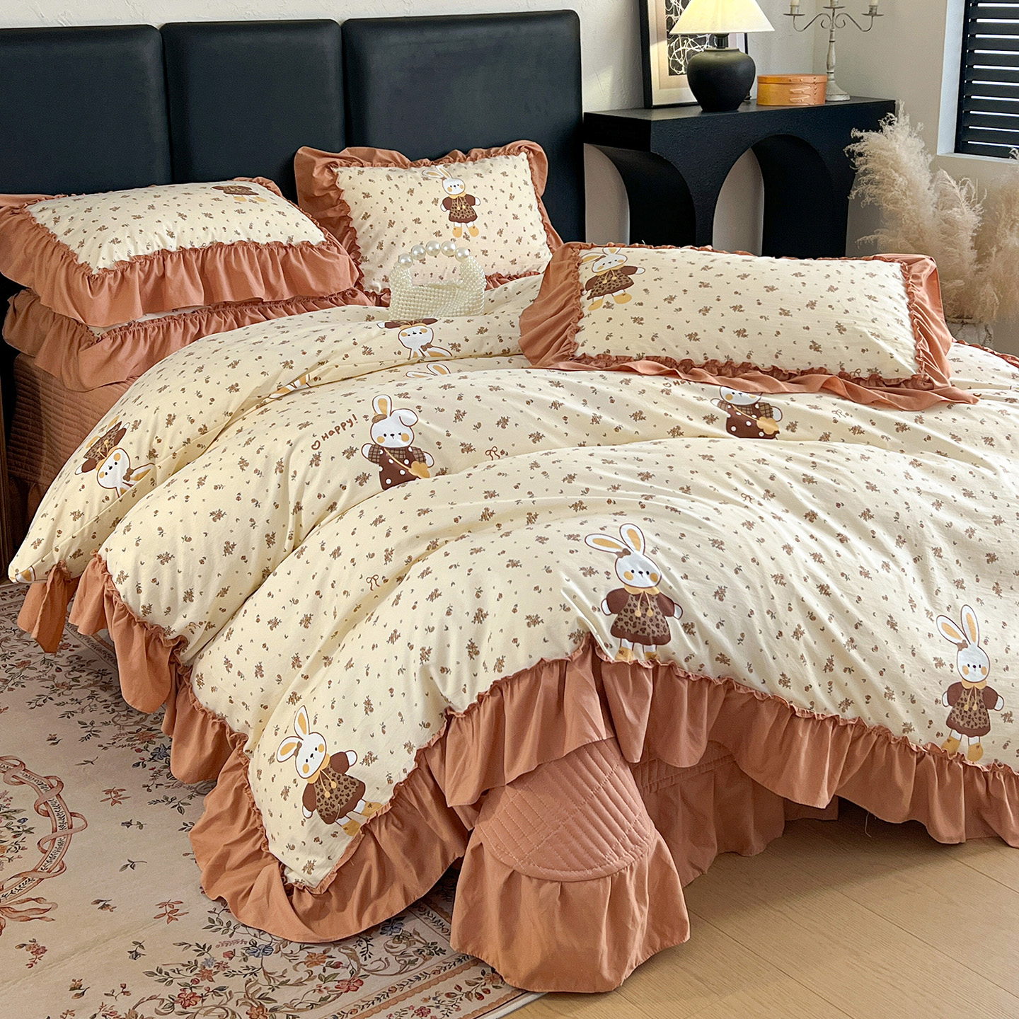 (总)梦莱斯 2026新款韩系古法韩国水洗棉云棉大布袋法式浪漫大花边床盖四件套,豹纹猫咪,草莓奶冻,粉雾波点,粉樱小碎花,红莓点点,黄油小熊派对,焦糖碎金,浪漫玫瑰,蜜桔小苍兰,奶白波点,奶茶碎花,奶灰蝴蝶结,奶咖小兔,雾蓝小雏菊,芋泥波波,组合图