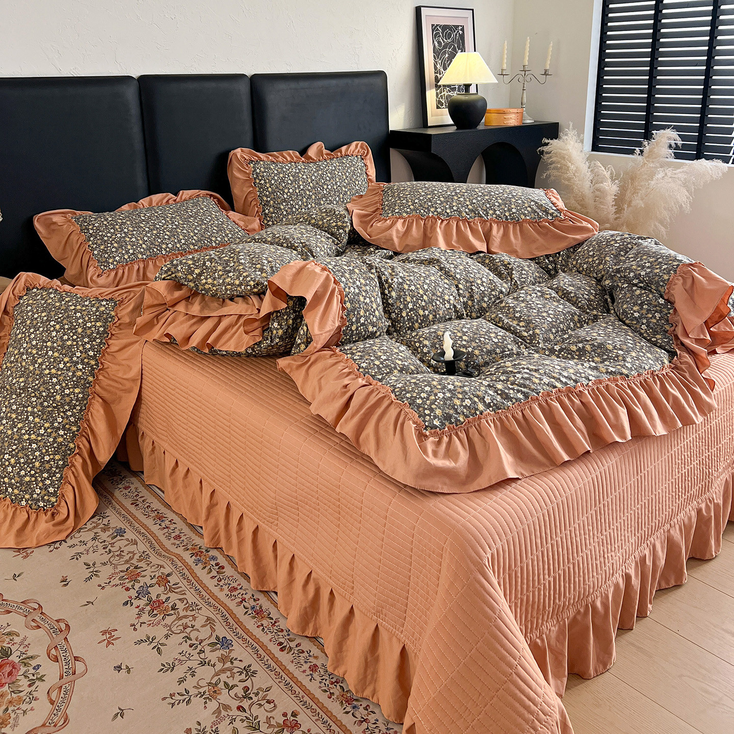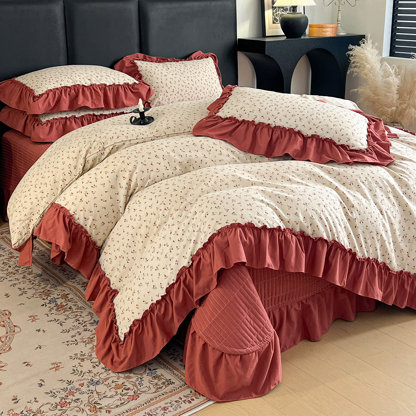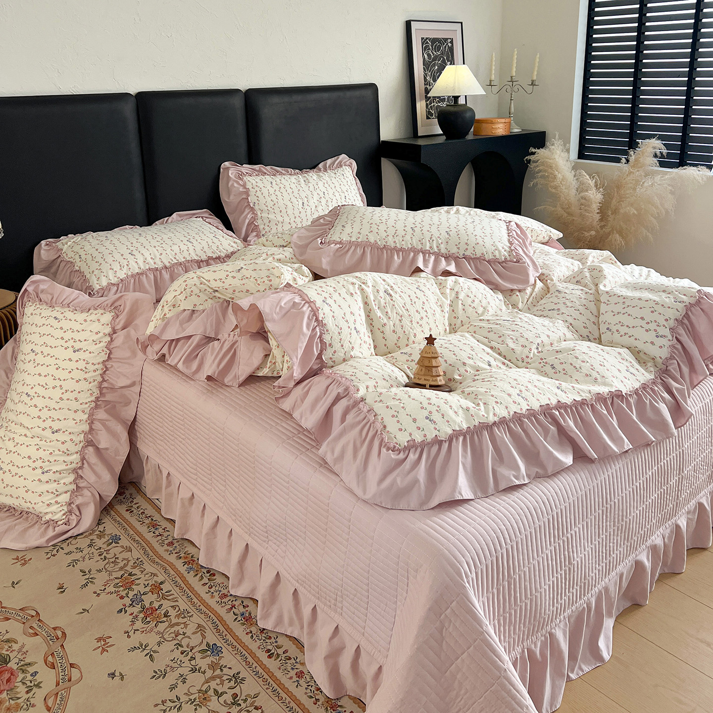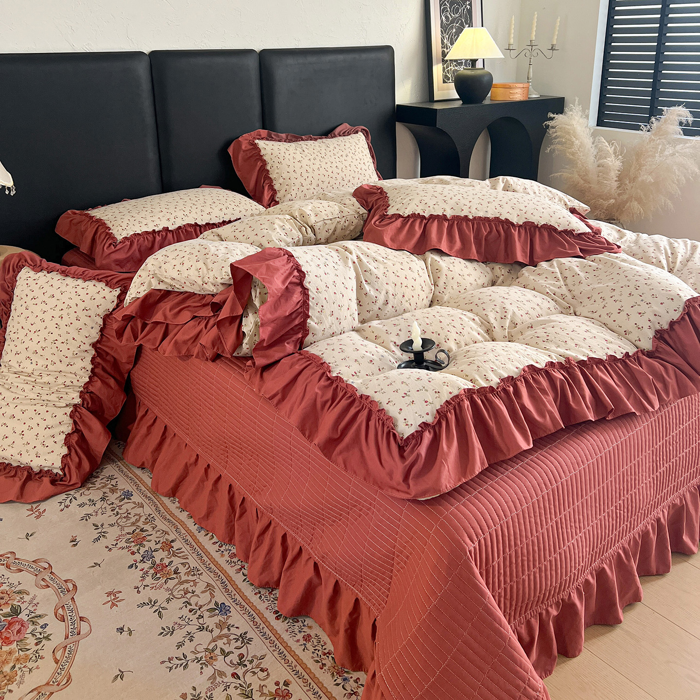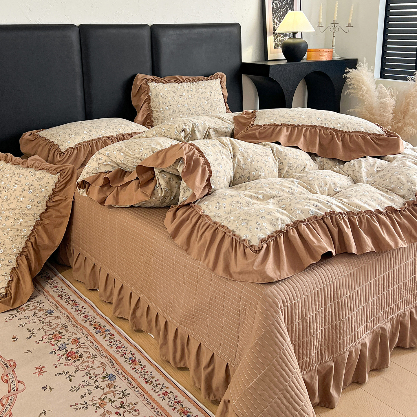 (总)梦莱斯 2025新款田园碎花纯棉花边四件套-床盖款,采薇,花精灵,花开半夏,莱茵,恋爱季,绿叶仙踪,糜花似锦,糜花熙悦,秘境花园