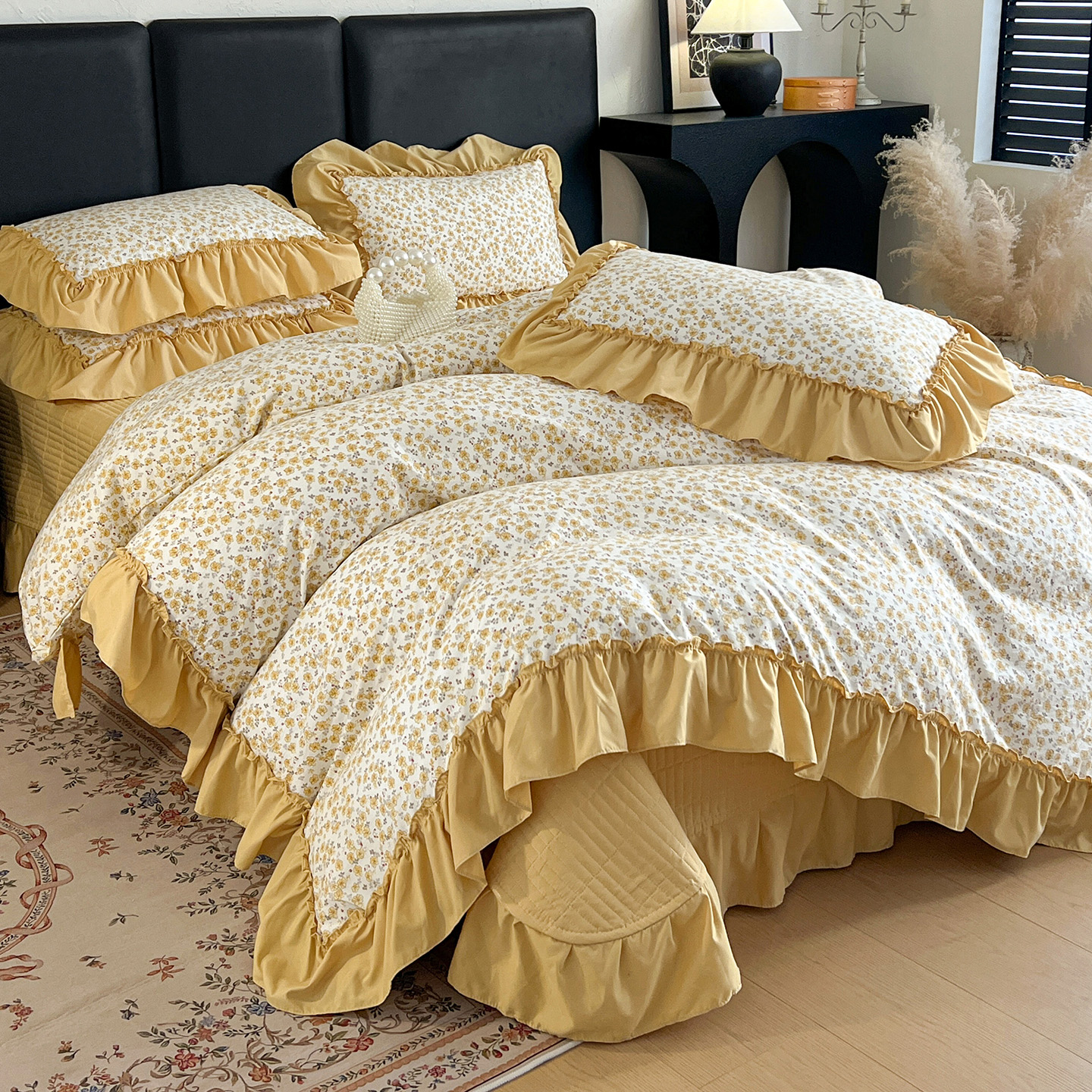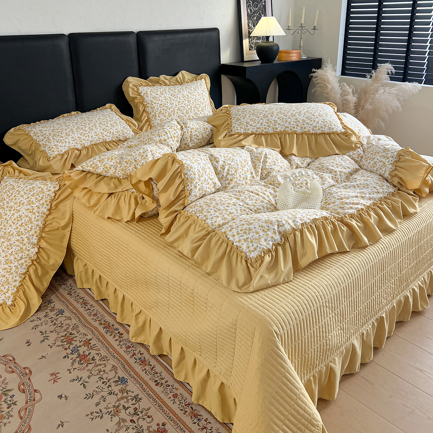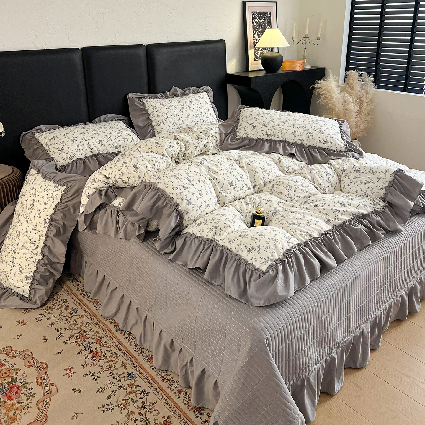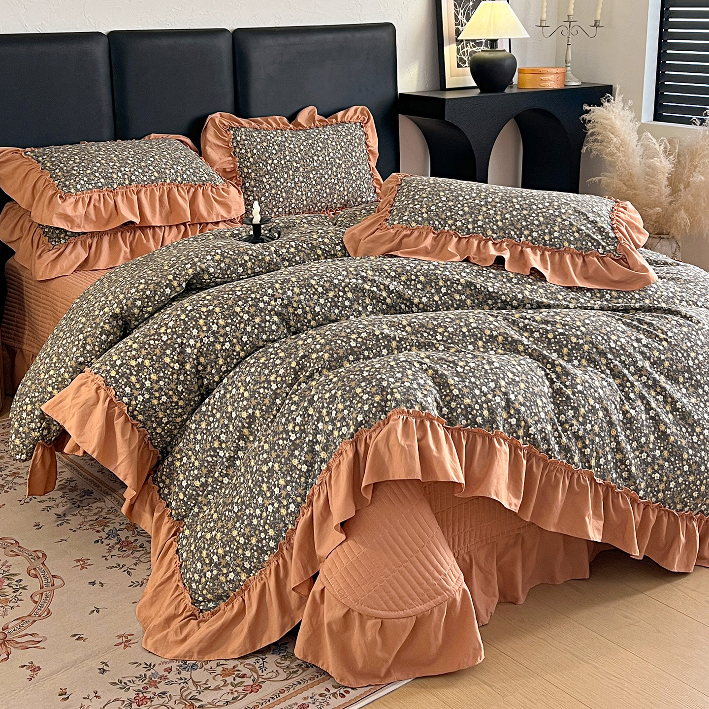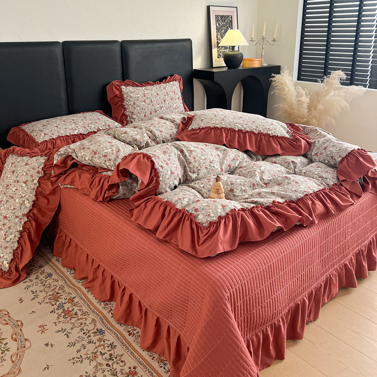 (总)梦莱斯 2025新款田园碎花纯棉花边四件套-床盖款,采薇,花精灵,花开半夏,莱茵,恋爱季,绿叶仙踪,糜花似锦,糜花熙悦,秘境花园