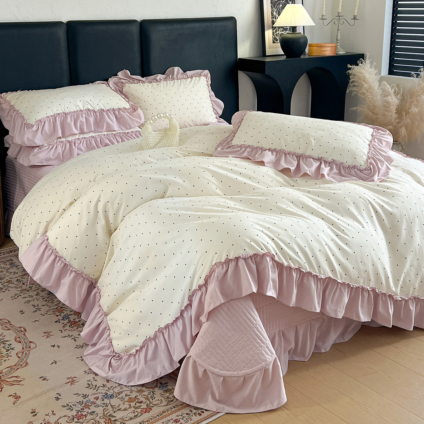 (总)梦莱斯 2025新款加厚保暖双面牛奶绒四件套-黑色花边款,爱丽丝花园,爱心点点,暗香,布偶兔兔,彩虹波点,春不晚,蝶舞,繁花,粉红蝴蝶结,粉色猫,格子爱心咖,格子猫,格子樱桃,黑巧樱桃,黑糖珍珠,蝴蝶结,花里梦,快乐女孩,玫瑰之约 - 白,玫瑰之约 - 黑,米亚,桃之夭夭,心动-灰,心动-紫,紫花萌境