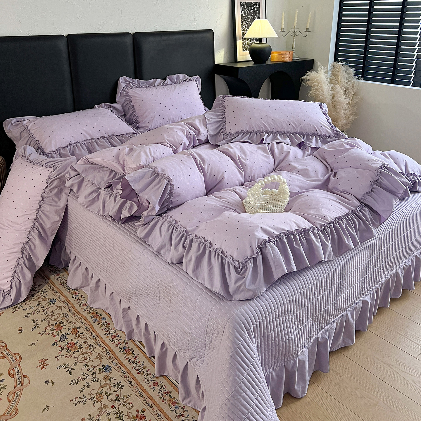 (总) 梦莱斯 2026新款小清新可爱风纯棉花边床盖四件套,灰格心,漫野,午后时光,小玫瑰,紫菱花笺,小象,屿花,浅棠絮语,彩色波点,彩色小草莓,粉蔷薇,杏野繁花,狗狗家族,蝴蝶结,可爱狗狗,可爱胡萝卜,蓝色狗狗,雾紫汀兰,蓝色梦铃,漫花蝶舞,米色南瓜,熊熊乐园,紫色小兔,粉雾小蔷薇,焦糖小玫瑰,蓝调花信,绿格小蝴蝶,蜜黄小雏菊,木马游乐园,奶白条纹花,奶白紫菀,奶油小樱桃,浅蓝星花,甜心蝴蝶结,甜心小马