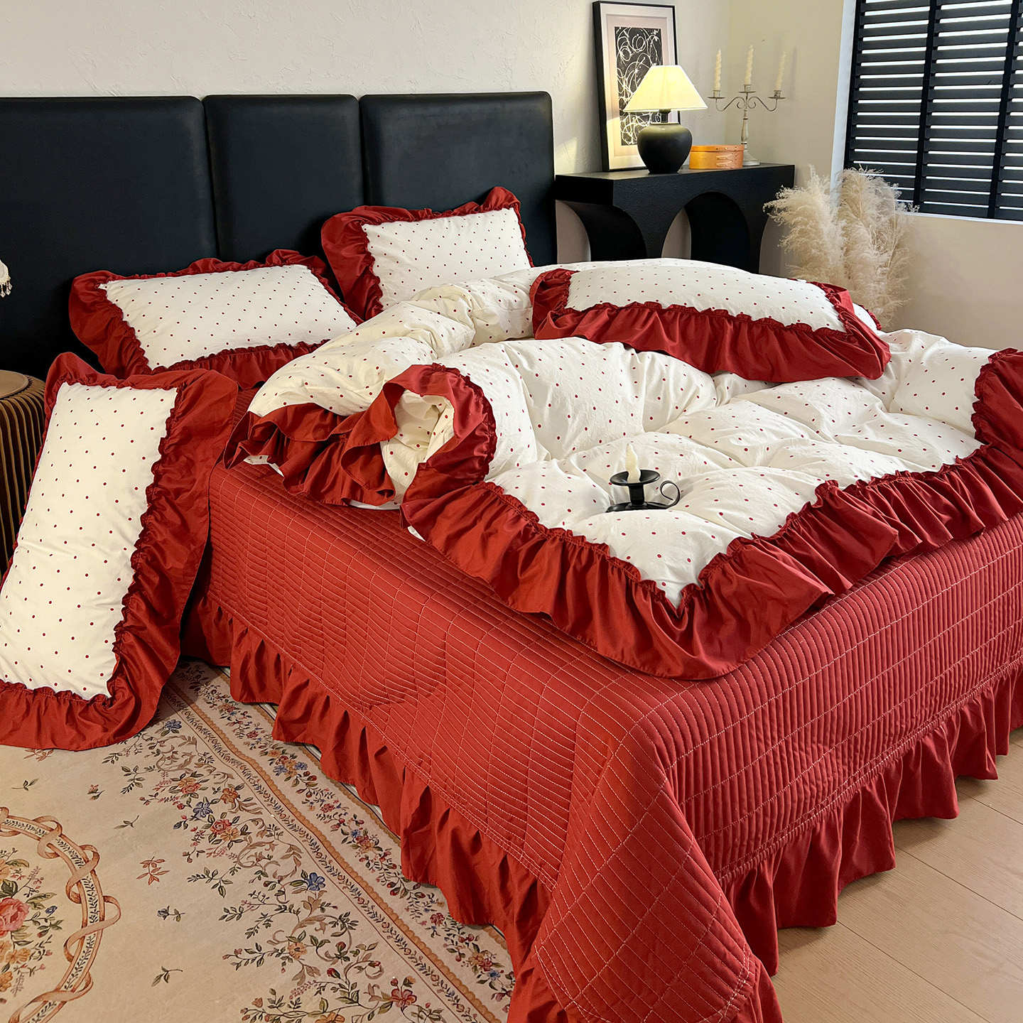 (总)梦莱斯 2025新款亲肤舒适双面牛奶绒床盖款四件套,爱心灰,爱心紫,豹纹-咖,豹纹猫-粉,彩虹点,豆蔻年华,黑糖珍珠,黑珍珠,蝴蝶庄园,满园春色,丝绒蛋糕,胭脂,妖姬,樱桃格趣,樱桃派,樱桃派-黑