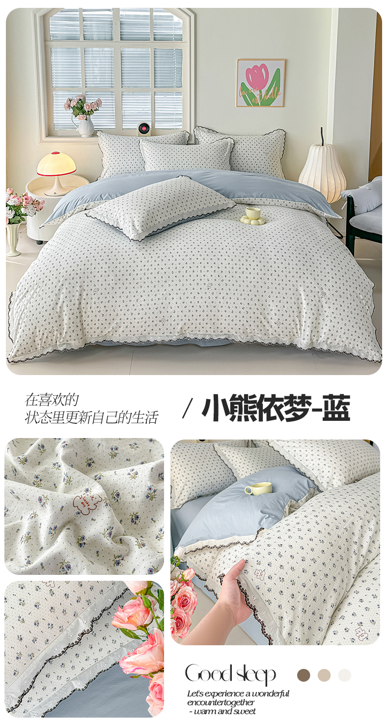 商品名称:梓之赫 2026新款古法水洗云感棉四件套 小熊依梦-蓝