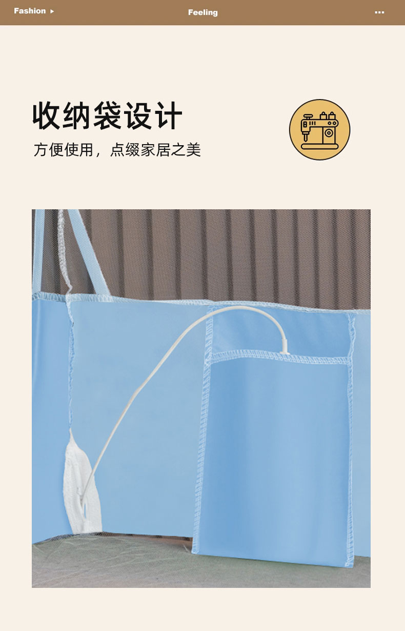商品名称:青竹苑 2026新款免安装大顶魔术蚊帐三开门布三角款 太空蓝