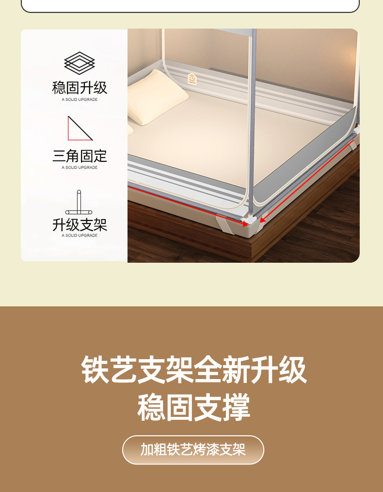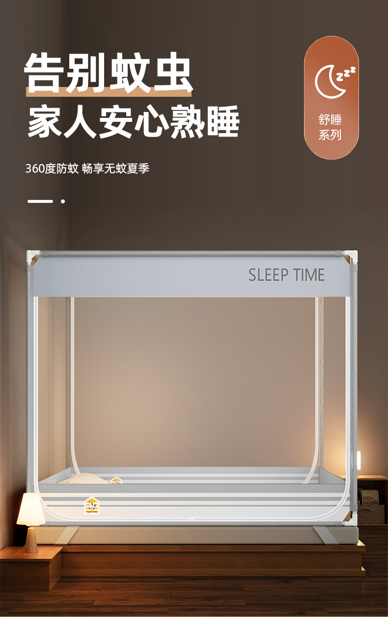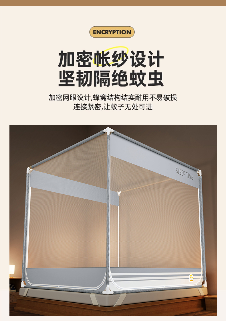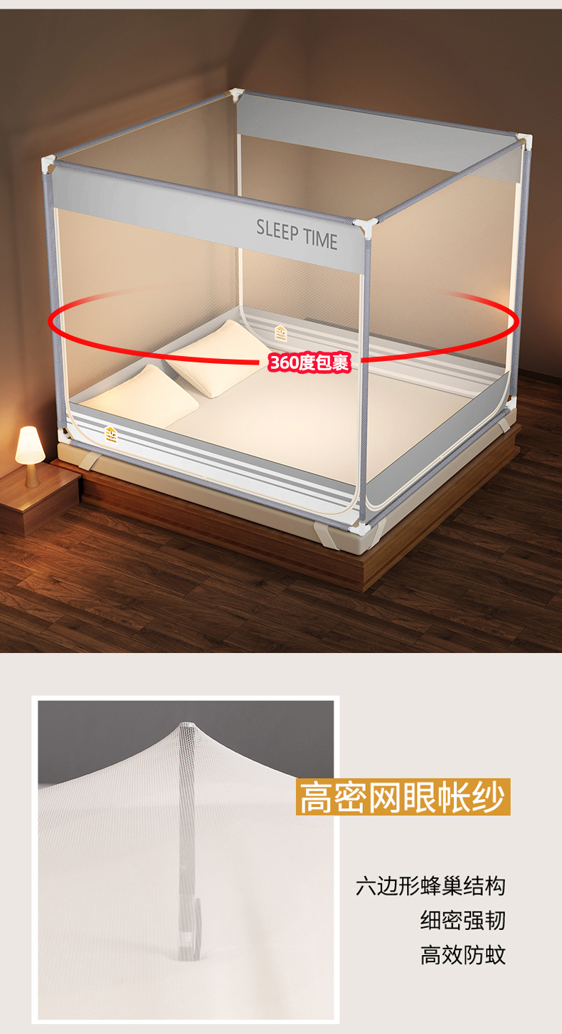商品名称:青竹苑 2026新款三门全底外穿坐床式蚊帐儿童防摔防蚊拉链方帐 大地灰