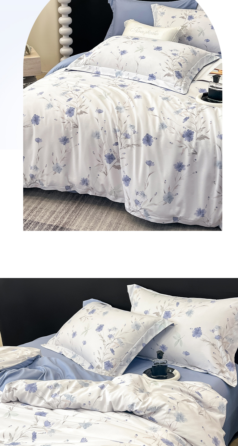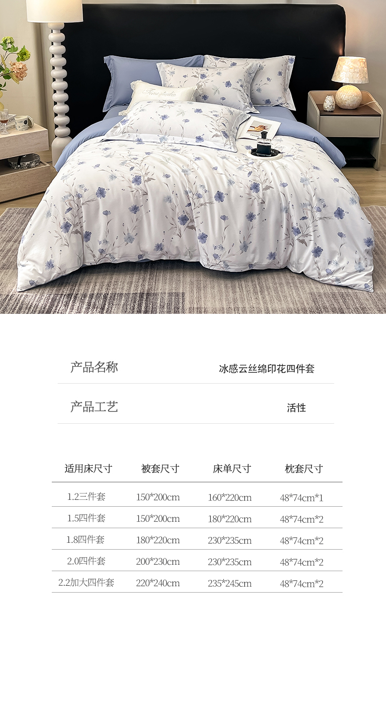 当前位置: 91家纺网 > 商品网购 > 床品套件 > 四件套 > 其它四件套 > 繁花家居 2026凉感云丝棉高克重冰感天丝绵四件套 一抹幽蓝