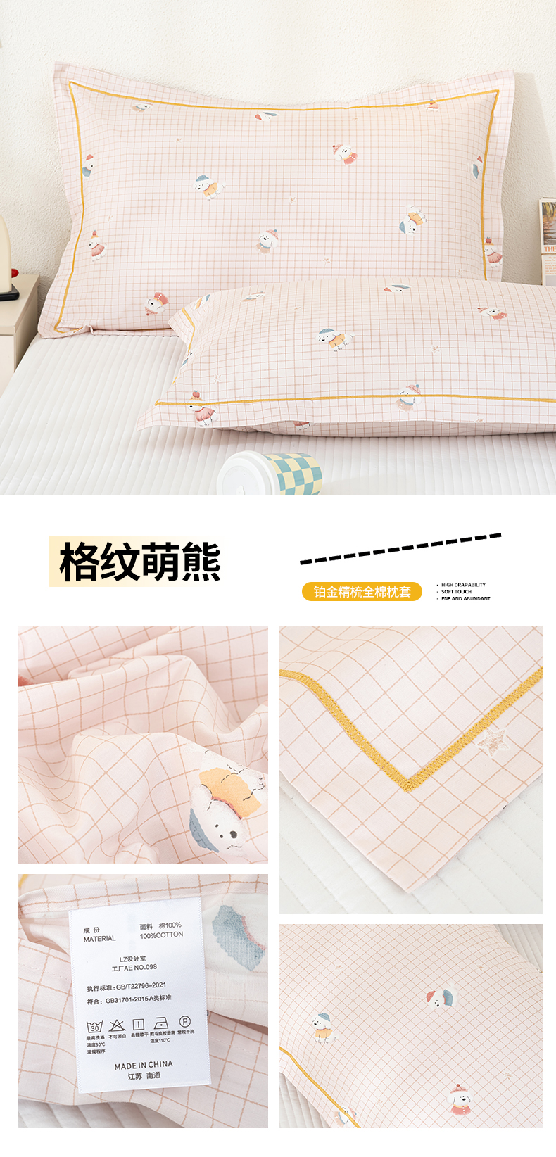 (总)良佐生活 2026新款40支铂金精梳全棉一字绣枕套,初遇-绿,莉亚,初遇-灰,溪言-兰,溪言-粉,青格萌喵,格纹萌熊,柚子小西,贝里斯,云川,组合(仅参考)