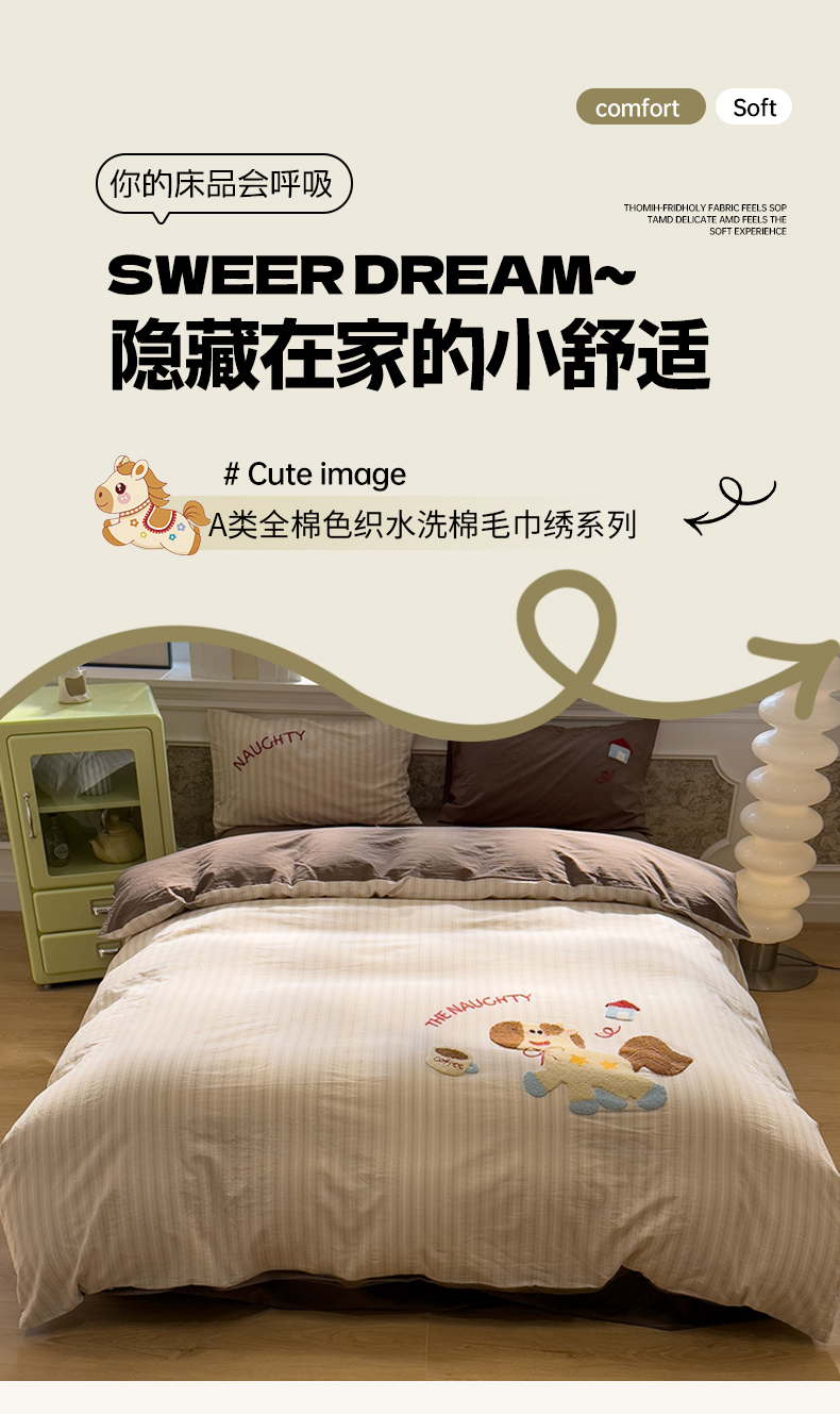 当前位置: 91家纺网 > 商品网购 > 床品套件 > 四件套 > 全棉普通四件套 > 麦田家纺 2026加密A类色织全棉纯棉水洗棉毛巾绣四件套 星星小马