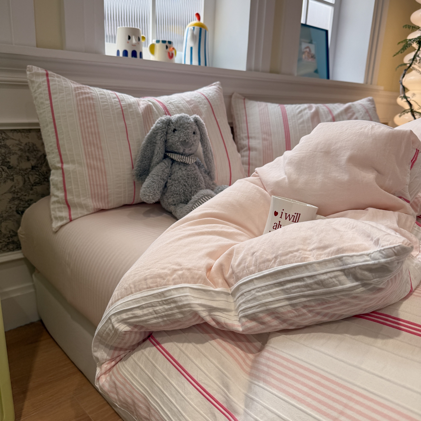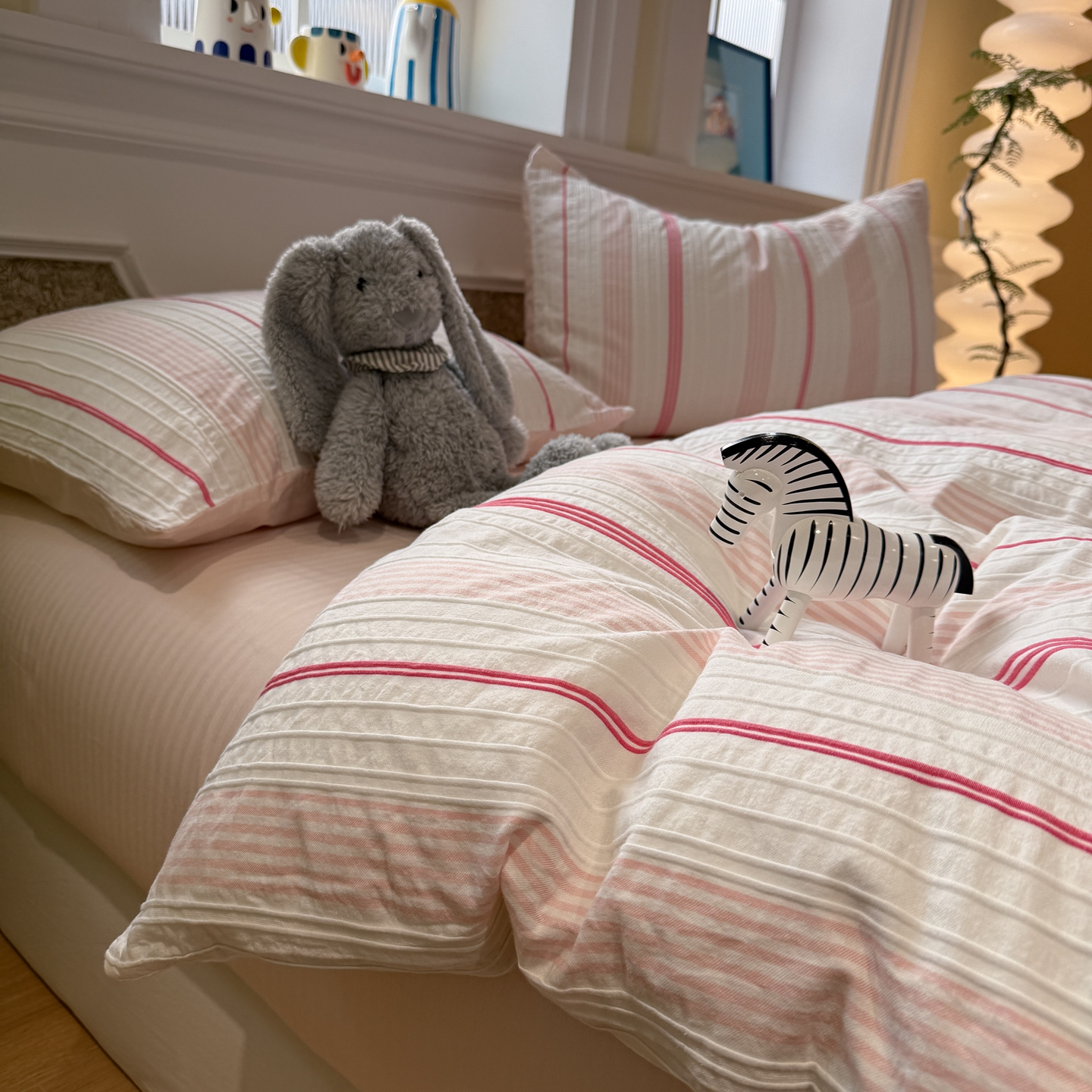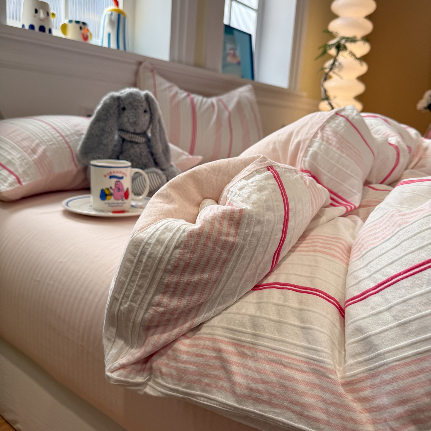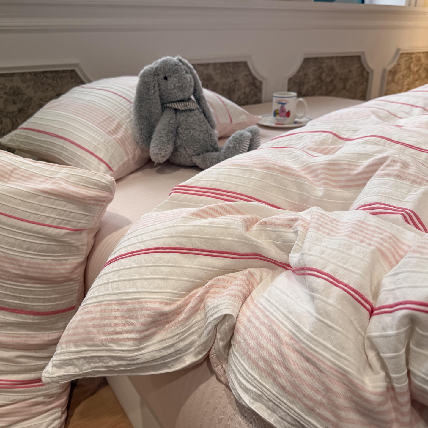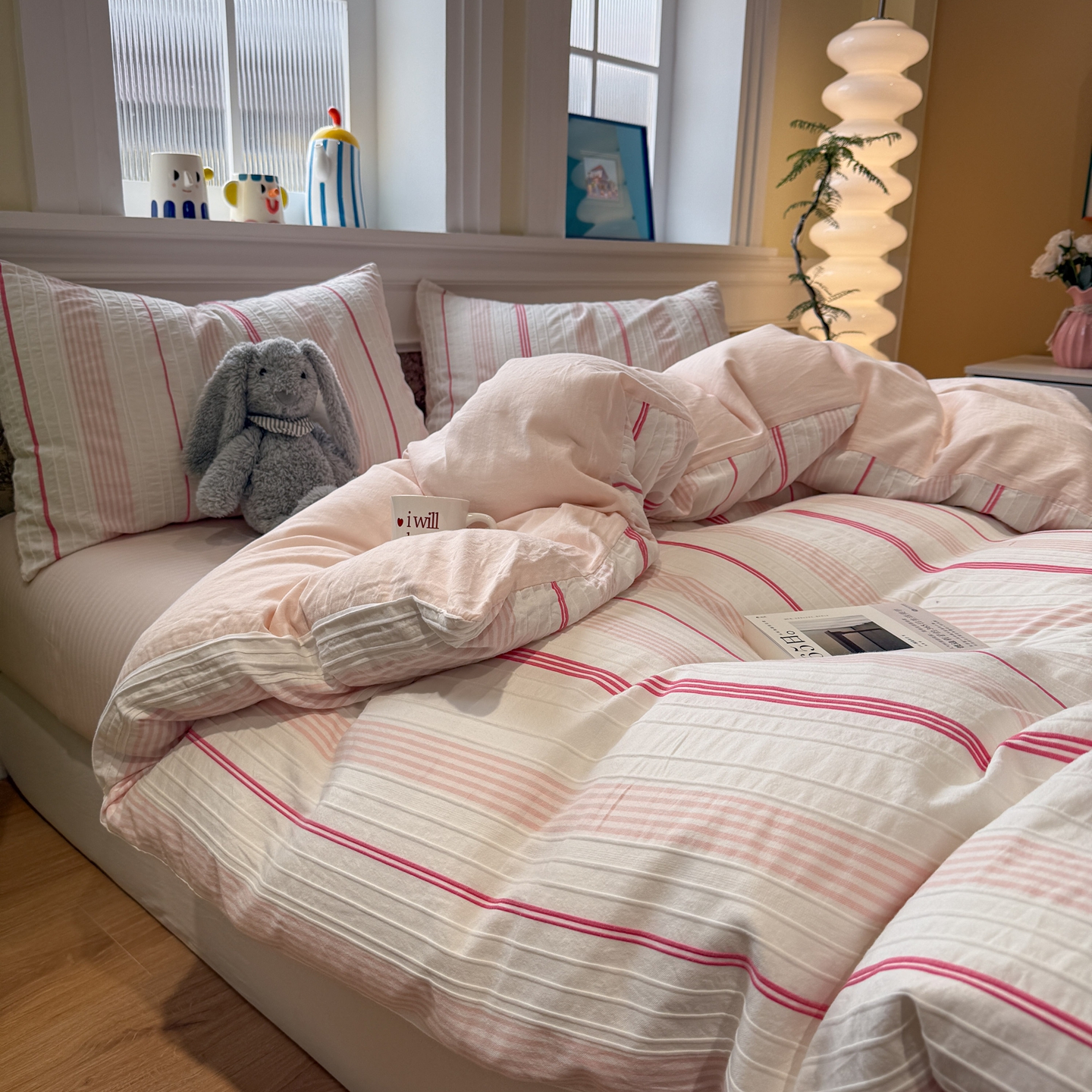 当前位置: 91家纺网 > 商品网购 > 床品套件 > 三件套 > 棉小二2026新款A类全棉水洗棉色织提花三件套-简约 简约-粉