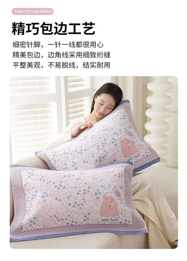 当前位置: 91家纺网 > 商品网购 > 床上用品 > 枕巾垫巾 > 朴尔家纺-毛巾被 2026新品小清新纯棉色织高密多层纱布枕巾 千鸟长耳兔-粉