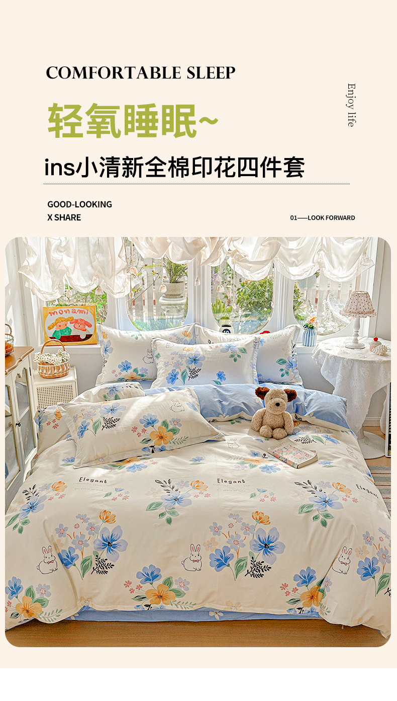 当前位置: 91家纺网 > 商品网购 > 床品套件 > 四件套 > 全棉普通四件套 > 佳汐蓝家纺 2026新款全棉纯棉加厚13376印花四件套 若薇