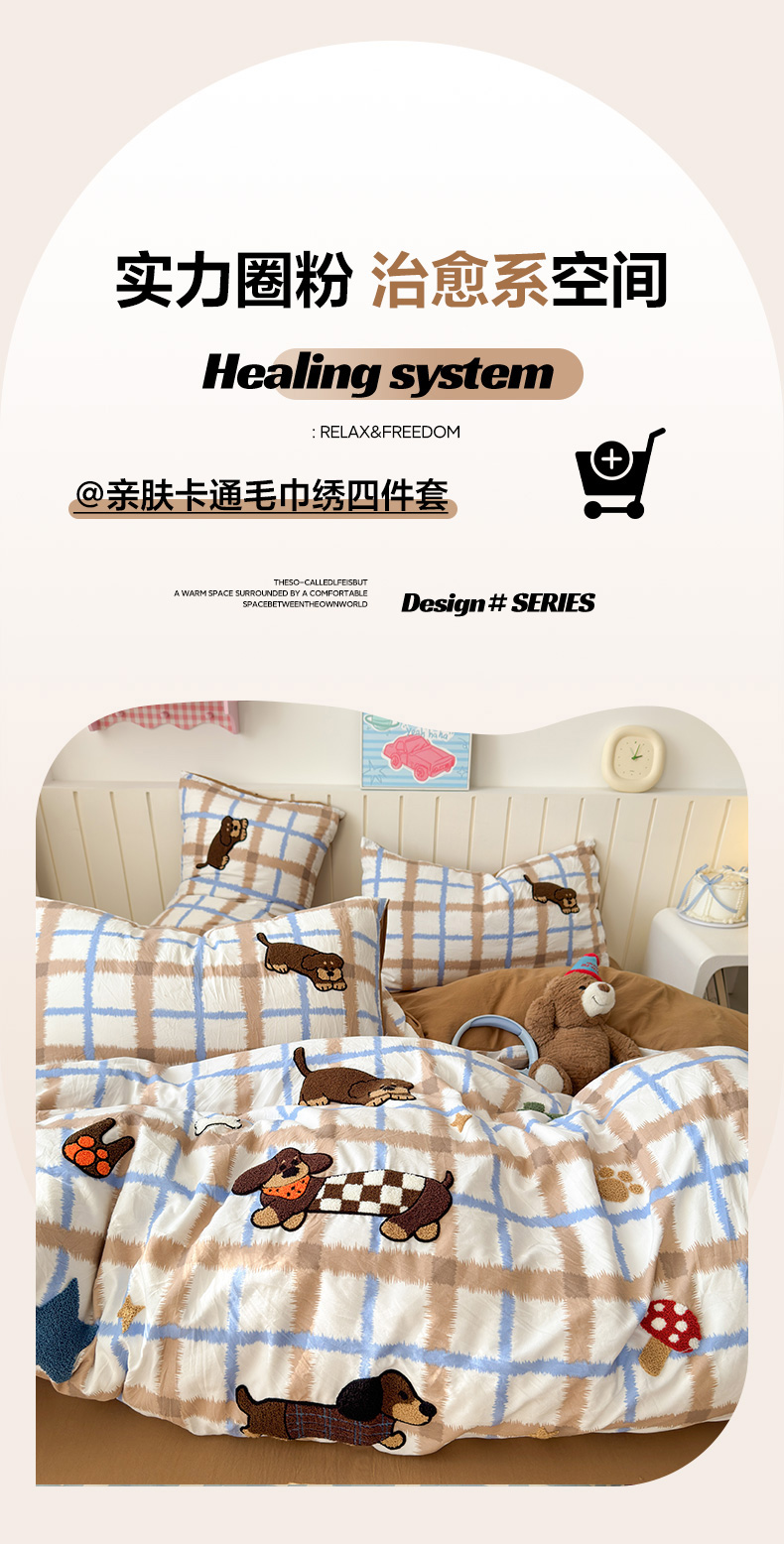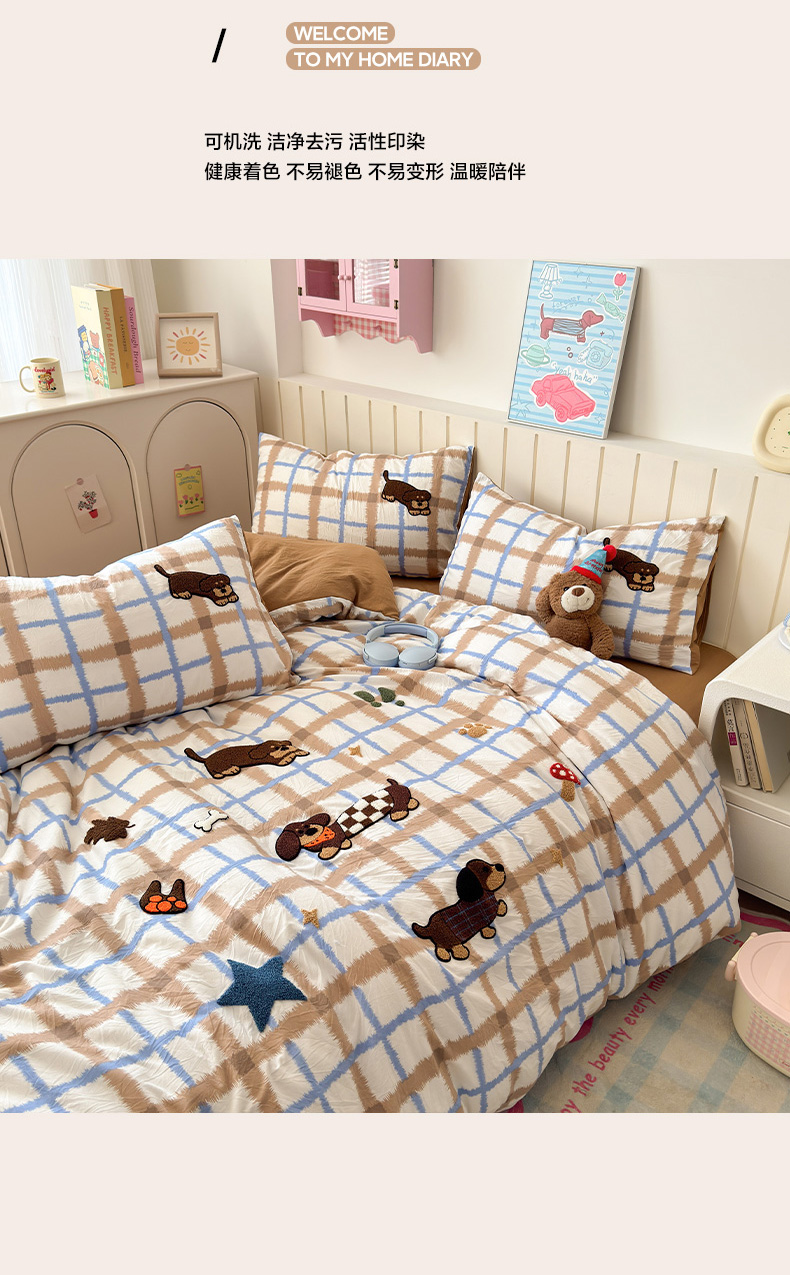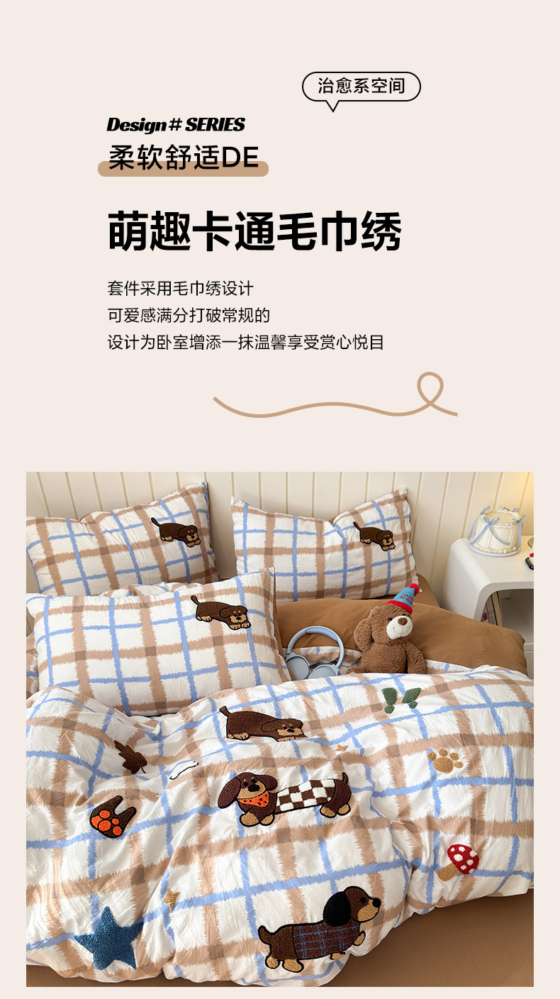 当前位置: 91家纺网 > 商品网购 > 床品套件 > 四件套 > 毛巾绣四件套 > 欣宜家纺 2026新款云朵棉毛巾绣床上四件套卡通被套床单学生宿舍三件套 小狗汪汪