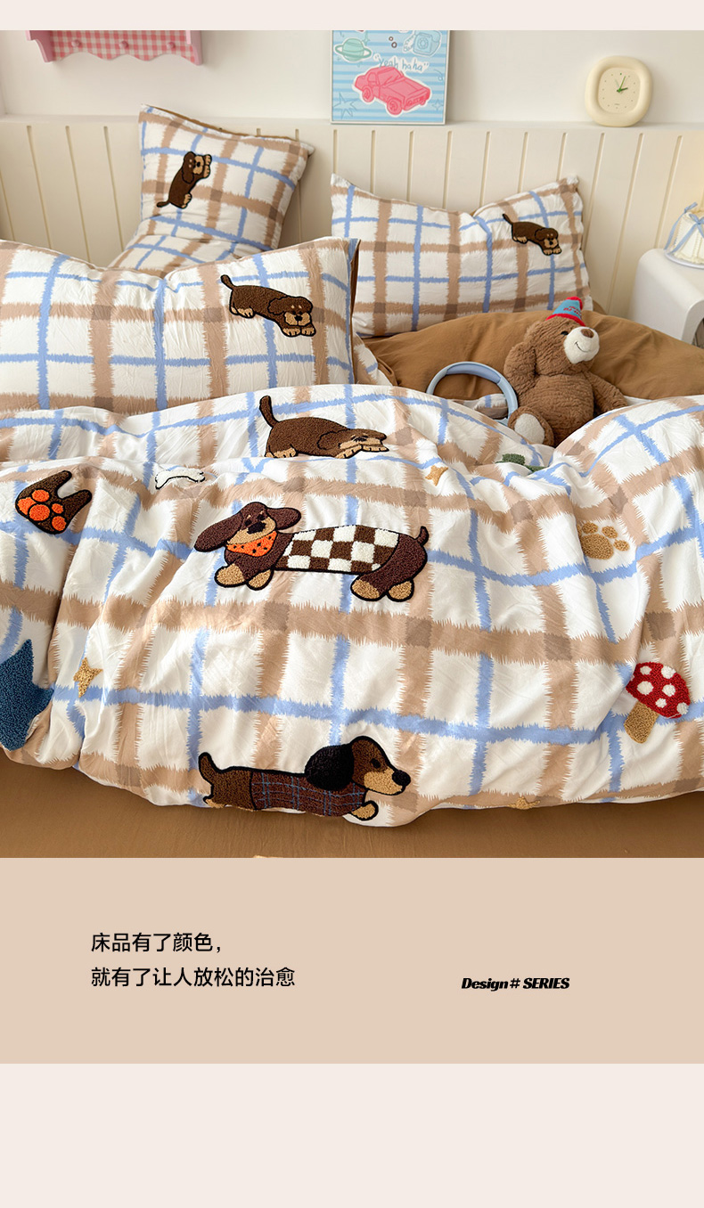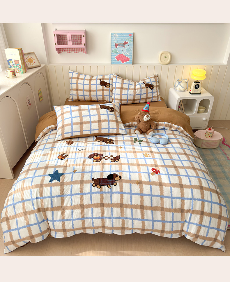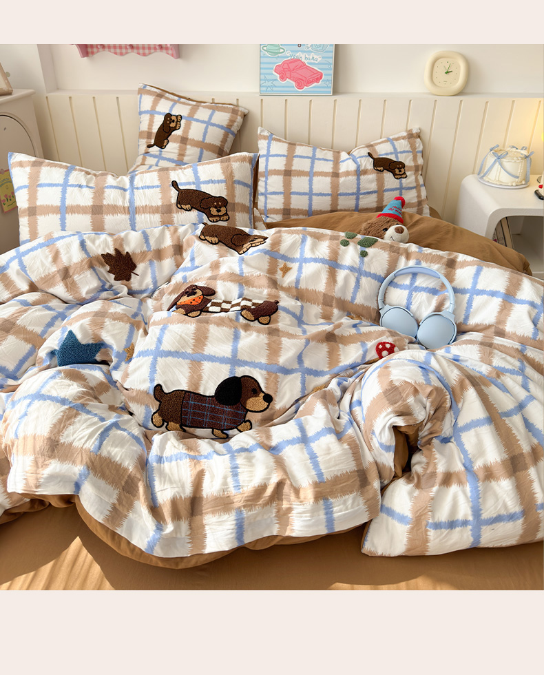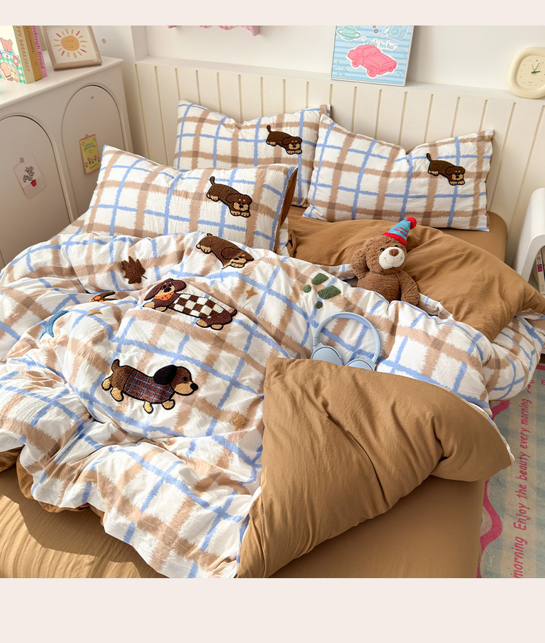 当前位置: 91家纺网 > 商品网购 > 床品套件 > 四件套 > 毛巾绣四件套 > 欣宜家纺 2026新款云朵棉毛巾绣床上四件套卡通被套床单学生宿舍三件套 小狗汪汪