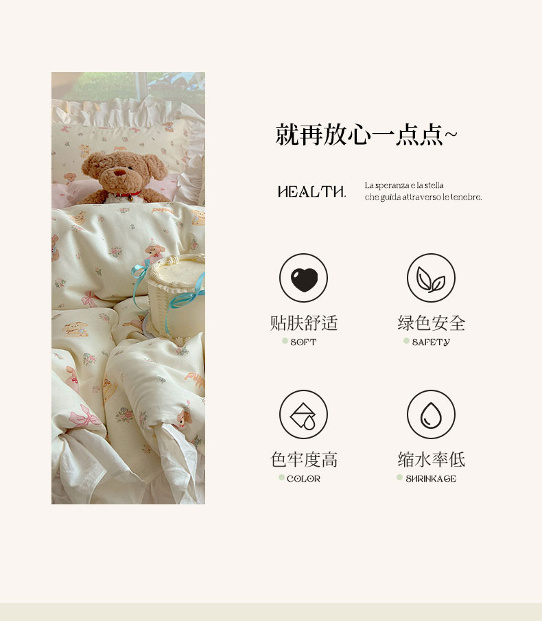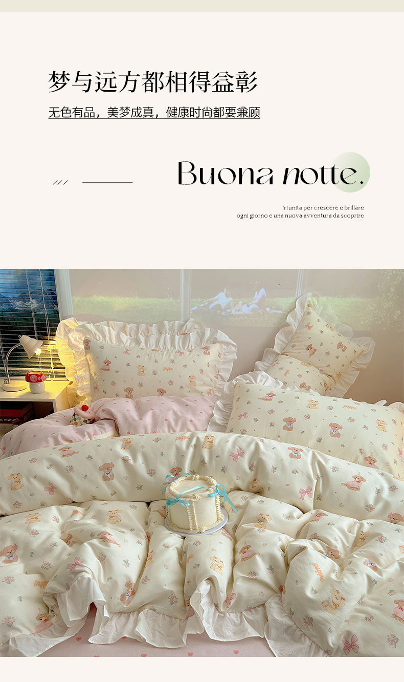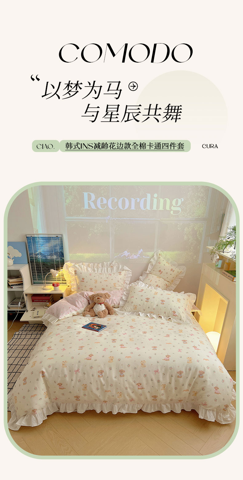 商品名称:(总)六巷胡同 2026新款韩式INS减龄花边款全棉卡通四件套(会员-5元)
