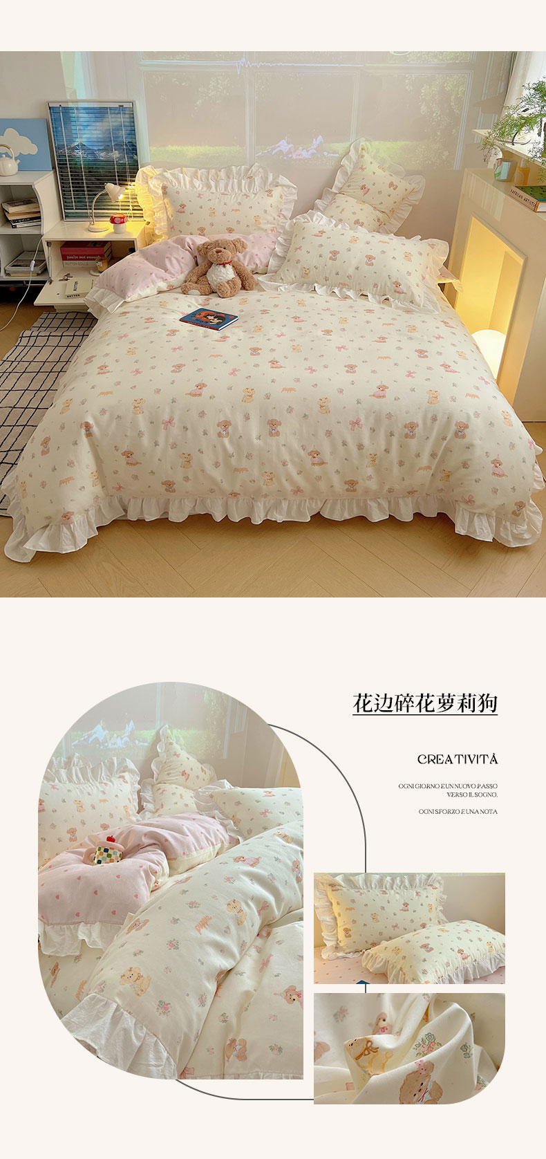 (总)六巷胡同 2025新款韩式INS卡通减龄花边款全棉四件套(第三系),花边波点嘟嘟猫,花边点点面包犬,花边调皮蔷薇狗,花边法棍滑板狗,花边粉格元气猫,花边哈喽泡芙猫,花边蓝格邦尼熊,花边蓝格插画犬,花边泡芙萌趣狗,花边森林音乐会,花边仙人掌粉象,花边熊熊猫咪崽,花边郁金香狗狗