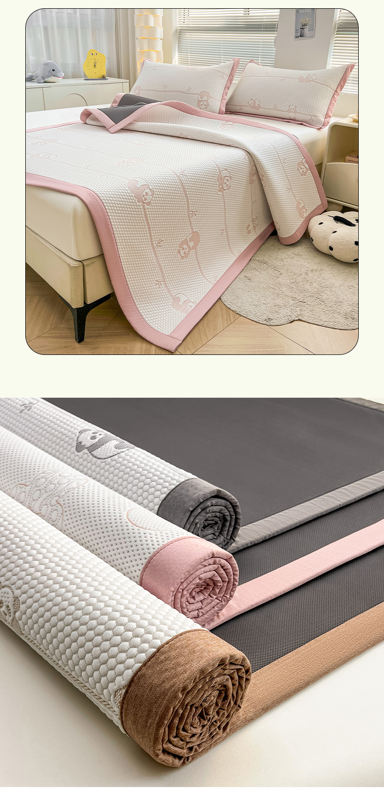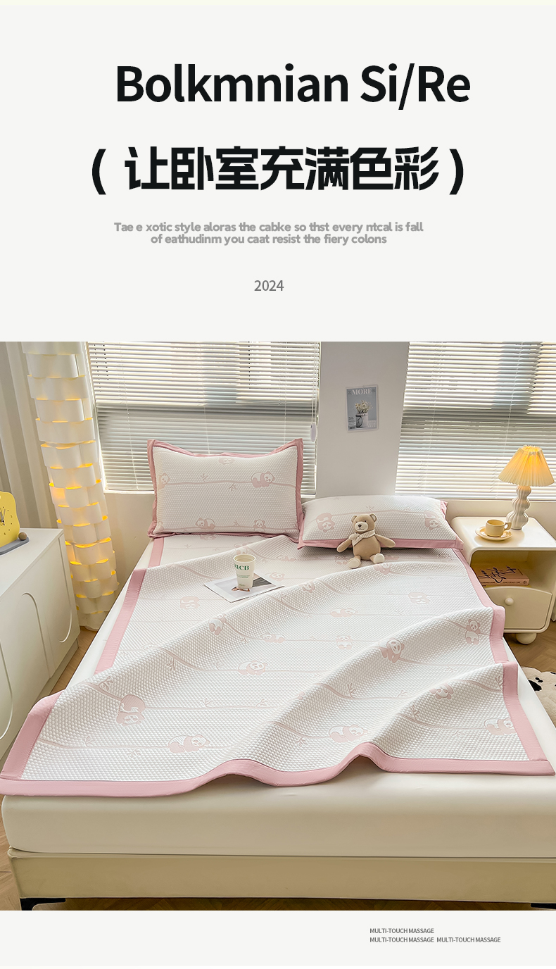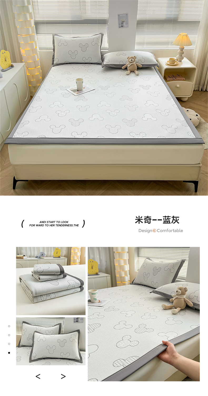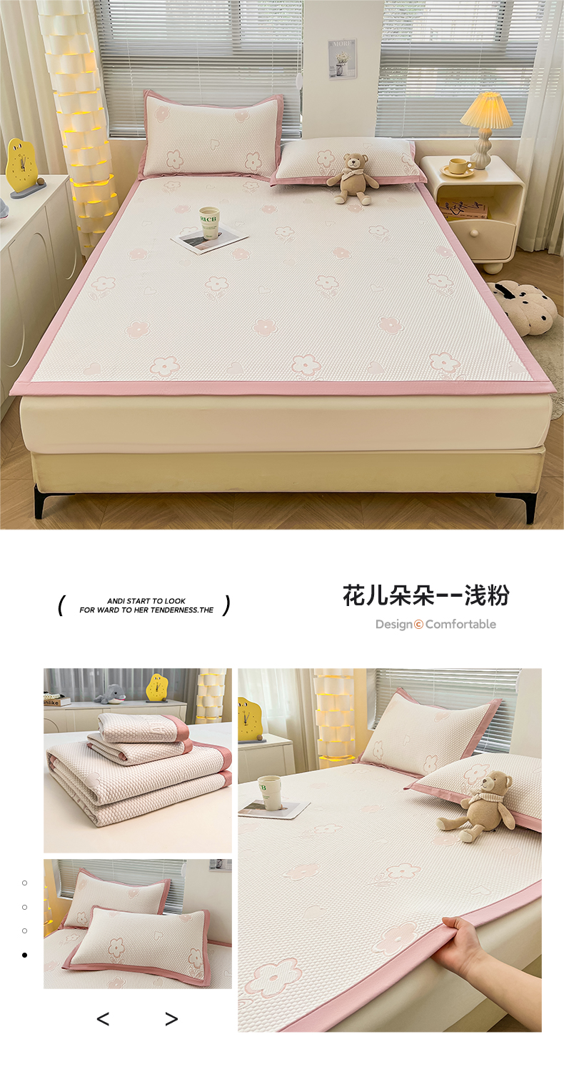 (总)凯罗 2026新款可水洗凉豆豆夏季席子凉席三件套,Hello--熊,爱心小熊--浅粉,敦敦熊--浅粉,敦敦熊--蓝灰,爱心小熊-咖,花儿朵朵--浅粉