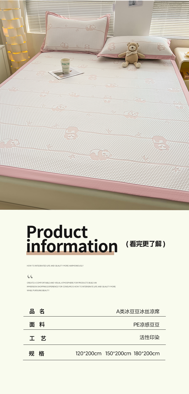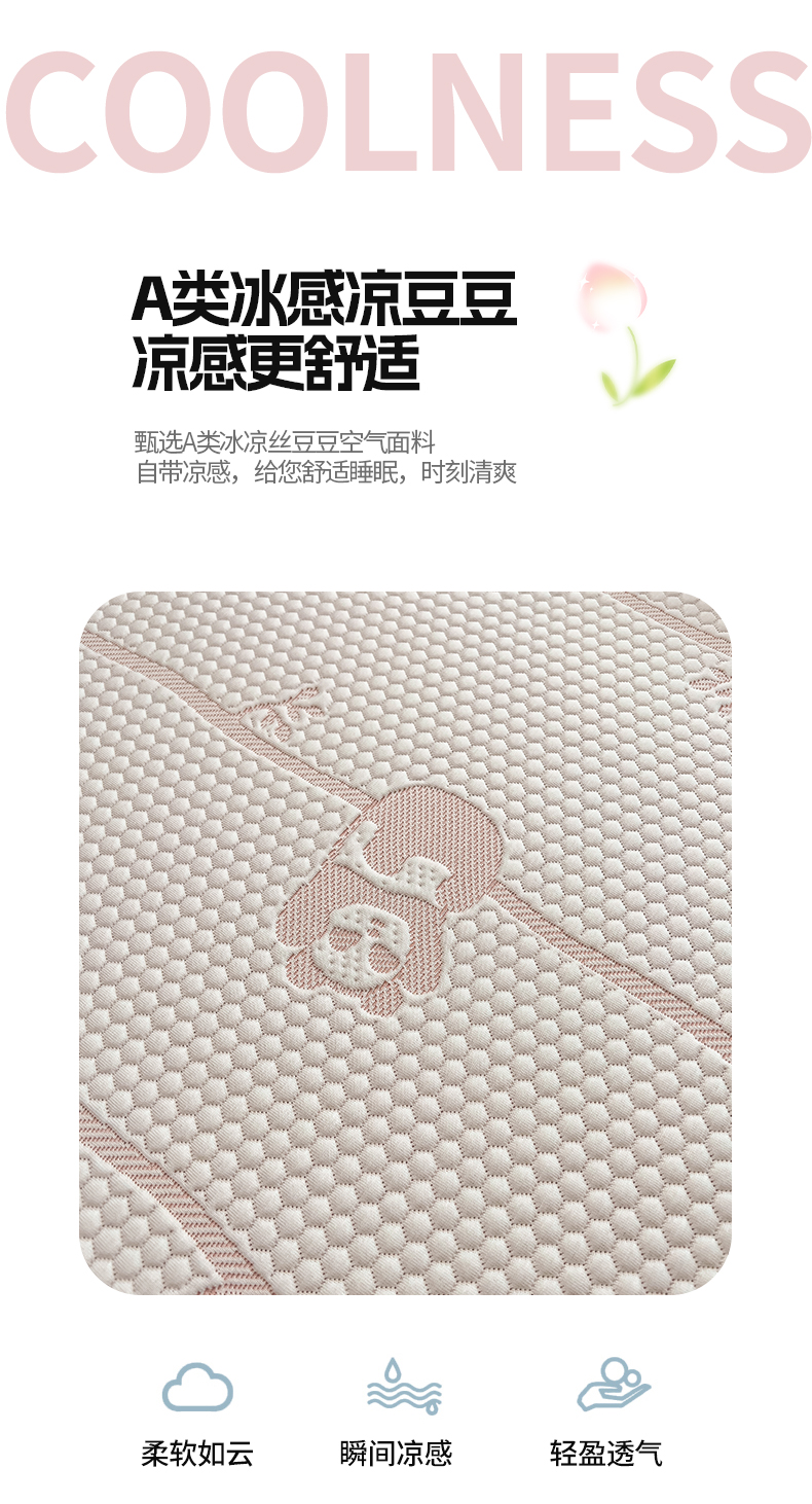 (总)凯罗 2026春夏凉豆豆小红书爆款A类乙纶PE凉豆豆床席款可水洗床席,波点草莓-粉,布丁萌萌熊,小萌狗,小南瓜-桔