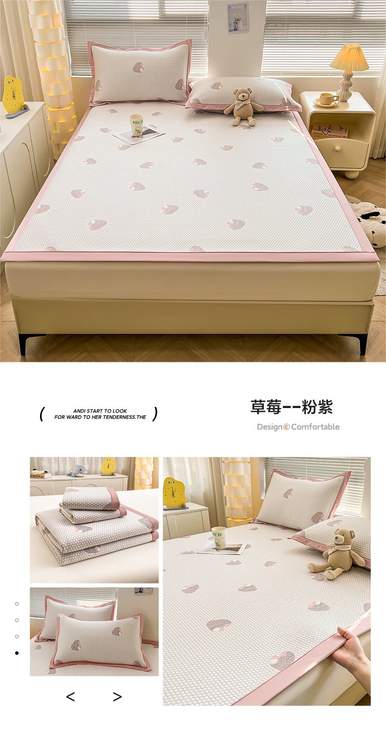 商品名称:凯罗 2026新款可水洗凉豆豆夏季席子凉席三件套 敦敦熊--浅粉