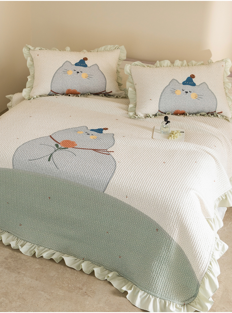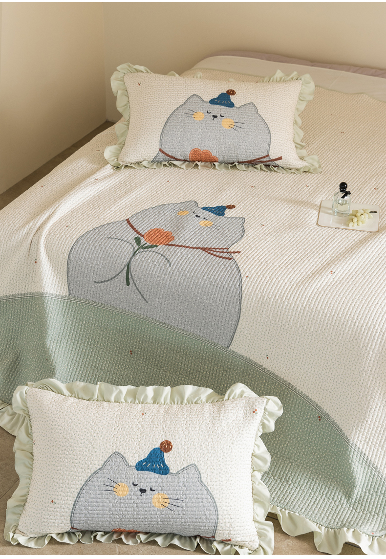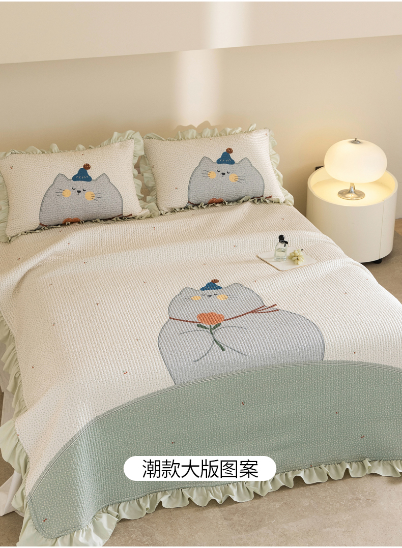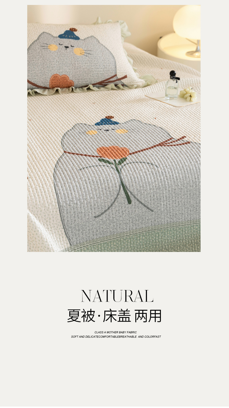 商品名称:立奥被业 2026新品古法水洗棉夏被仿棉大版床盖防棉大版夏被 喵星绿