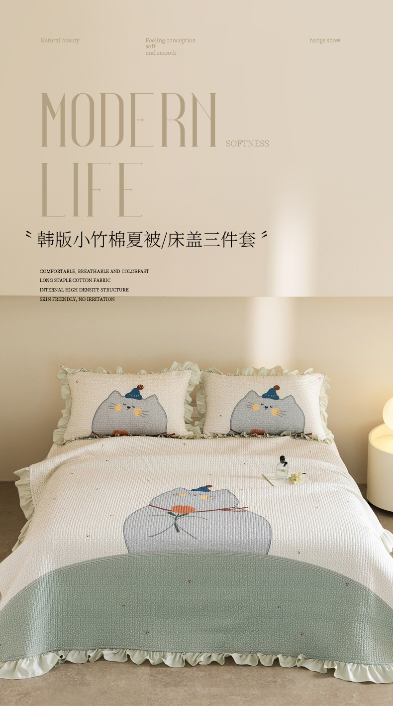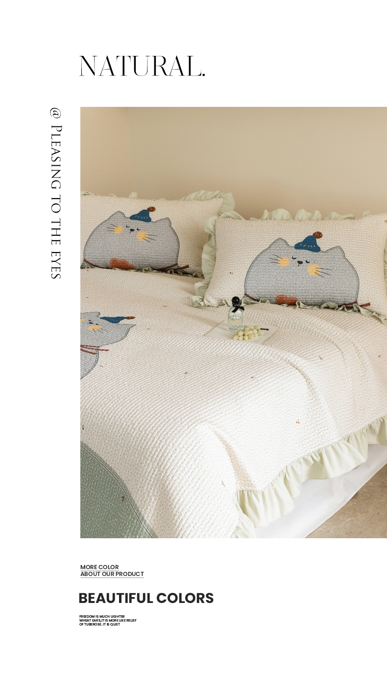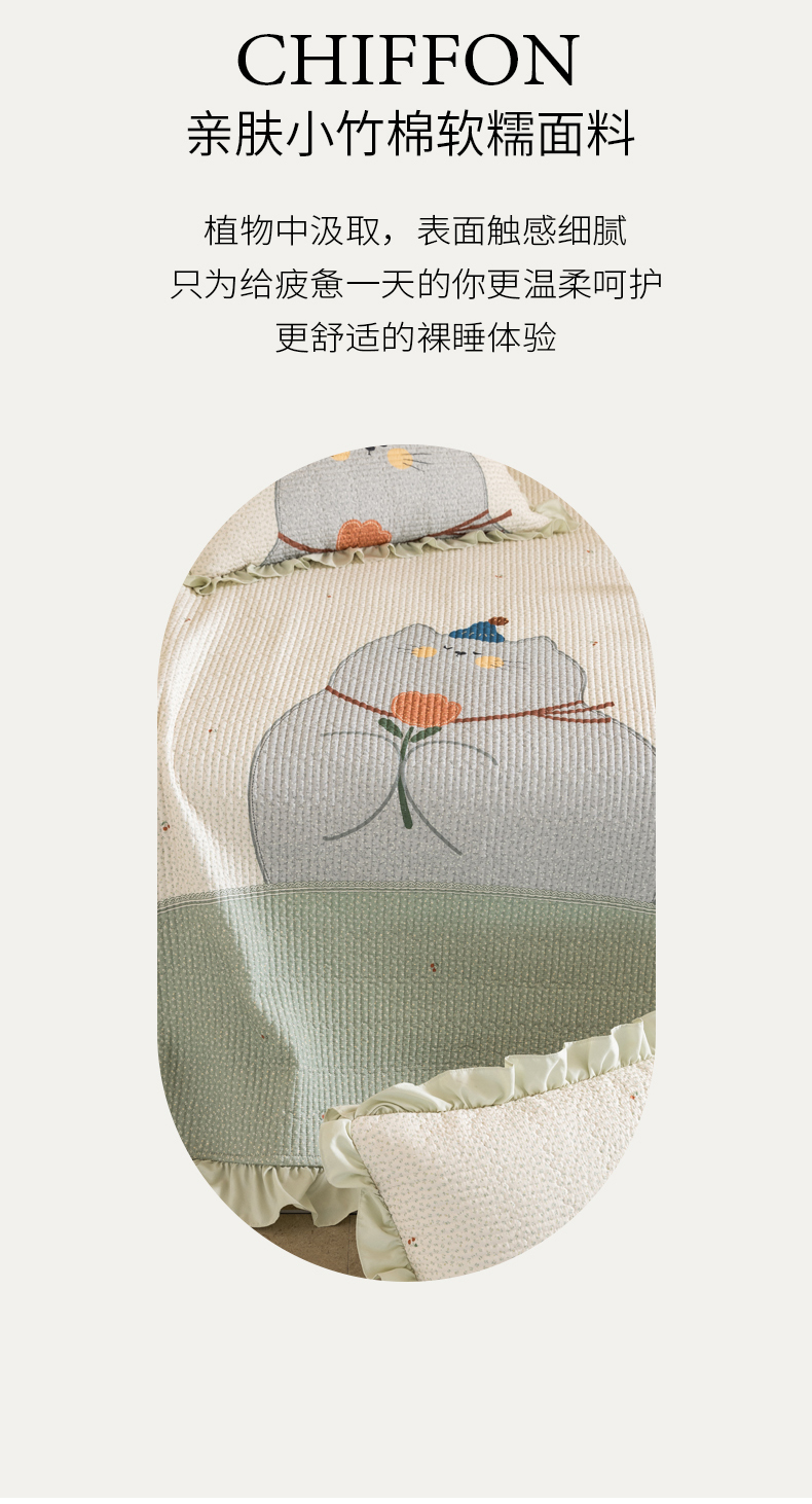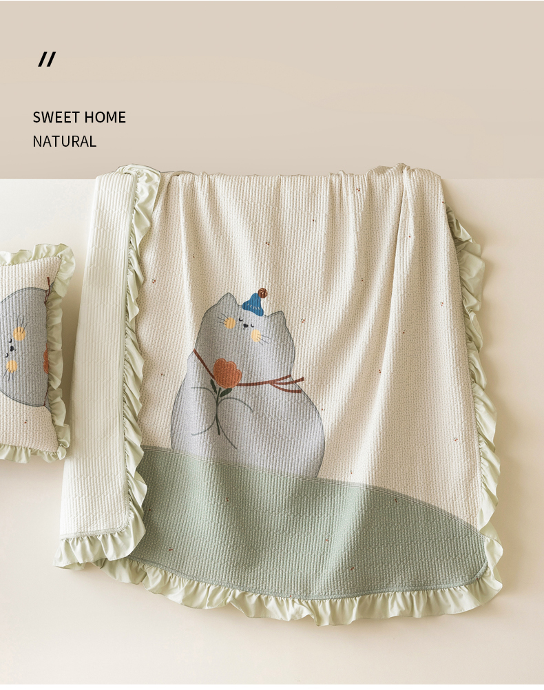 商品名称:立奥被业 2026新品古法水洗棉夏被仿棉大版床盖防棉大版夏被 喵星绿