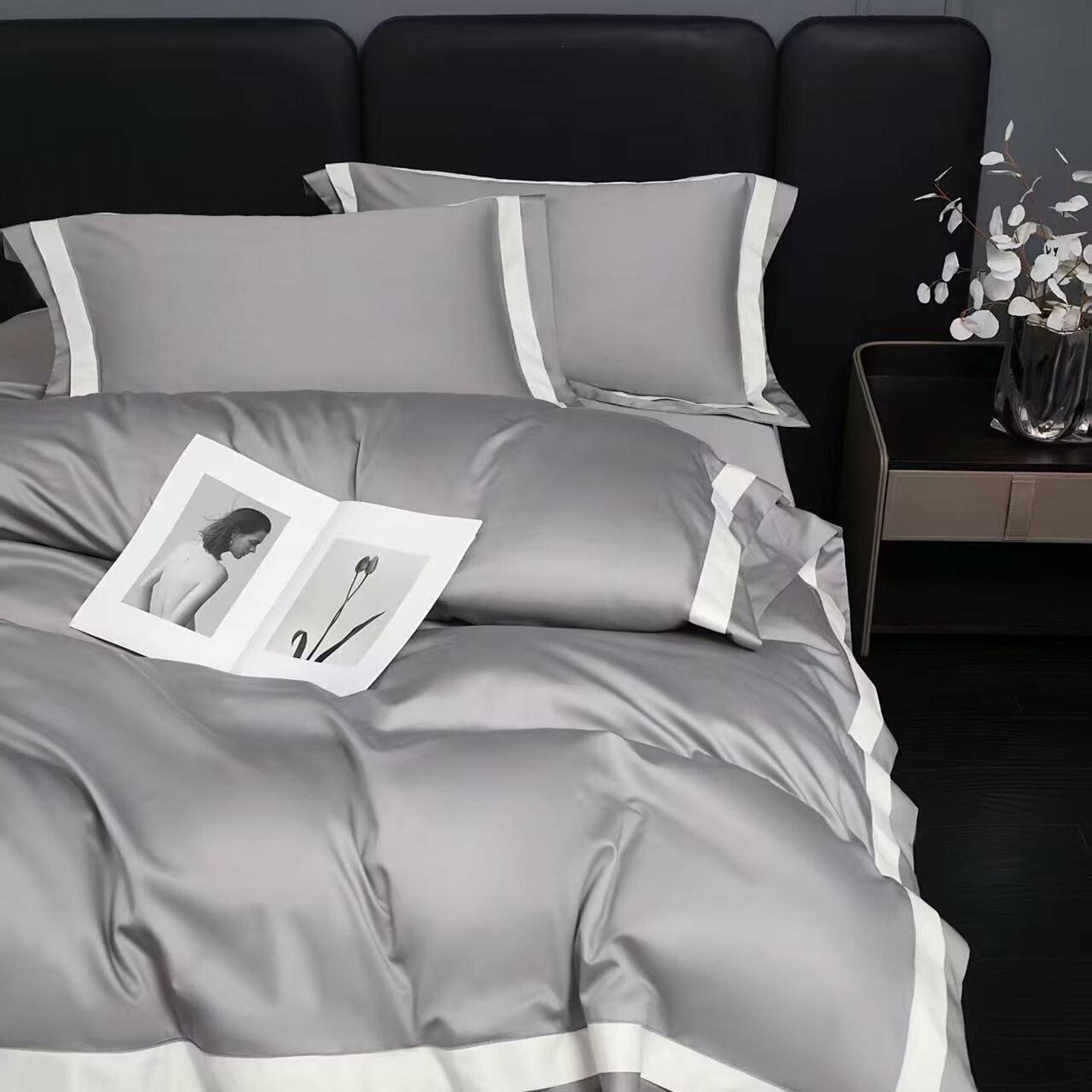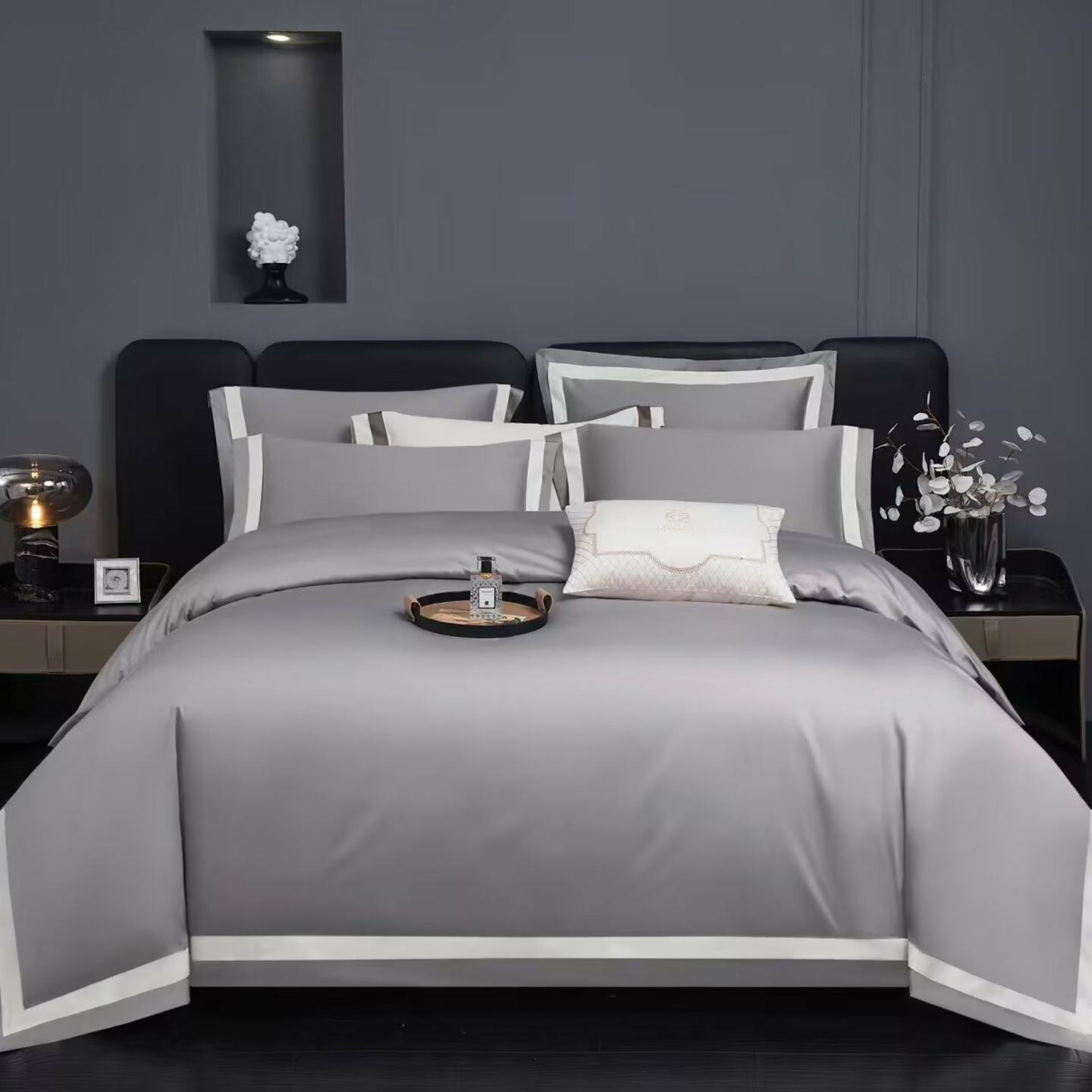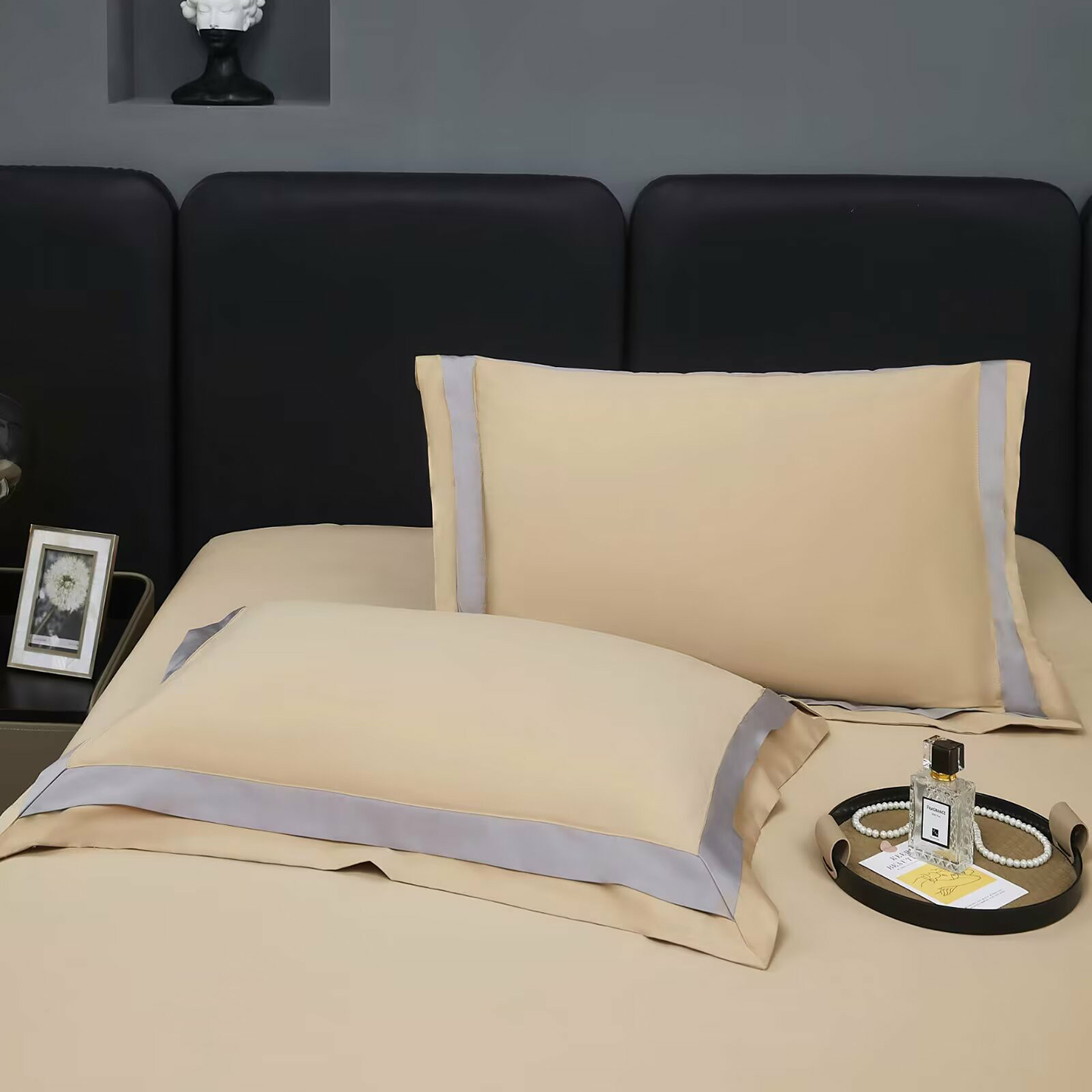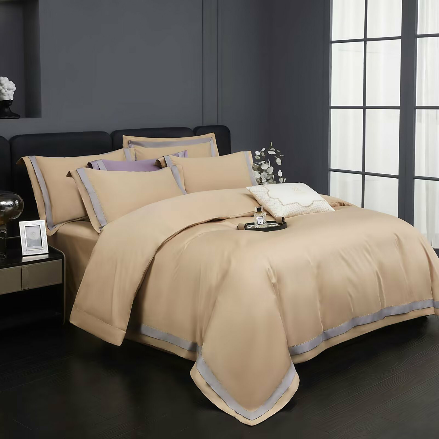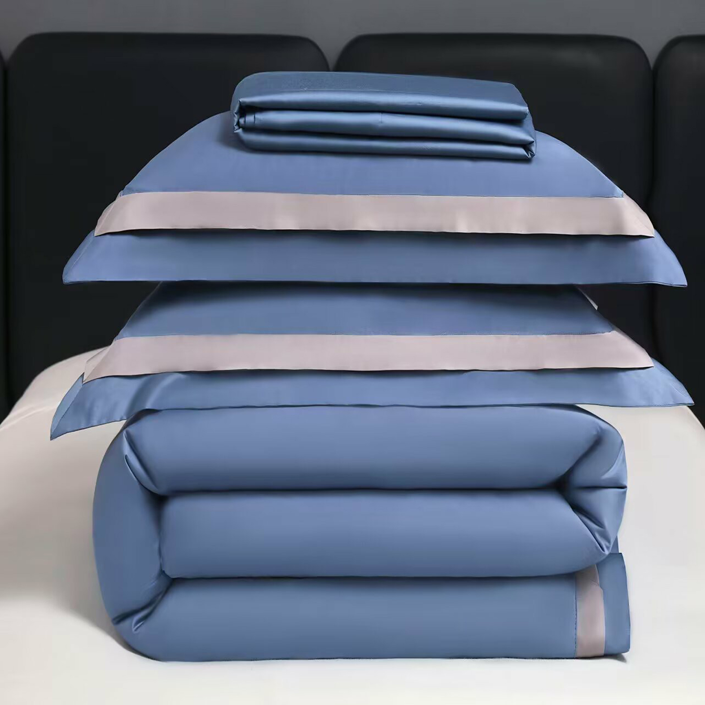 商品名称:沐珩家纺 2026新款双拼角拼色100s长绒棉工艺四件套-凯伦 凯伦-玫瑰木粉
