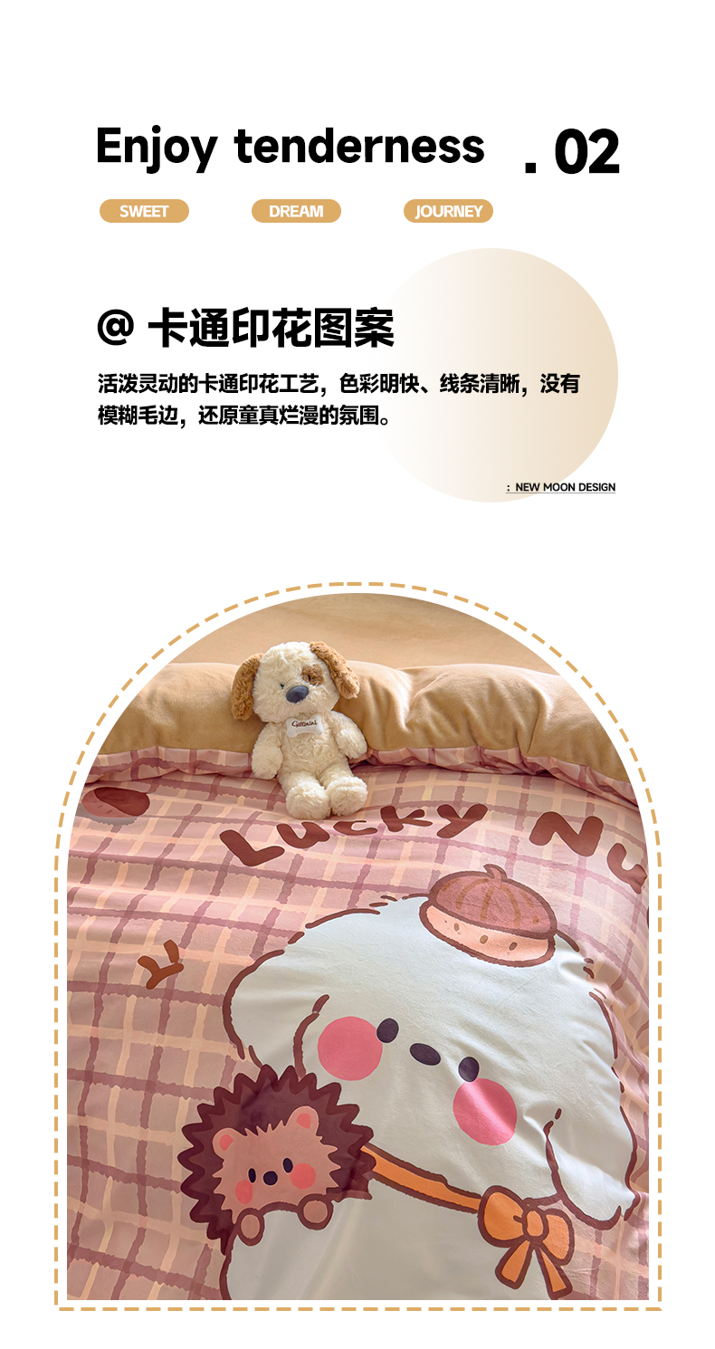 沐珩家纺 2026新款牛奶绒水晶绒卡通大版四件套 小狗努比-咖