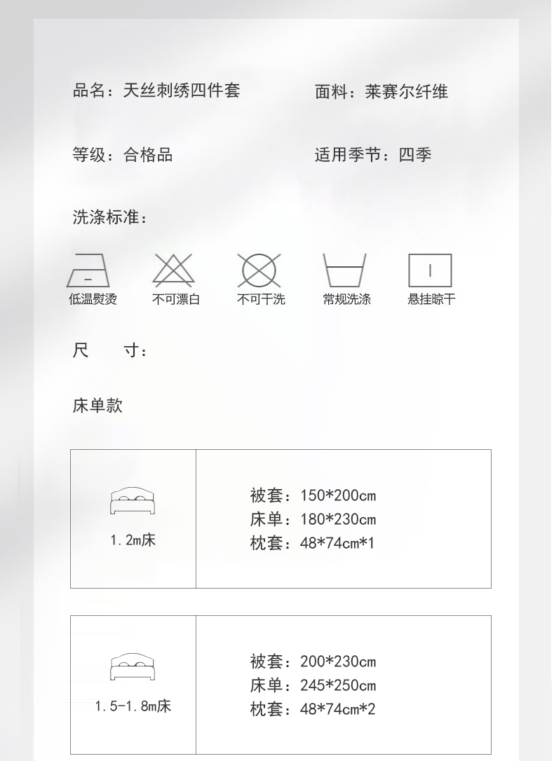【床笠款】1.8四件套-被套200x230 | ¥125.00 |