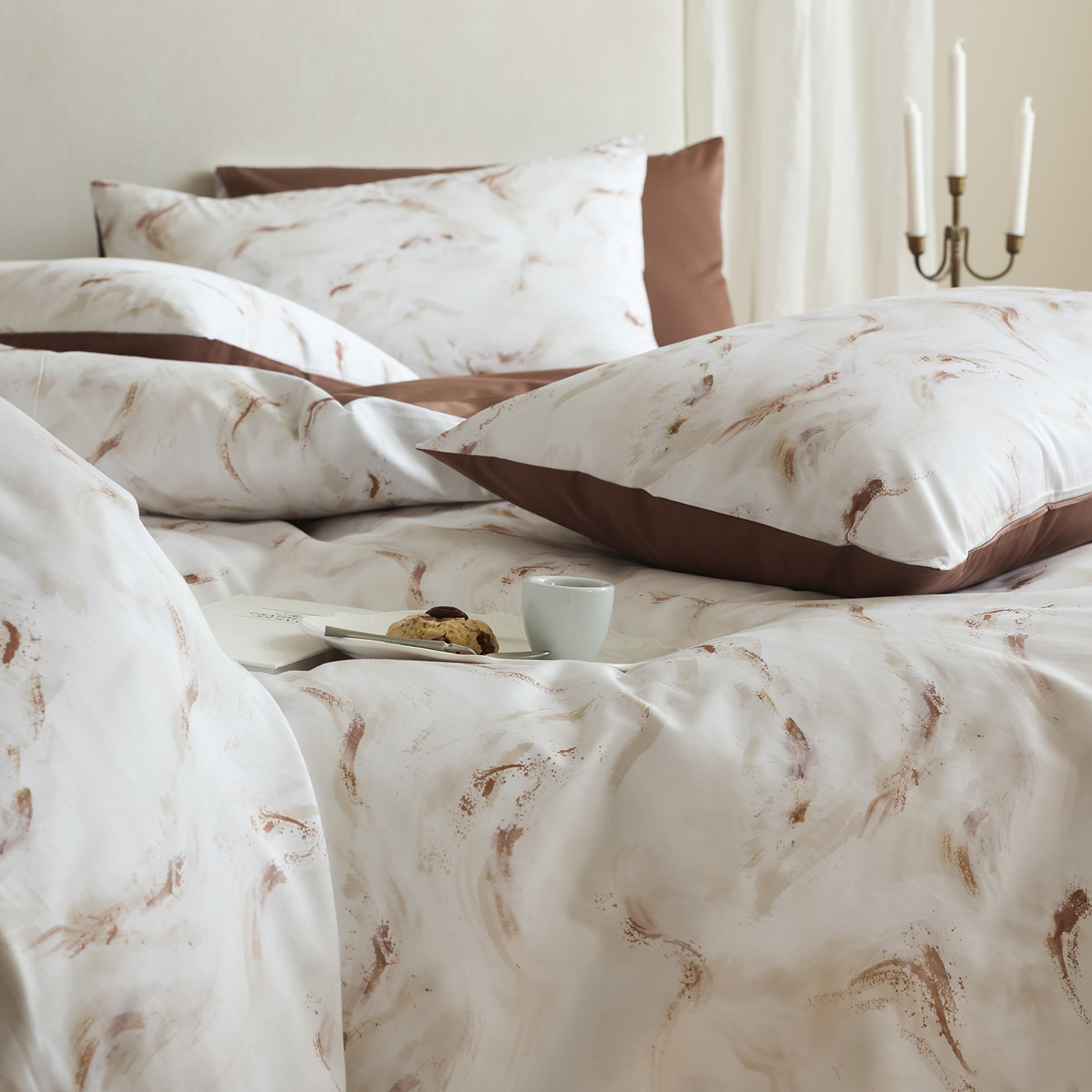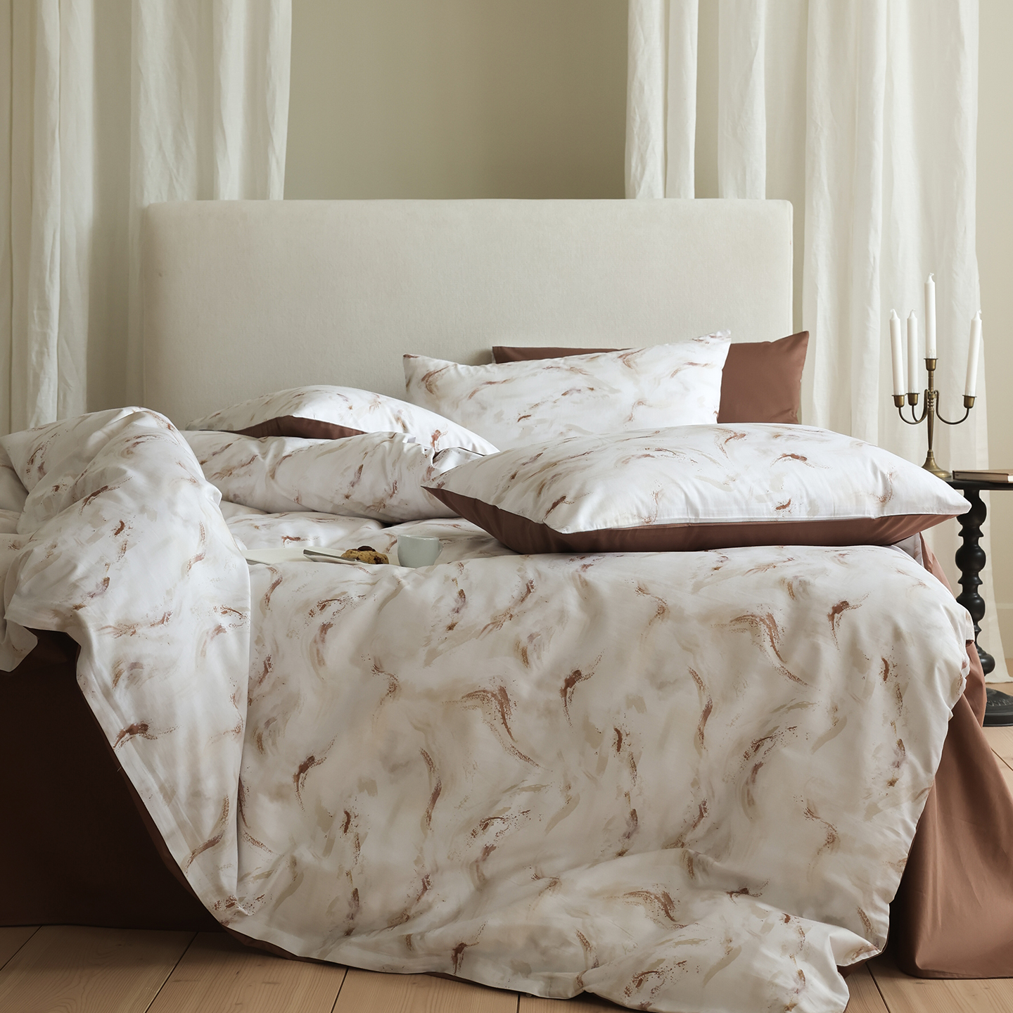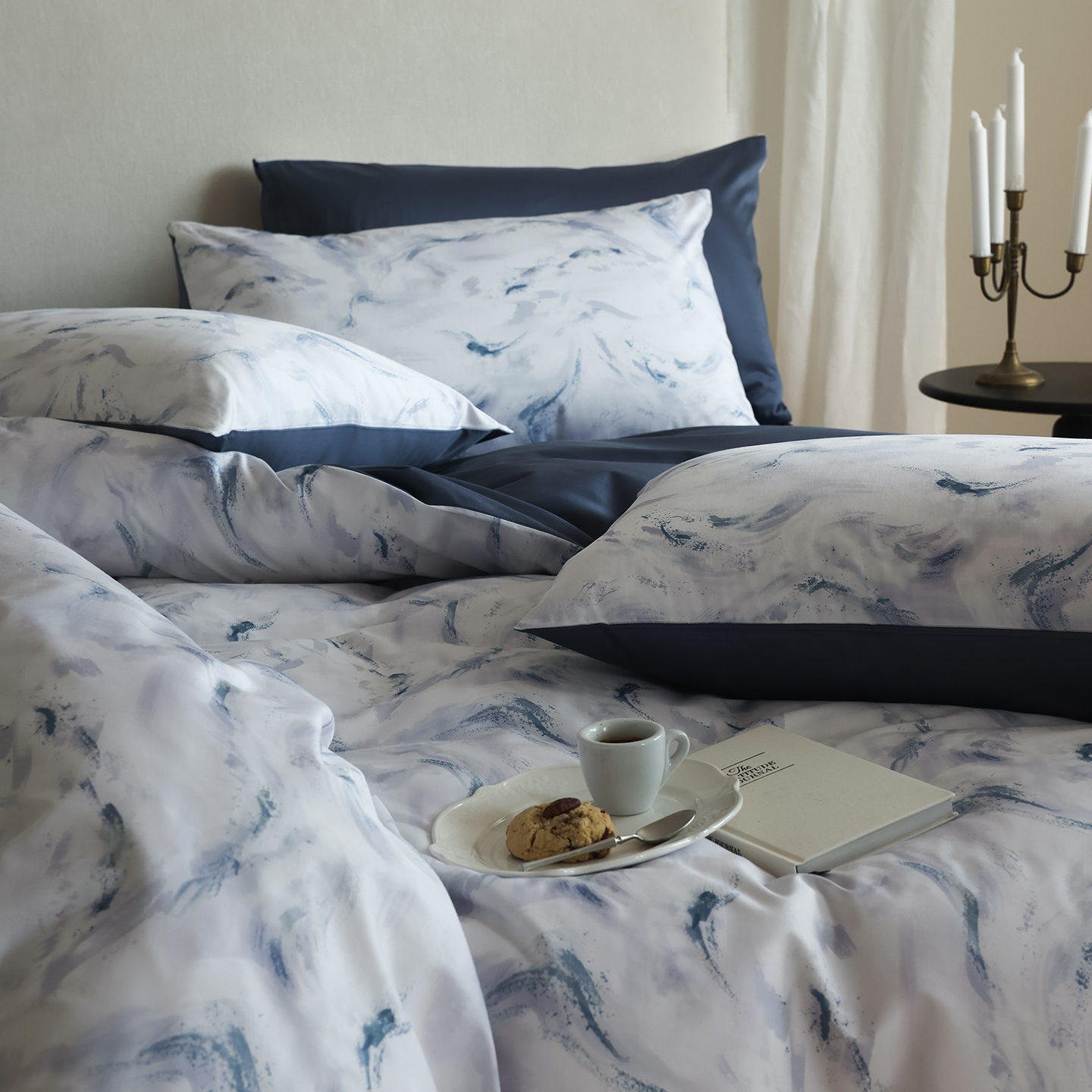 (总)ONE TWO ONE 121 【会员-20】【控价商品】【提供买家秀】【专版花型】2026新款100s长绒棉全棉床上用品数码印花四件套-听潮絮语