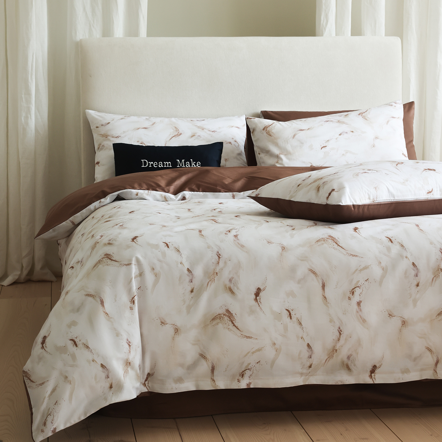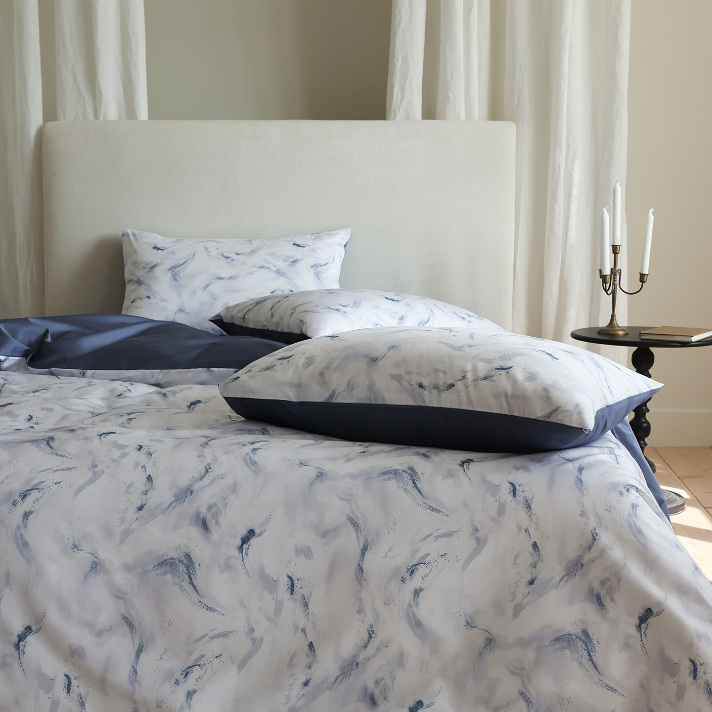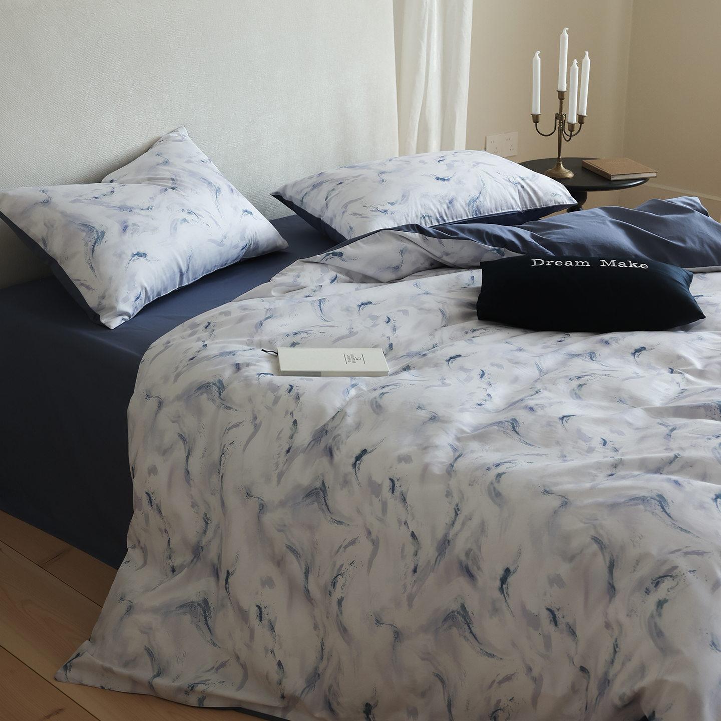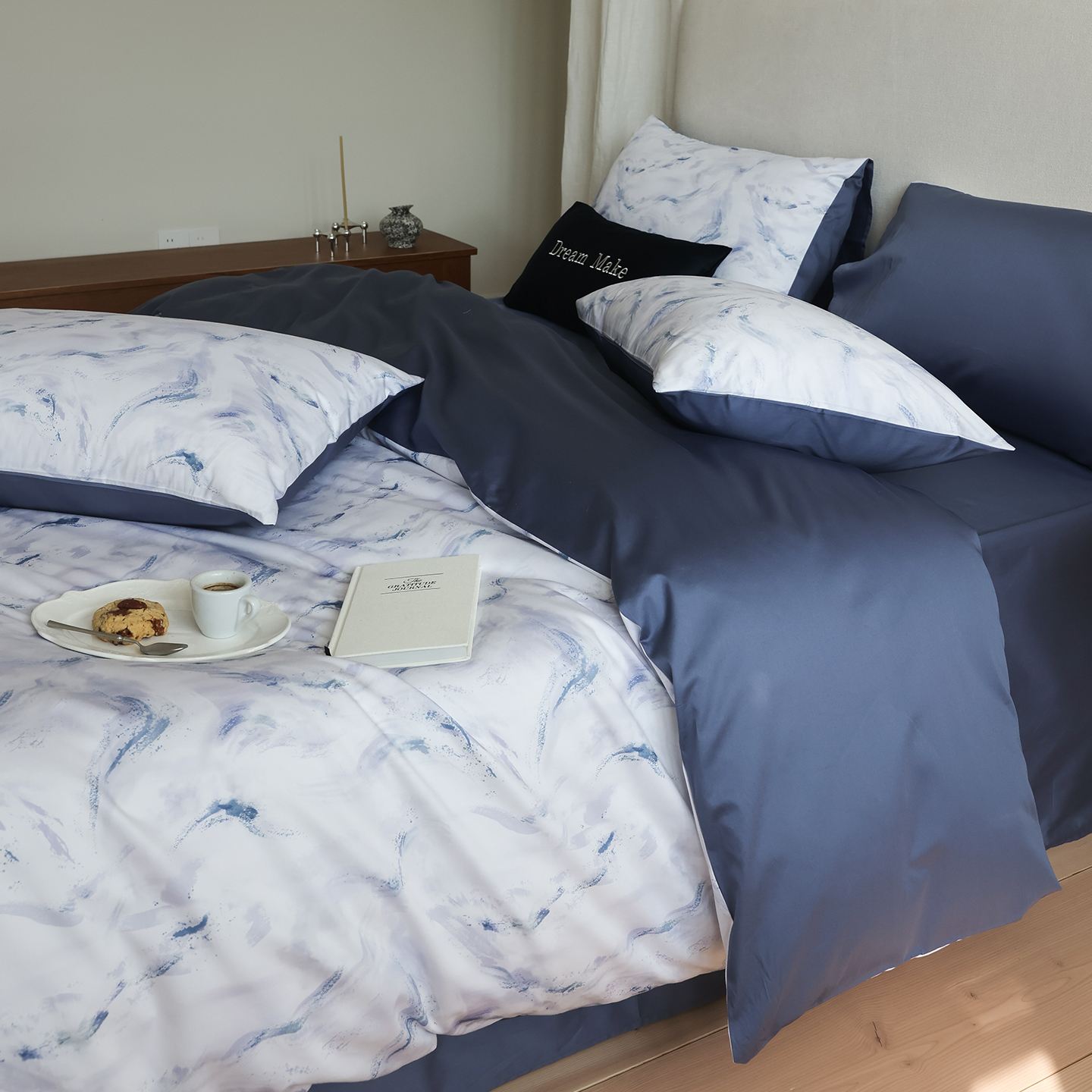 商品名称:(总)ONE TWO ONE 121 【会员-20】【控价商品】【提供买家秀】【专版花型】2026新款100s长绒棉全棉床上用品数码印花四件套-听潮絮语