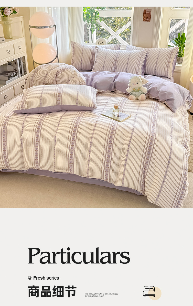 当前位置: 91家纺网 > 商品网购 > 床品套件 > 四件套 > 全棉普通四件套 > 灰鲸 2026新款A类全棉纯棉色织提花四件套 木槿-紫