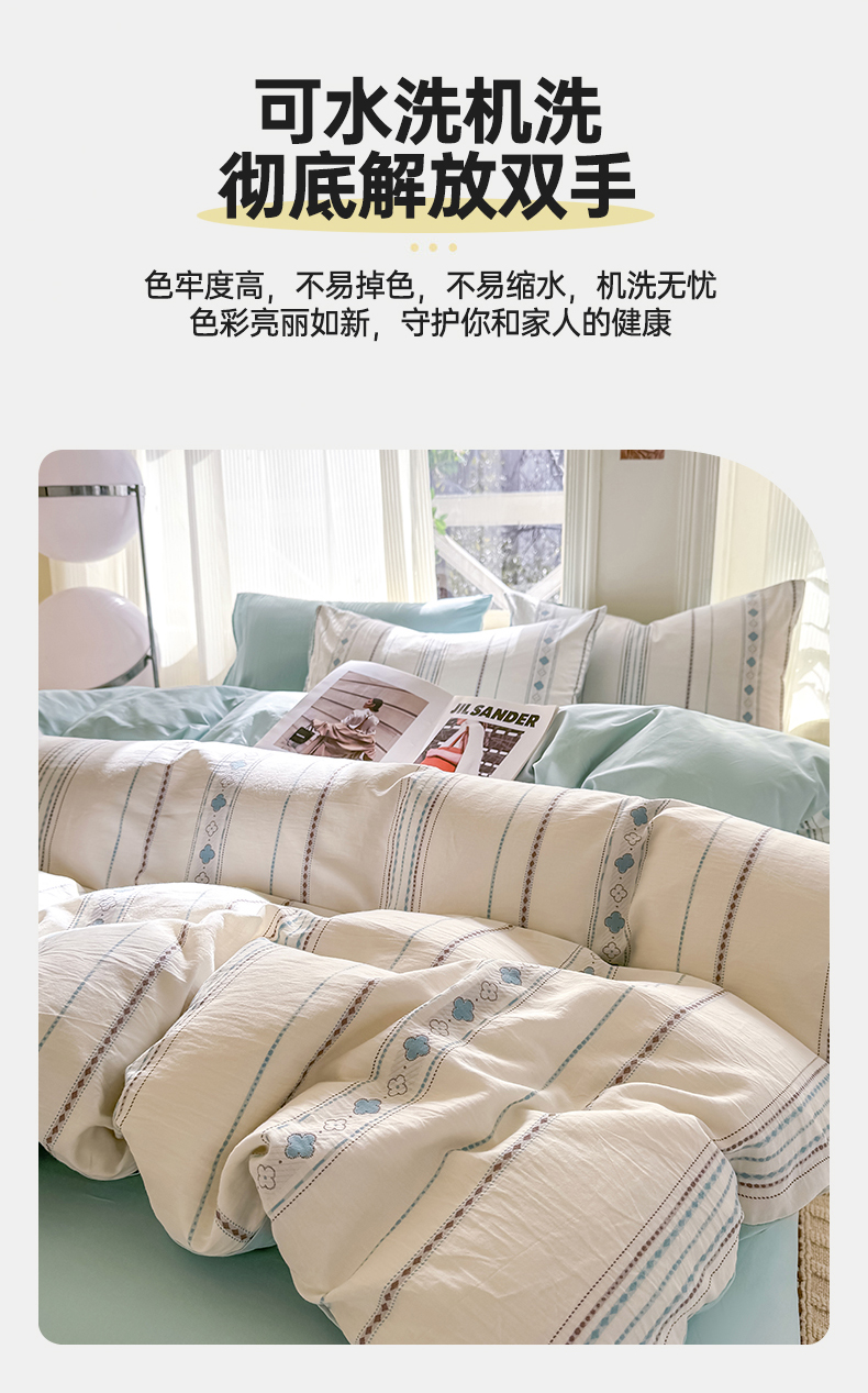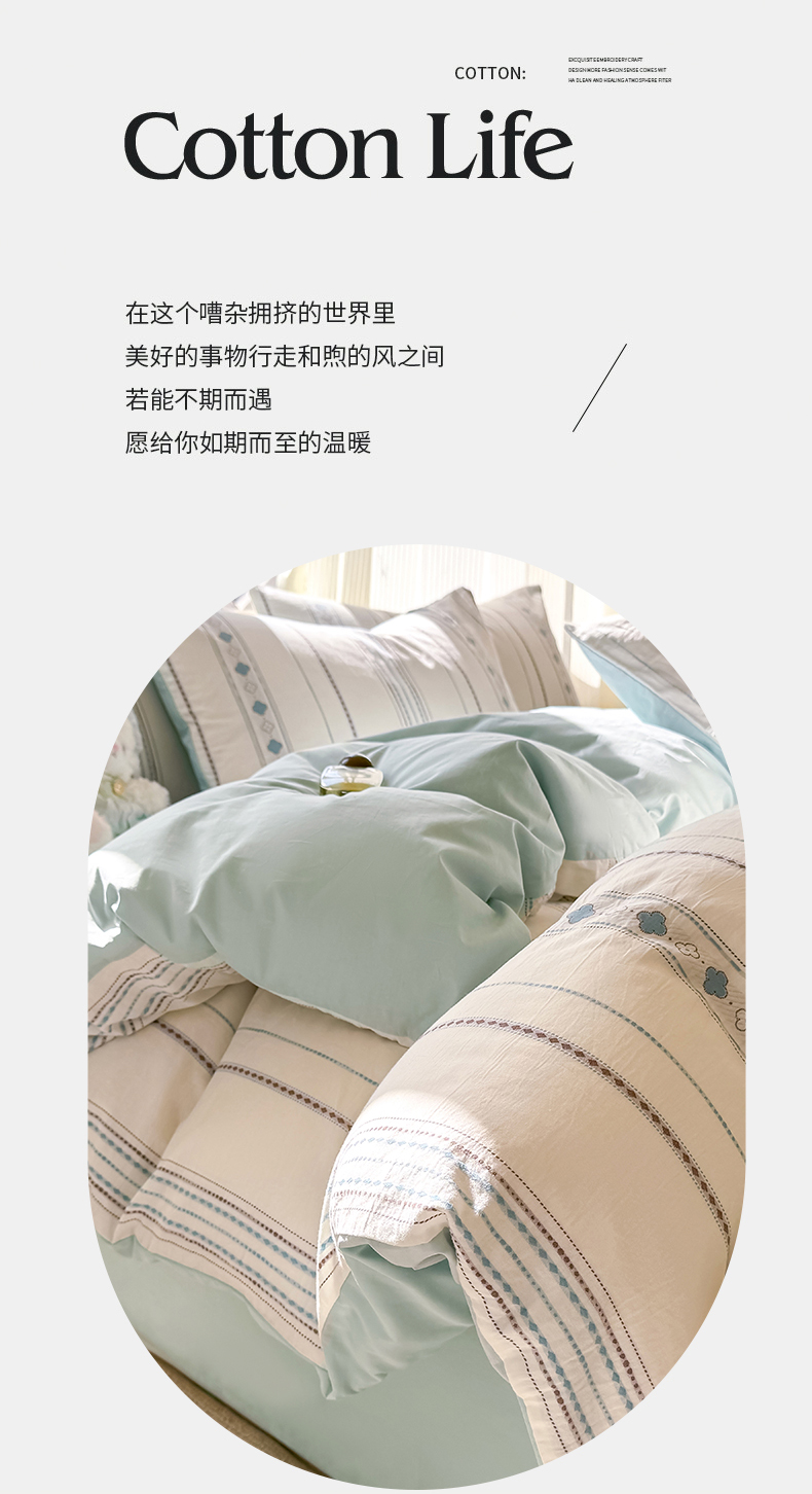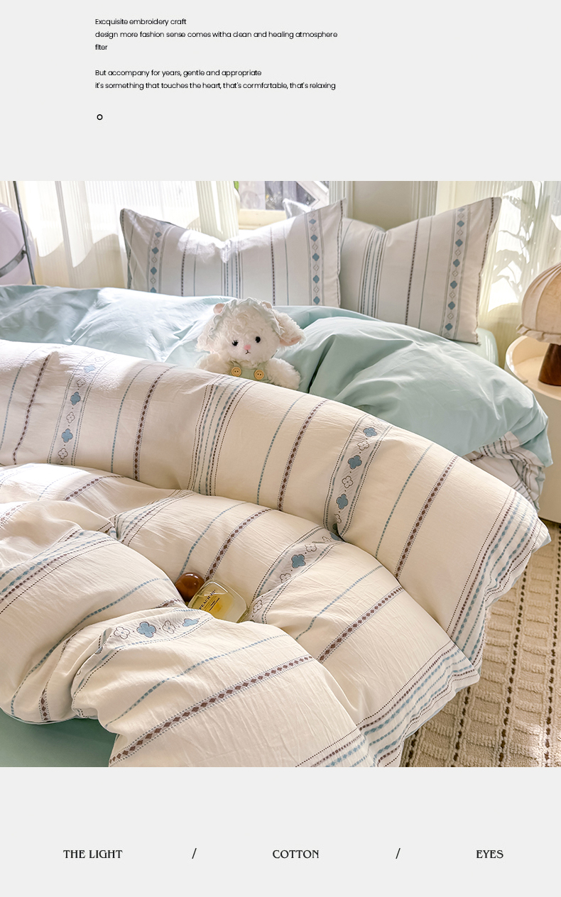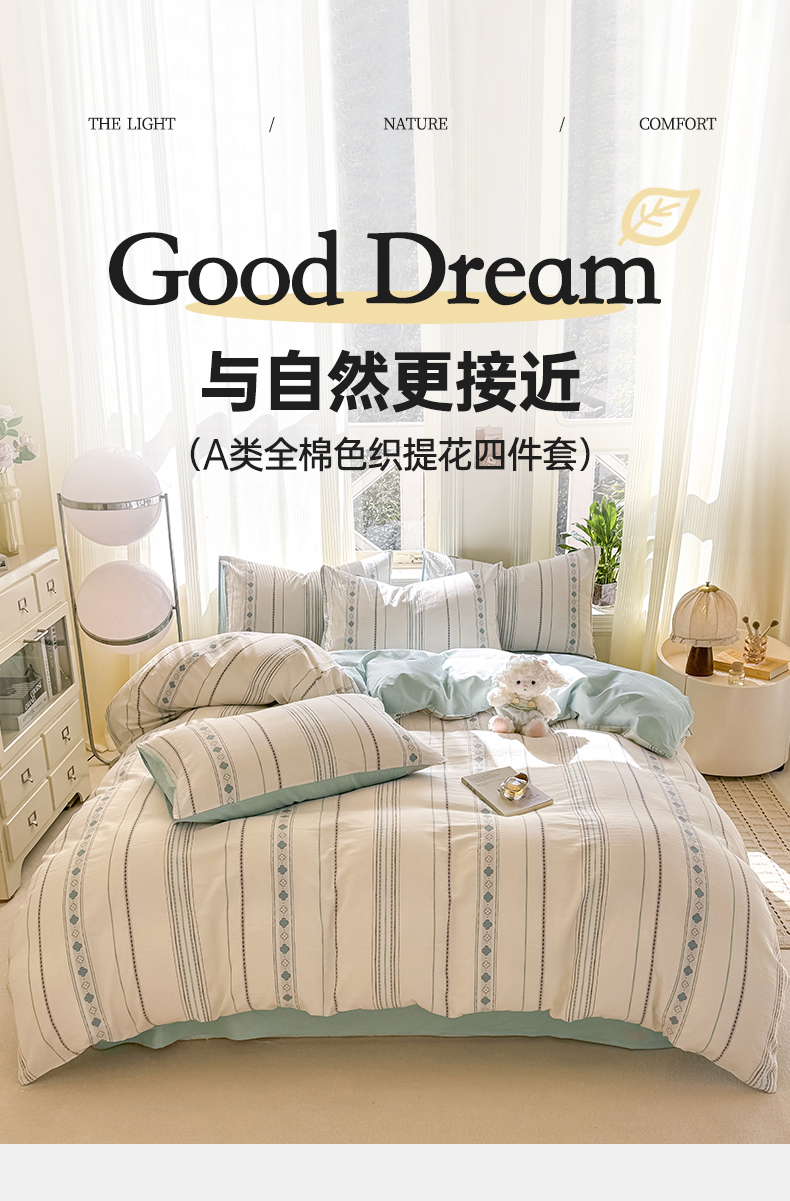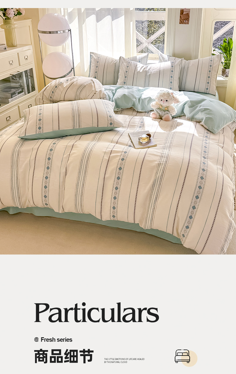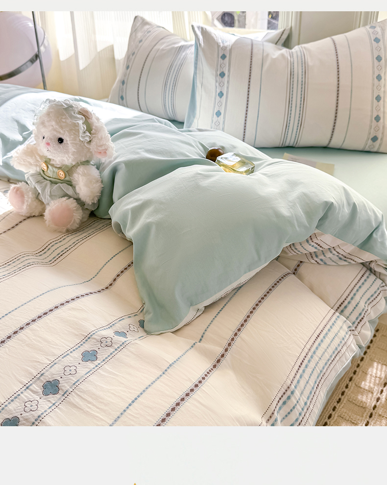 当前位置: 91家纺网 > 商品网购 > 床品套件 > 四件套 > 全棉普通四件套 > 灰鲸 2026新款A类全棉纯棉色织提花四件套 四叶星语-蓝