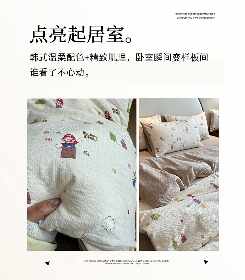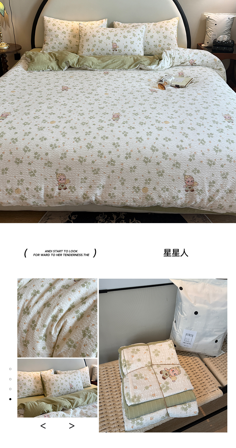 (总)美丽坊 2026新款爆款韩版泡泡纱四件套,爱丽丝,草莓啵啵,超级玛丽,杜若,朵蔓,哈基米,海派甜心,花间鹿,花汀,米亚,小蓝盯,星星人,组合图(仅供展示不可下单)