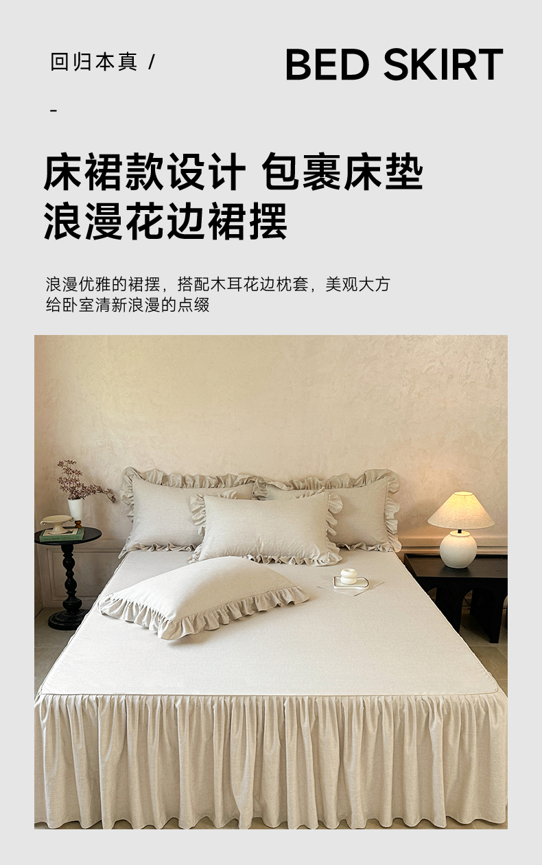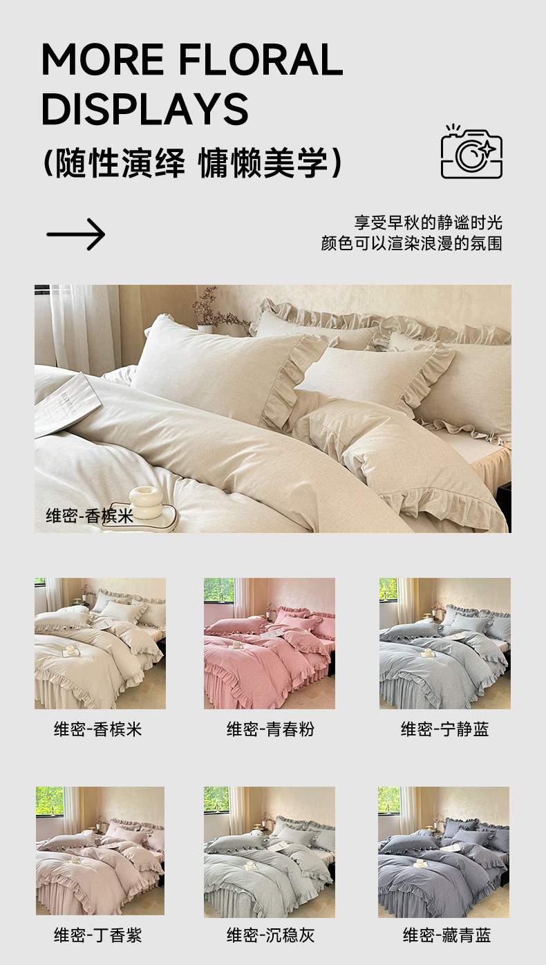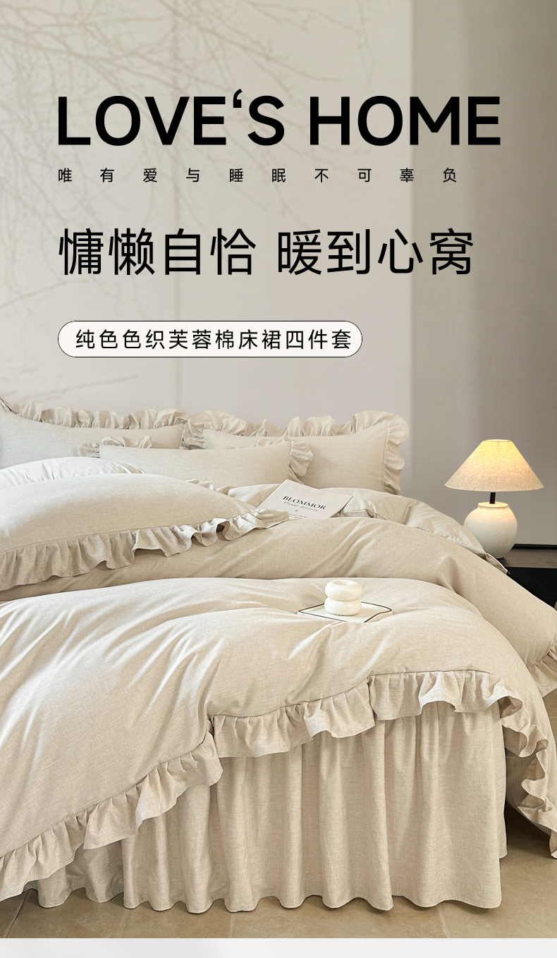 商品名称:(总)忘忧草 2026新款纯色色织芙蓉棉床裙四件套-维密系列