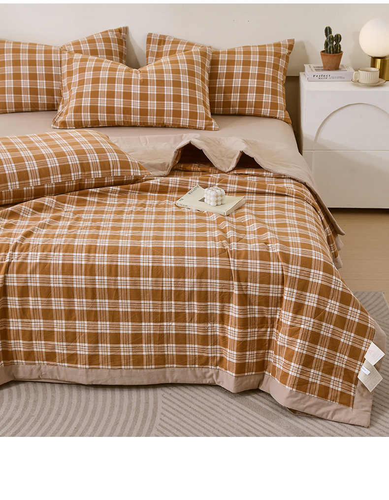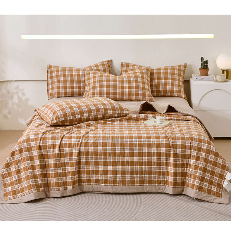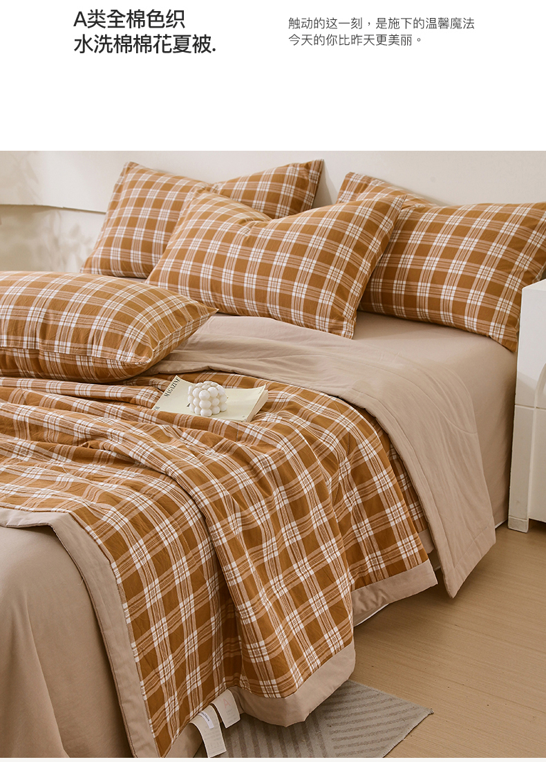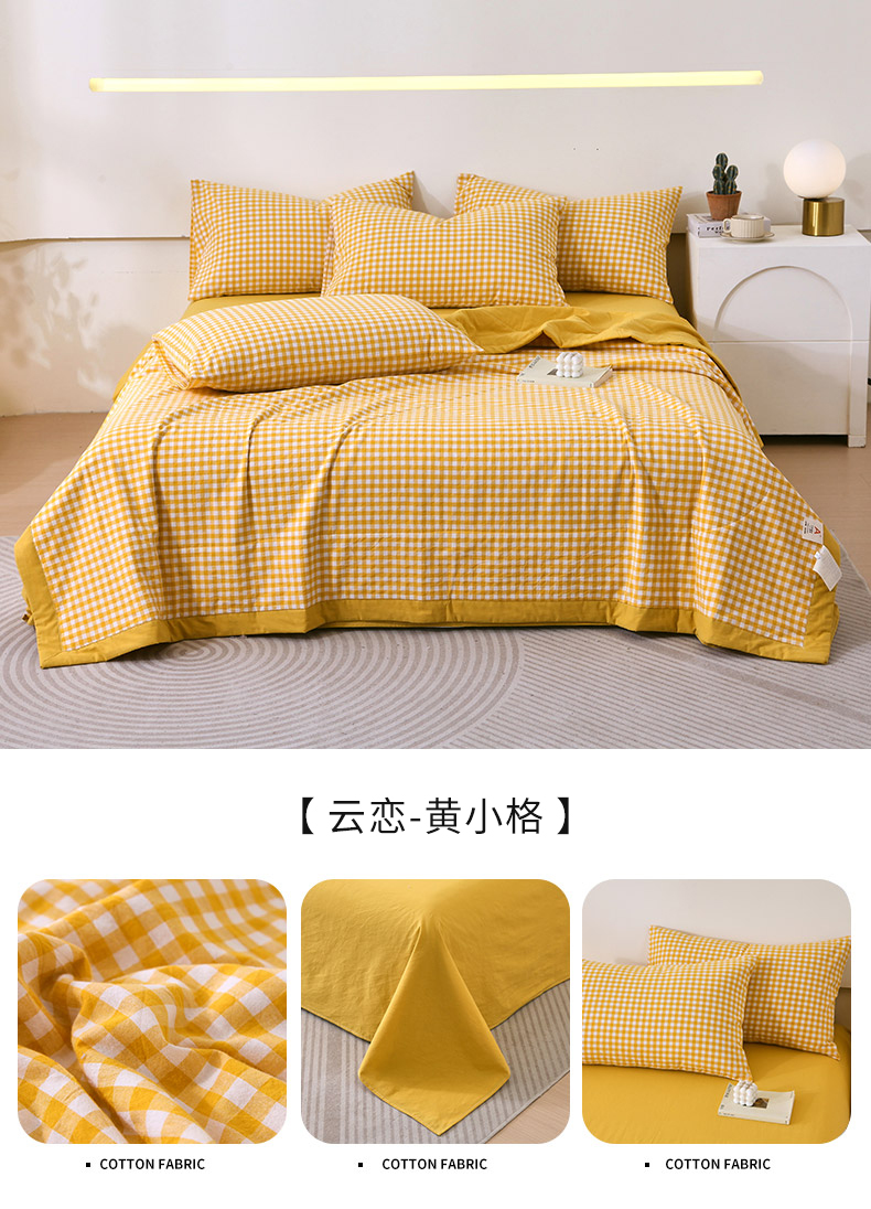 • 91家纺网 家纺一手货源 找家纺 春皖家纺 2026新款全棉色织宽边棉花夏被-云恋 云恋-黄调格