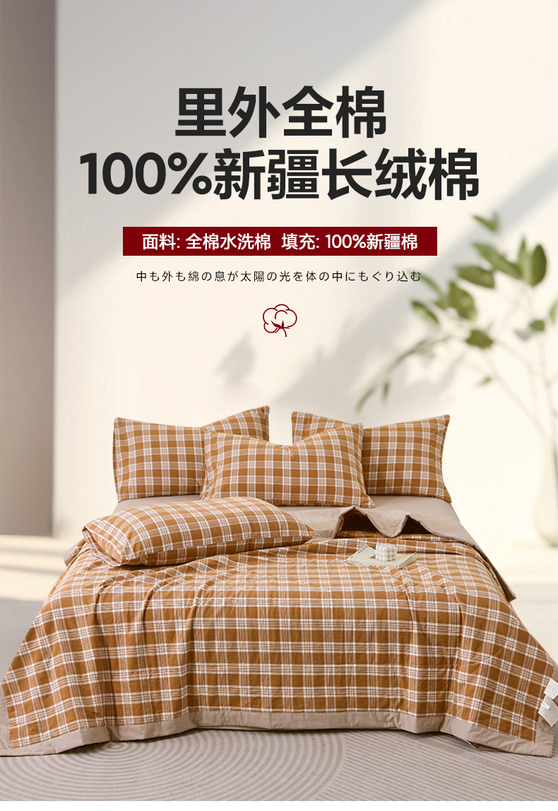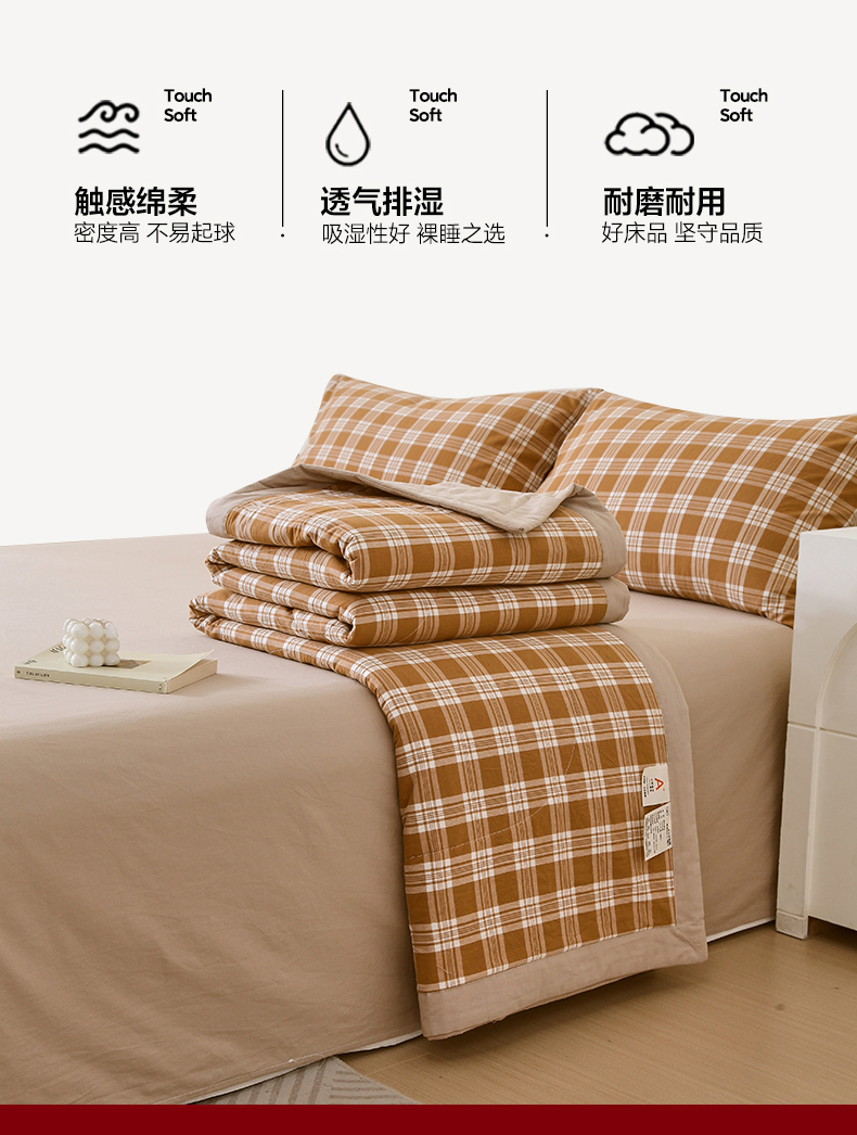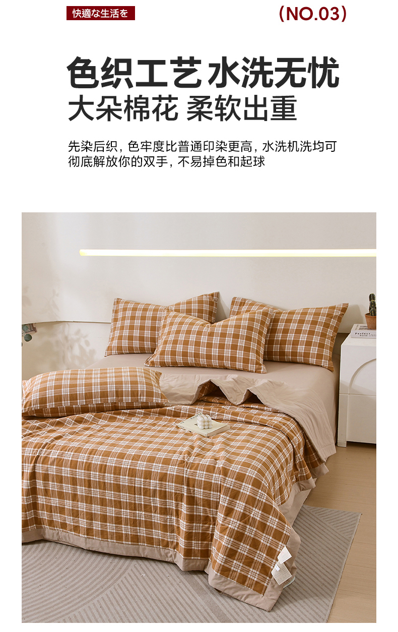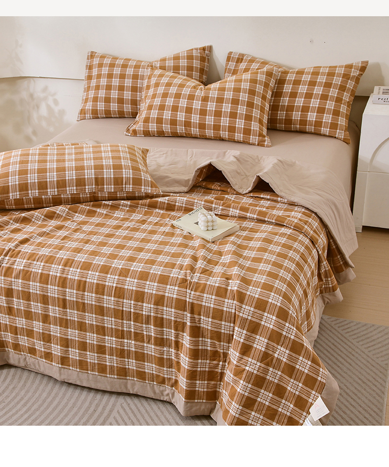 • 91家纺网 家纺一手货源 找家纺 春皖家纺 2026新款全棉色织宽边棉花夏被-云恋 云恋-黄调格