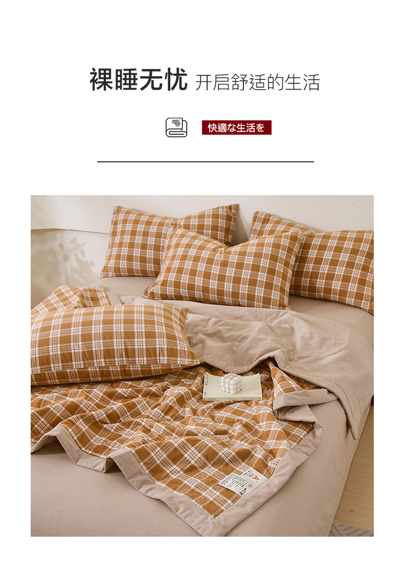 春皖家纺 2026新款全棉色织宽边棉花夏被-云恋 云恋-黄调格