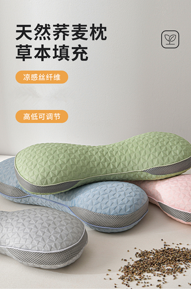 商品名称:小桃姐家纺 2025新款凉感冰丝苦荞骨形护颈枕 枕头枕芯 凉感冰丝苦荞骨形护颈枕-蓝色